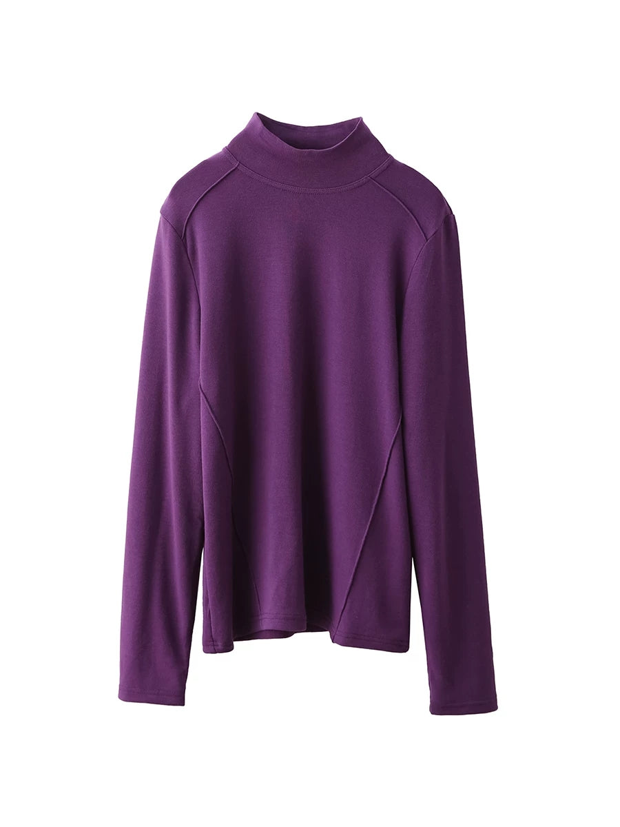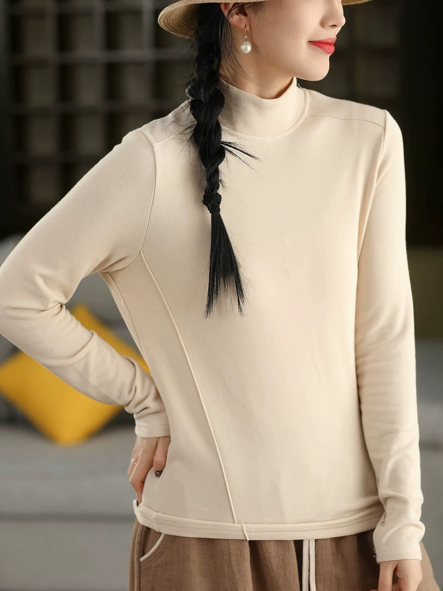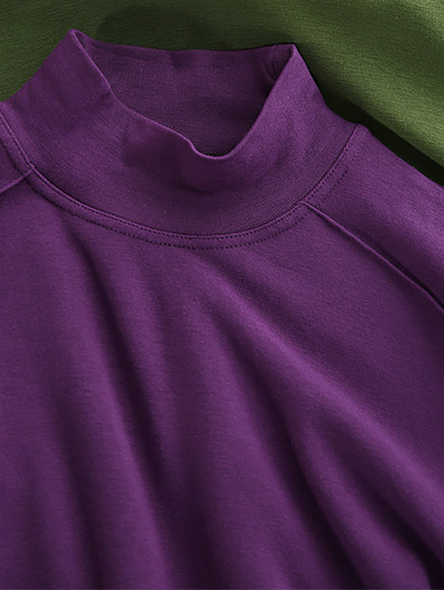 Blusa de cuello alto medio de color puro para mujer de primavera