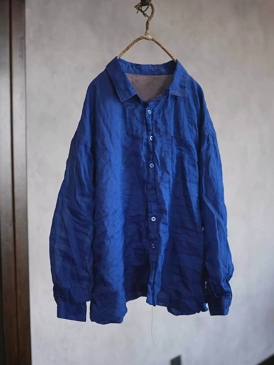 Camisa de ramio con cuello vuelto de color puro para mujer de primavera