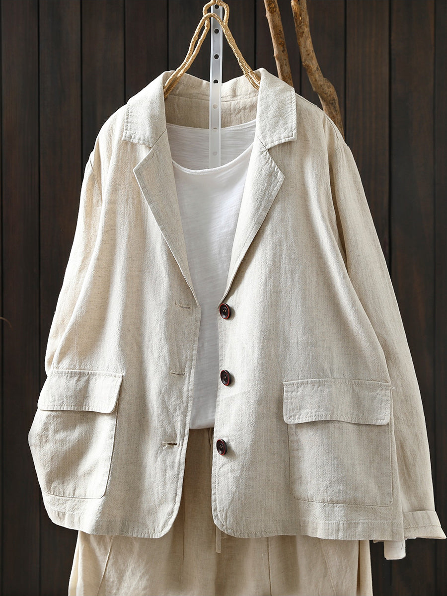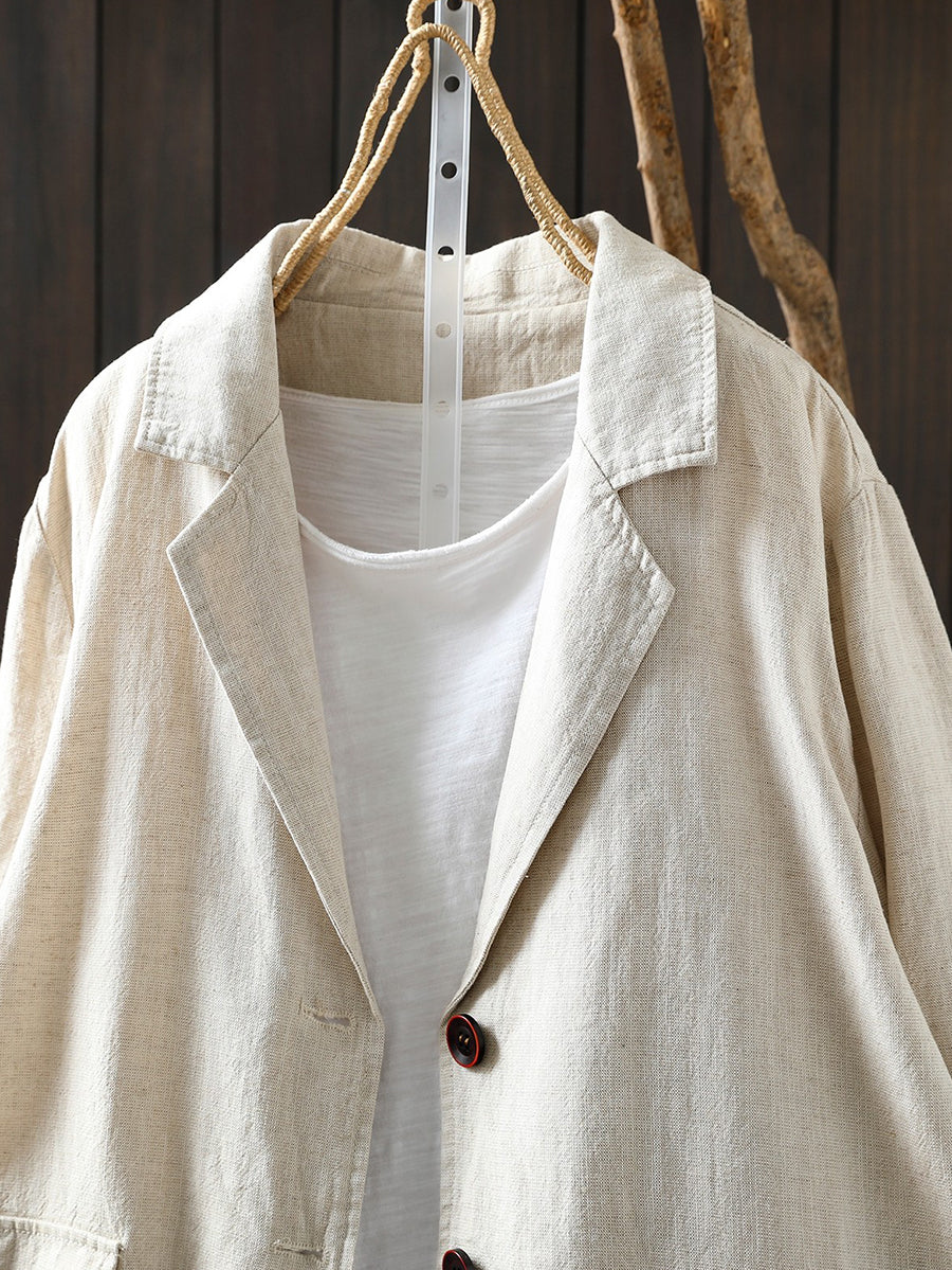 Abrigo retro de primavera para mujer, 100 % lino, con cuello vuelto