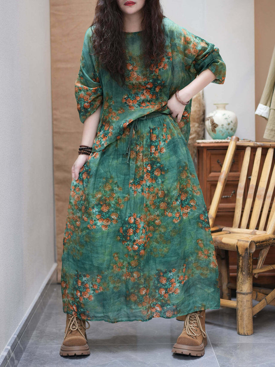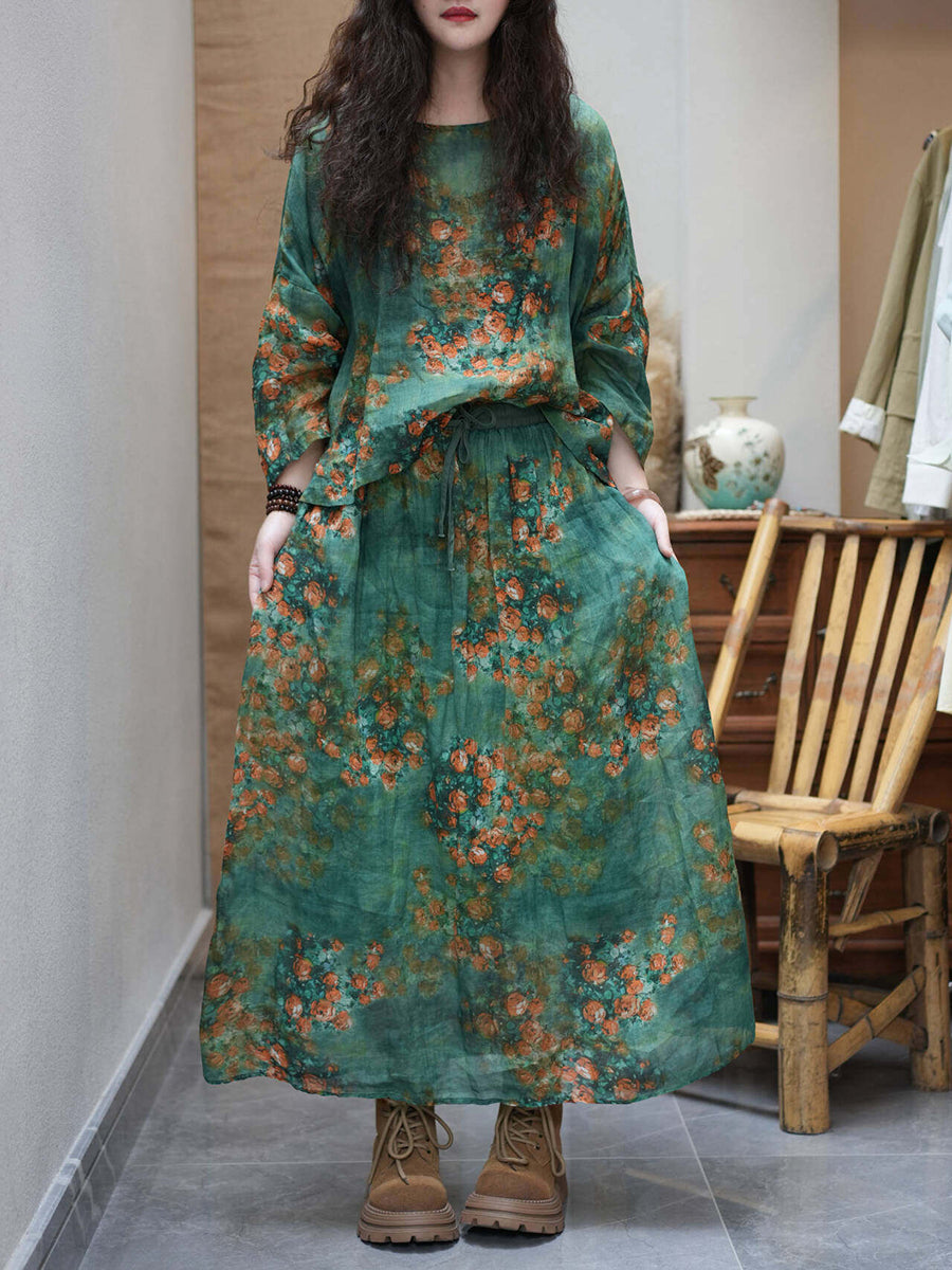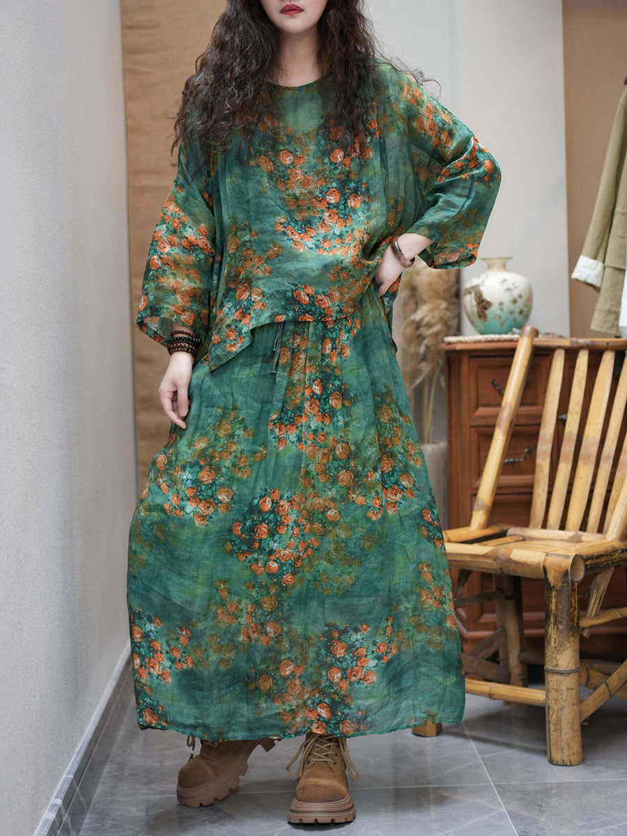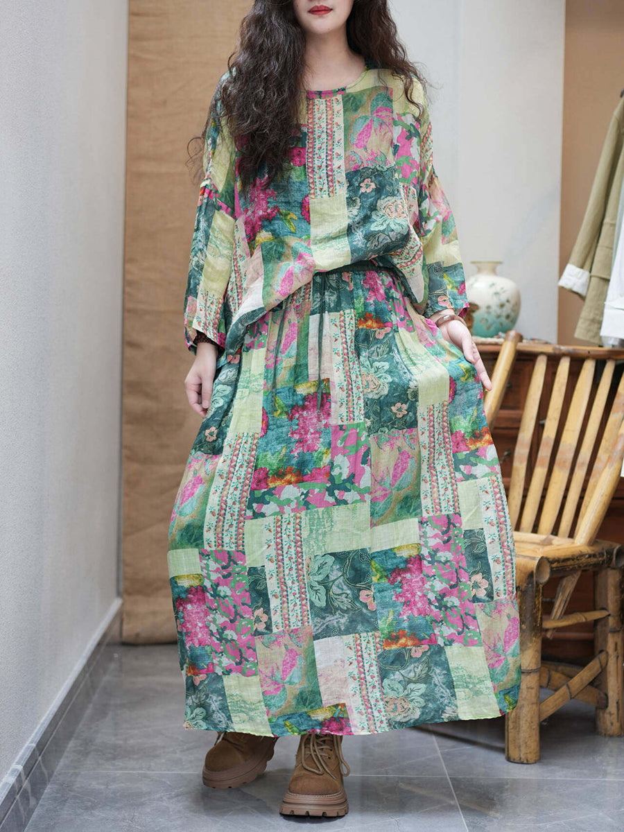 Trajes de mujer de primavera estilo retro con estampado floral y patchwork.
