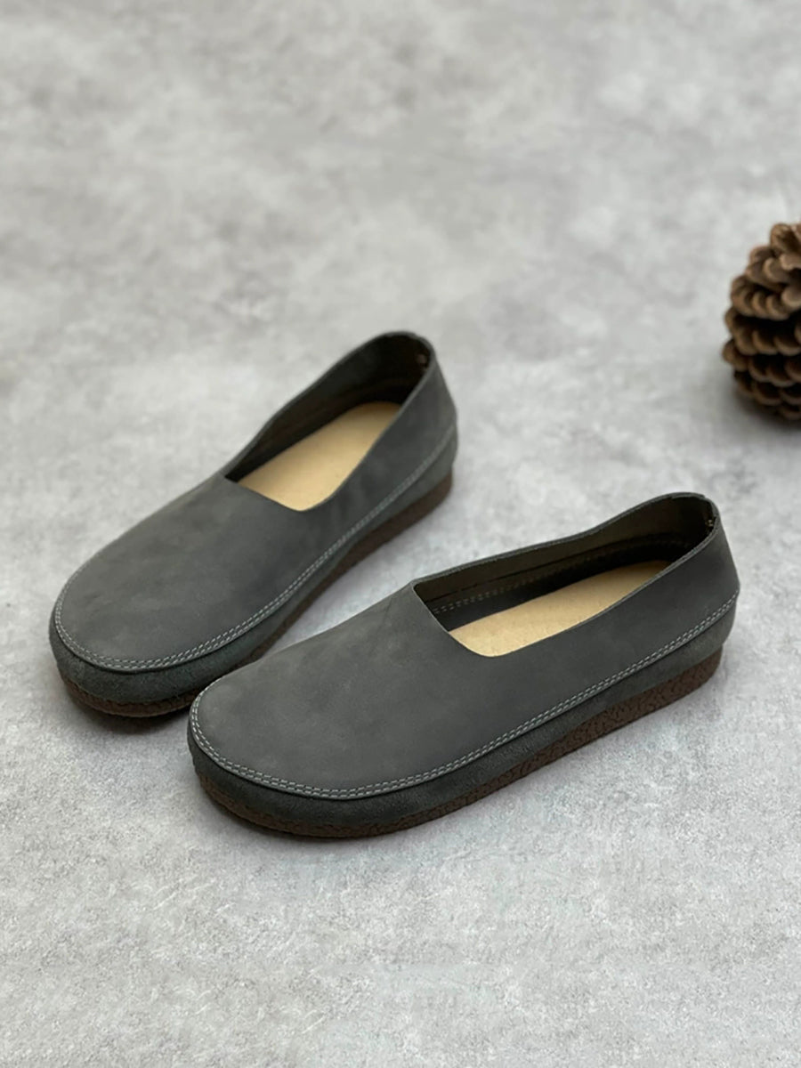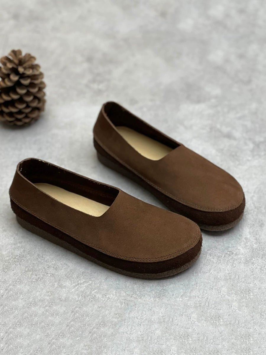 Zapatos de tacón bajo de piel auténtica estilo retro de primavera para mujer