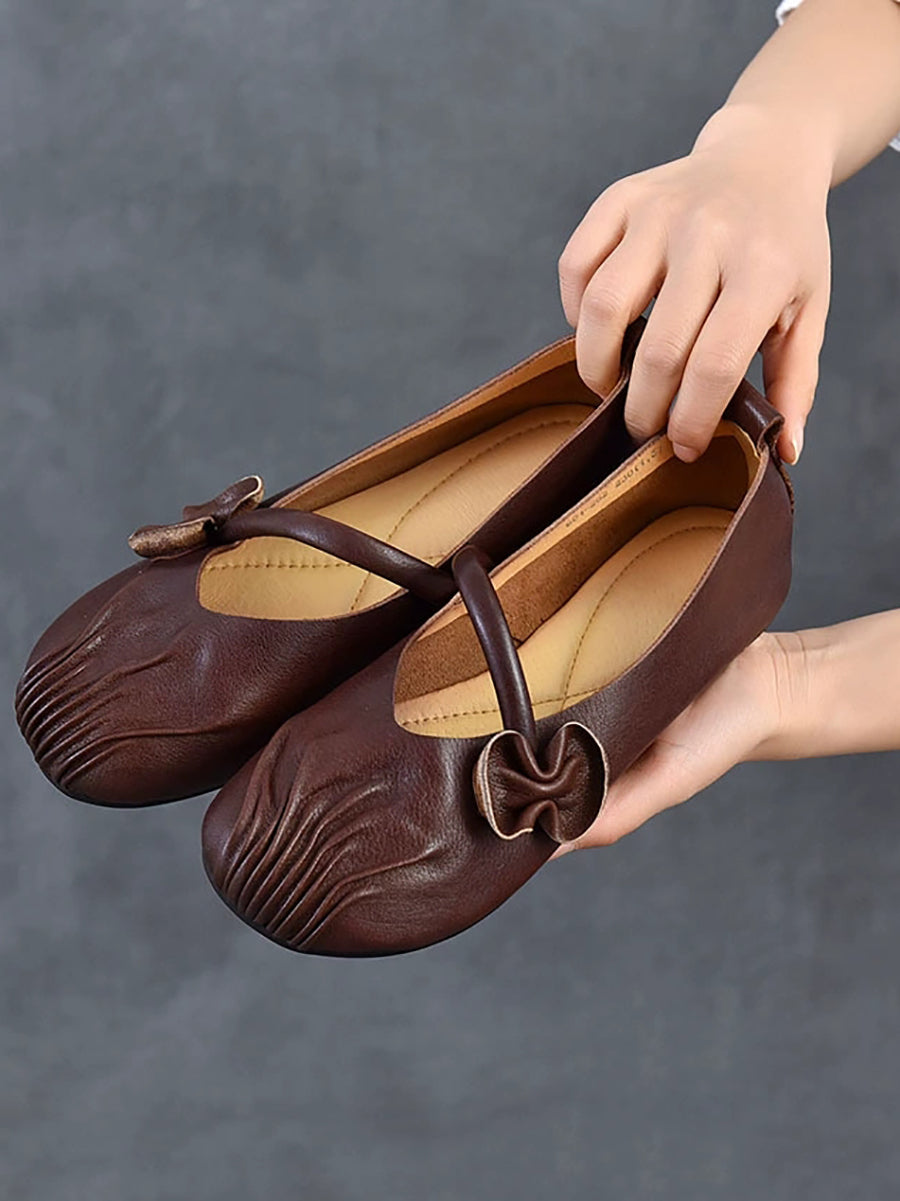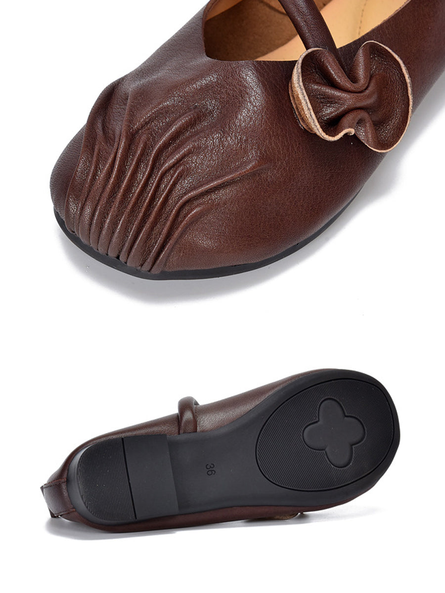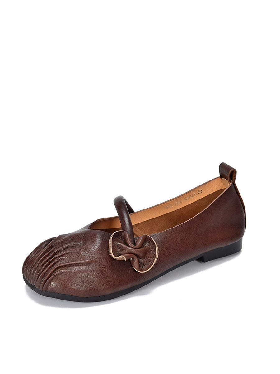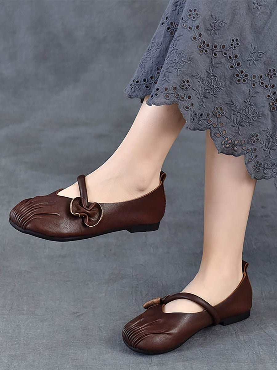 Zapatos de tacón bajo de piel auténtica estilo retro de primavera para mujer