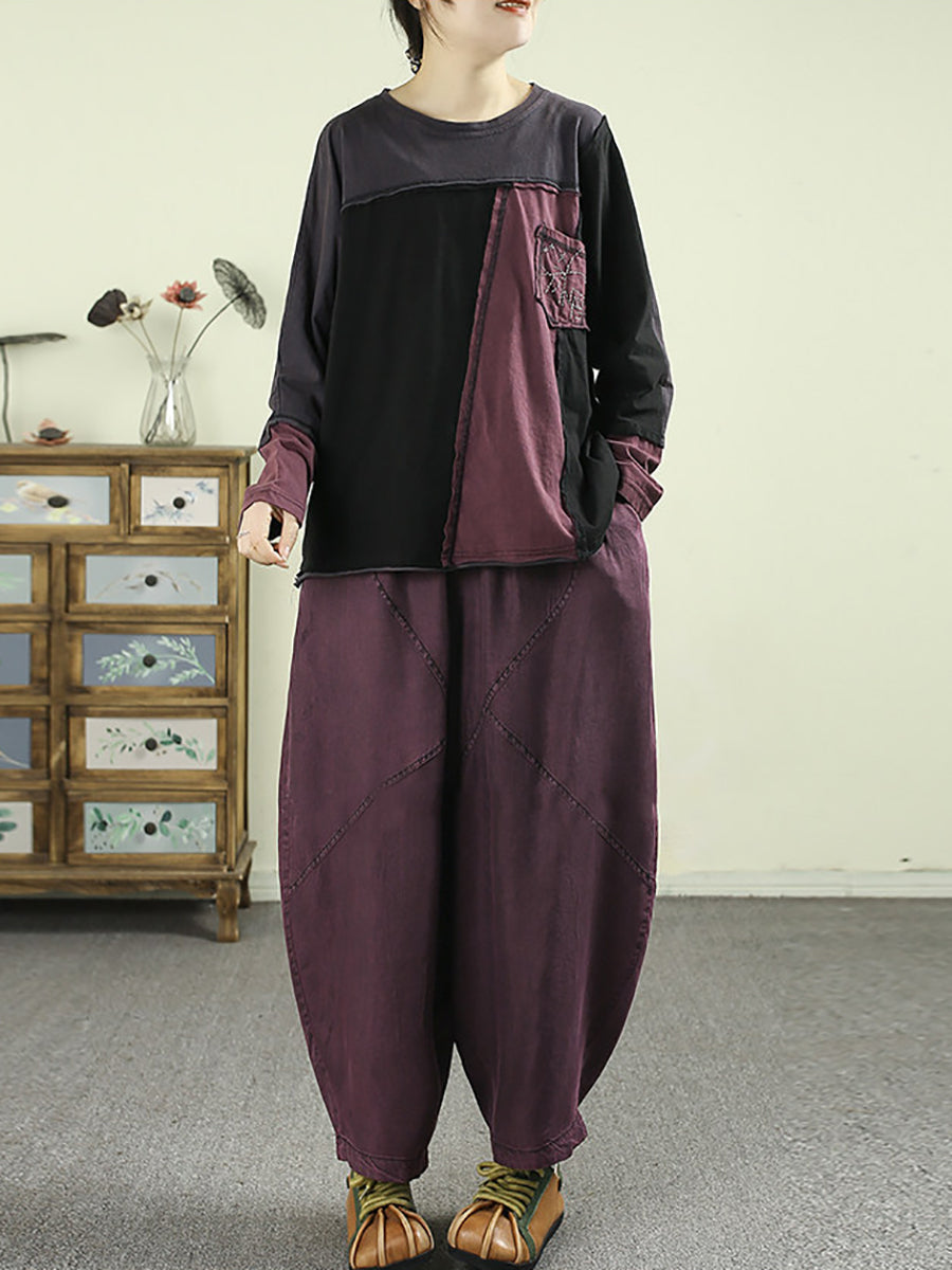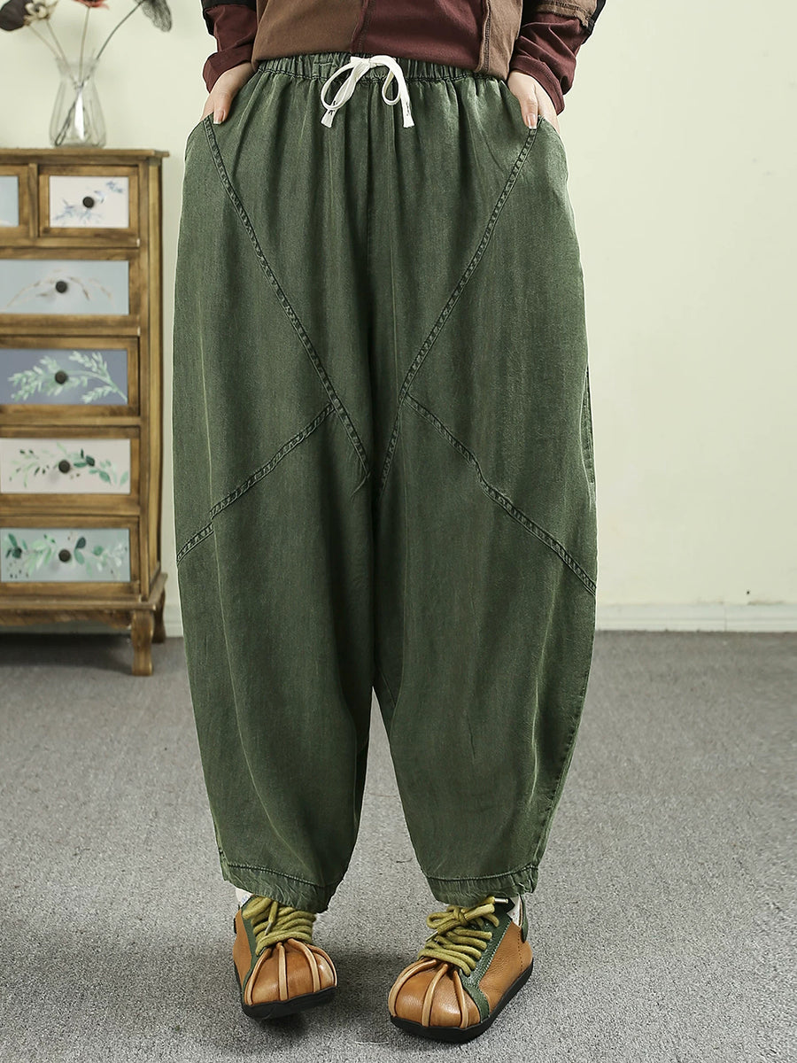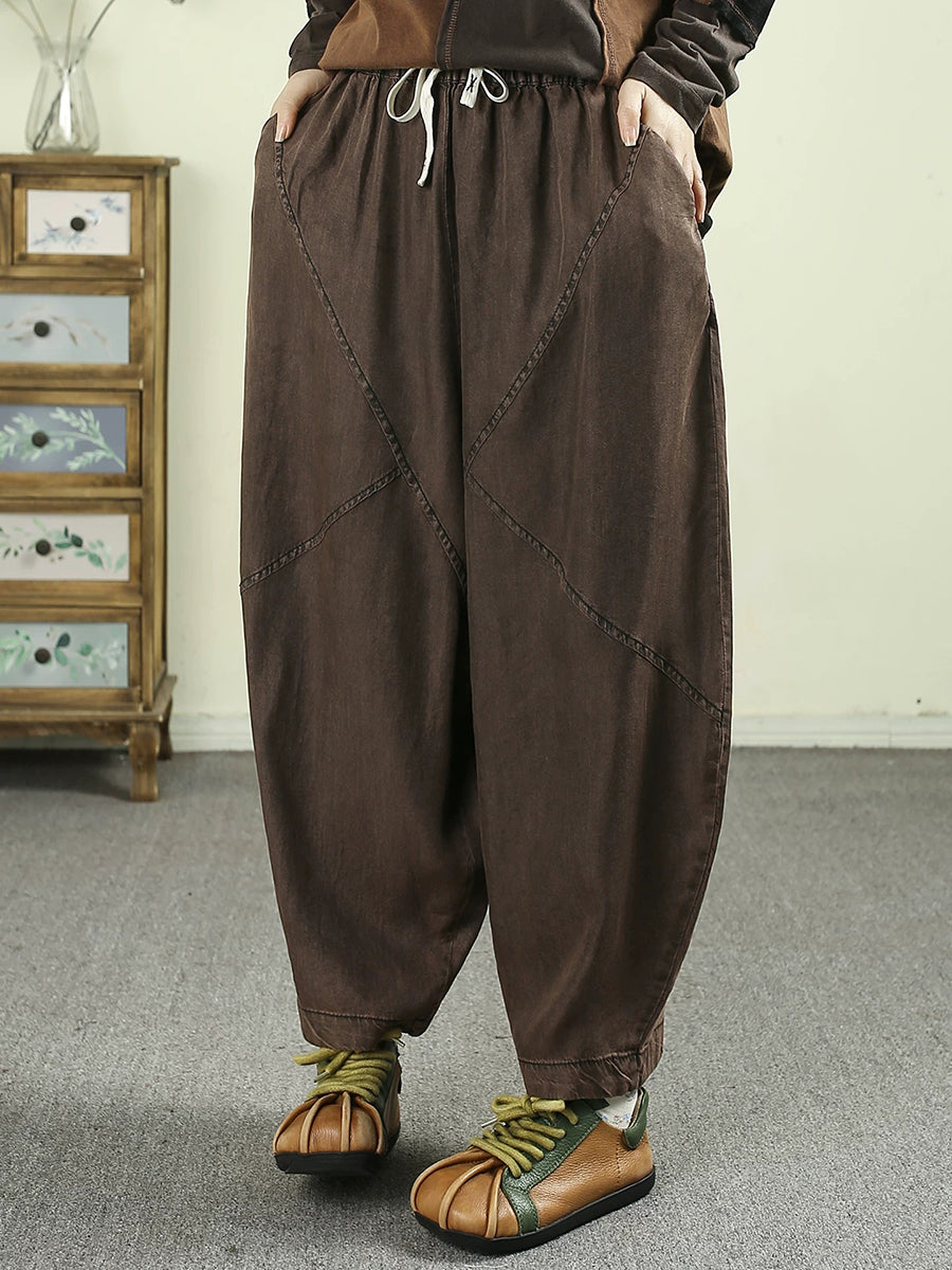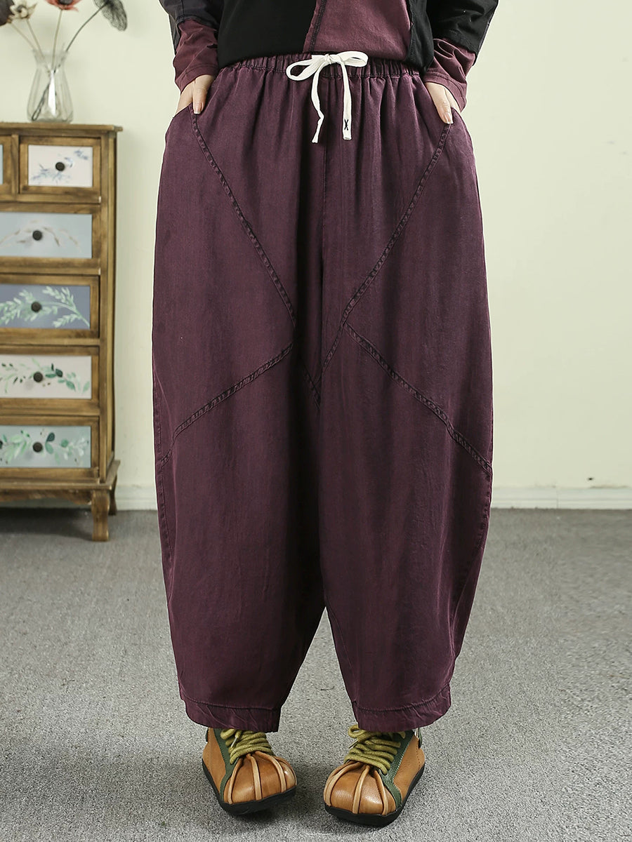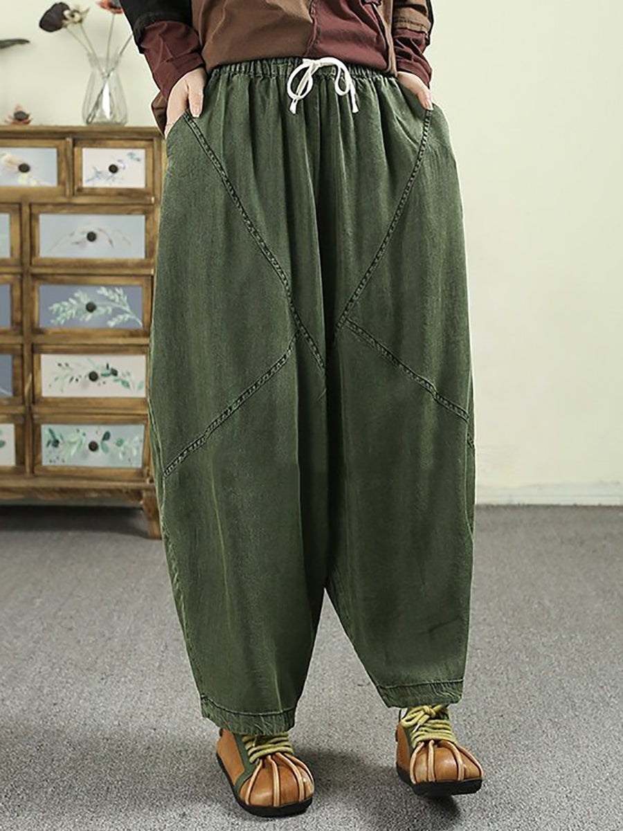 Pantalones harén 100 % algodón de color puro, estilo retro de primavera para mujer