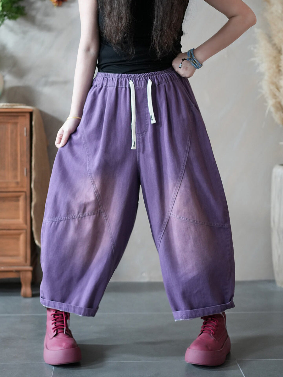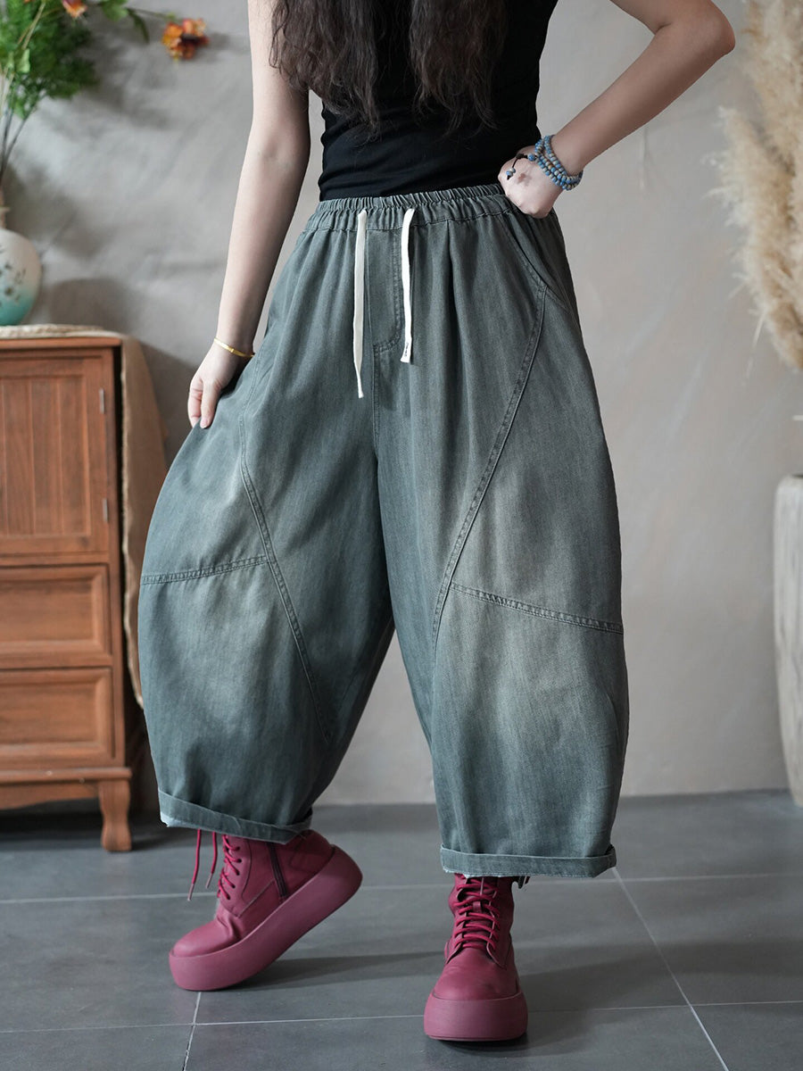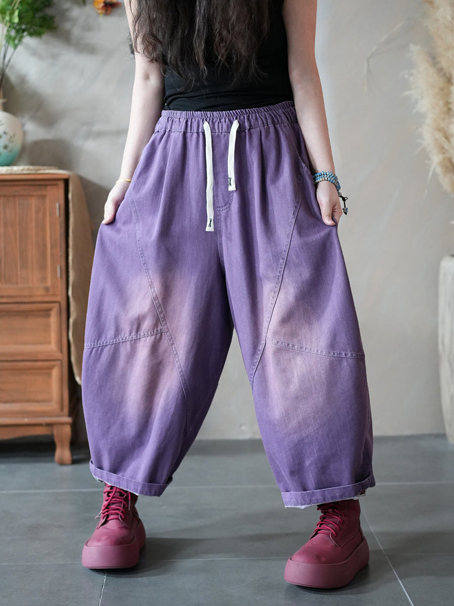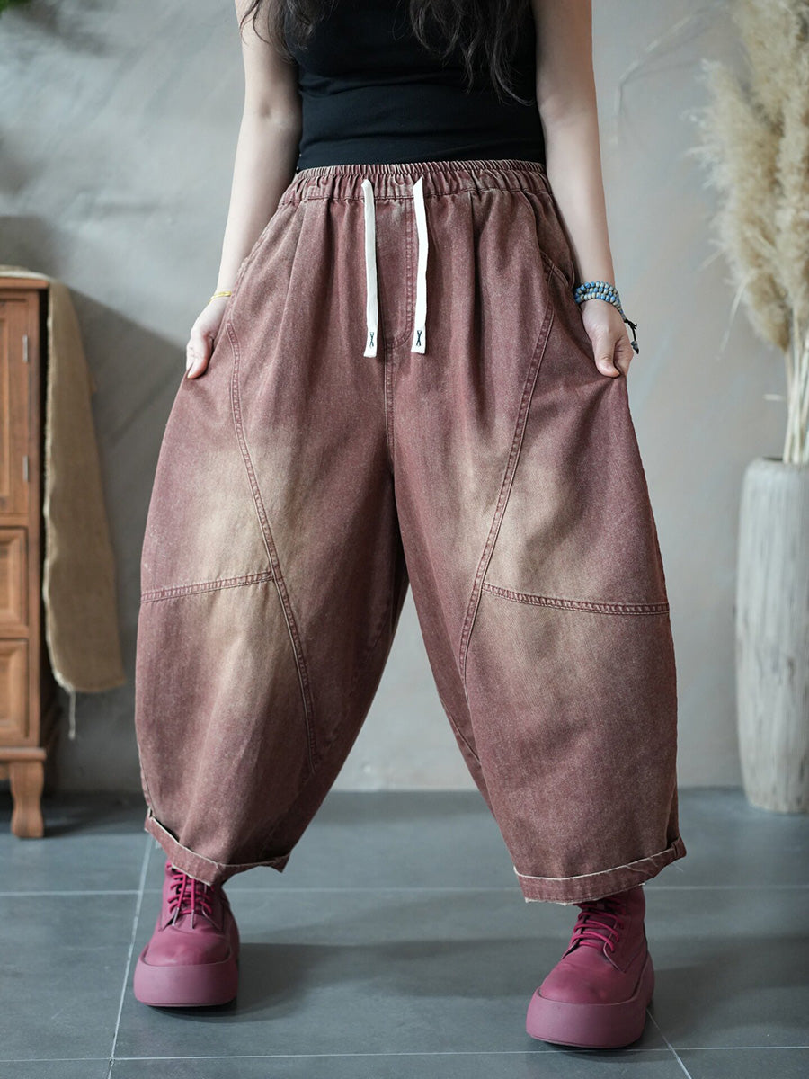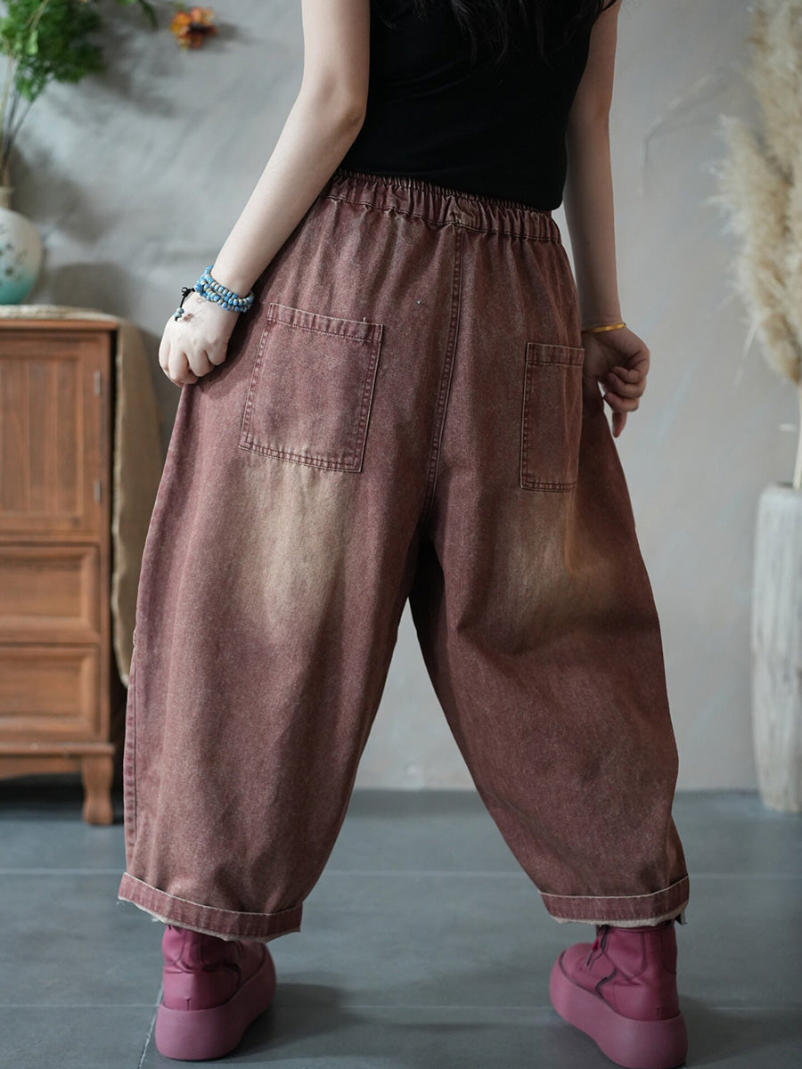 Pantalones harén de mezclilla de color puro retro de primavera para mujer