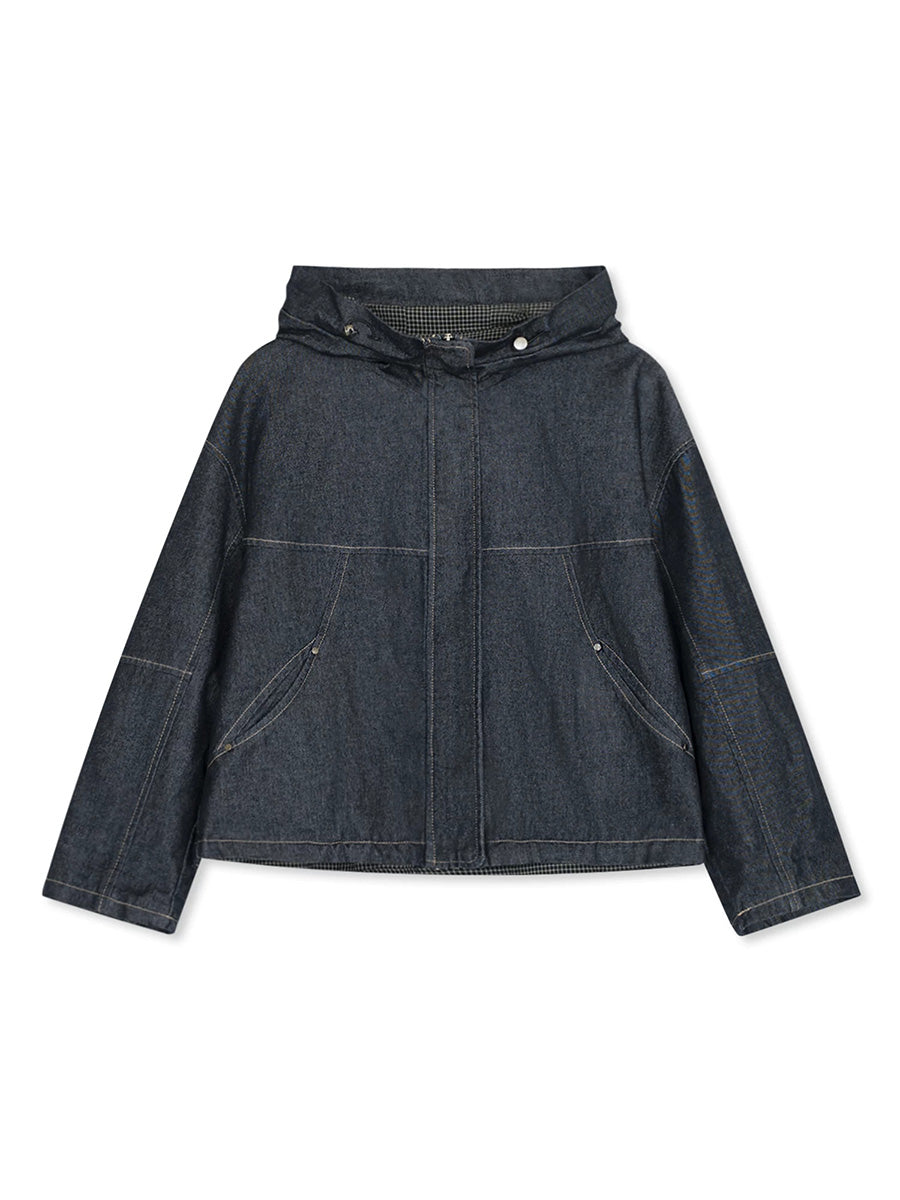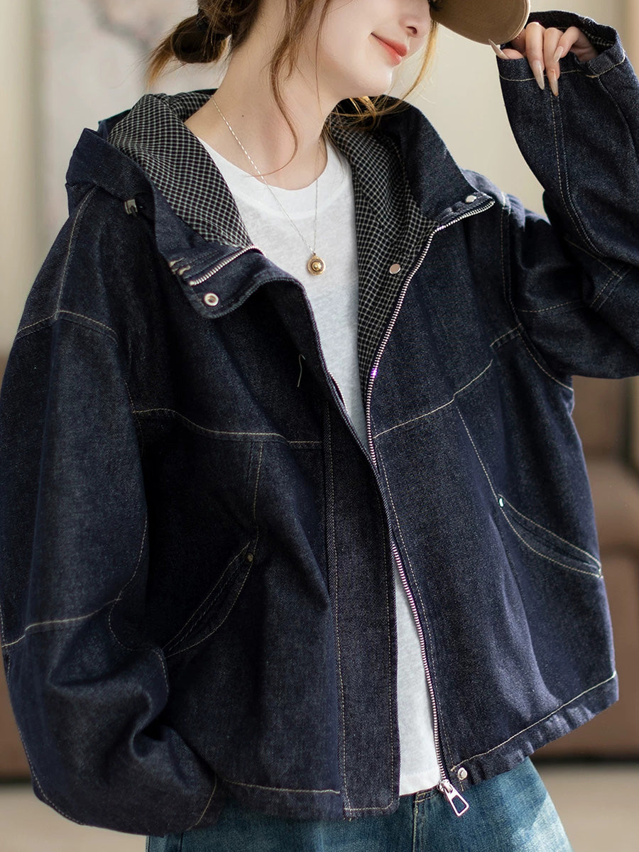 Abrigo con capucha de mezclilla de color puro retro de primavera para mujer