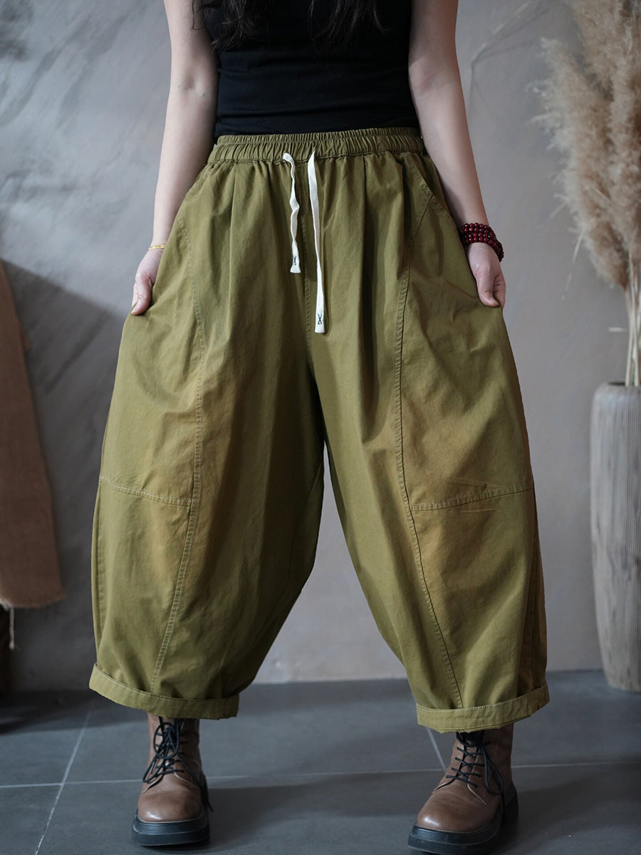 Pantalones harén retro de primavera para mujer, de color puro