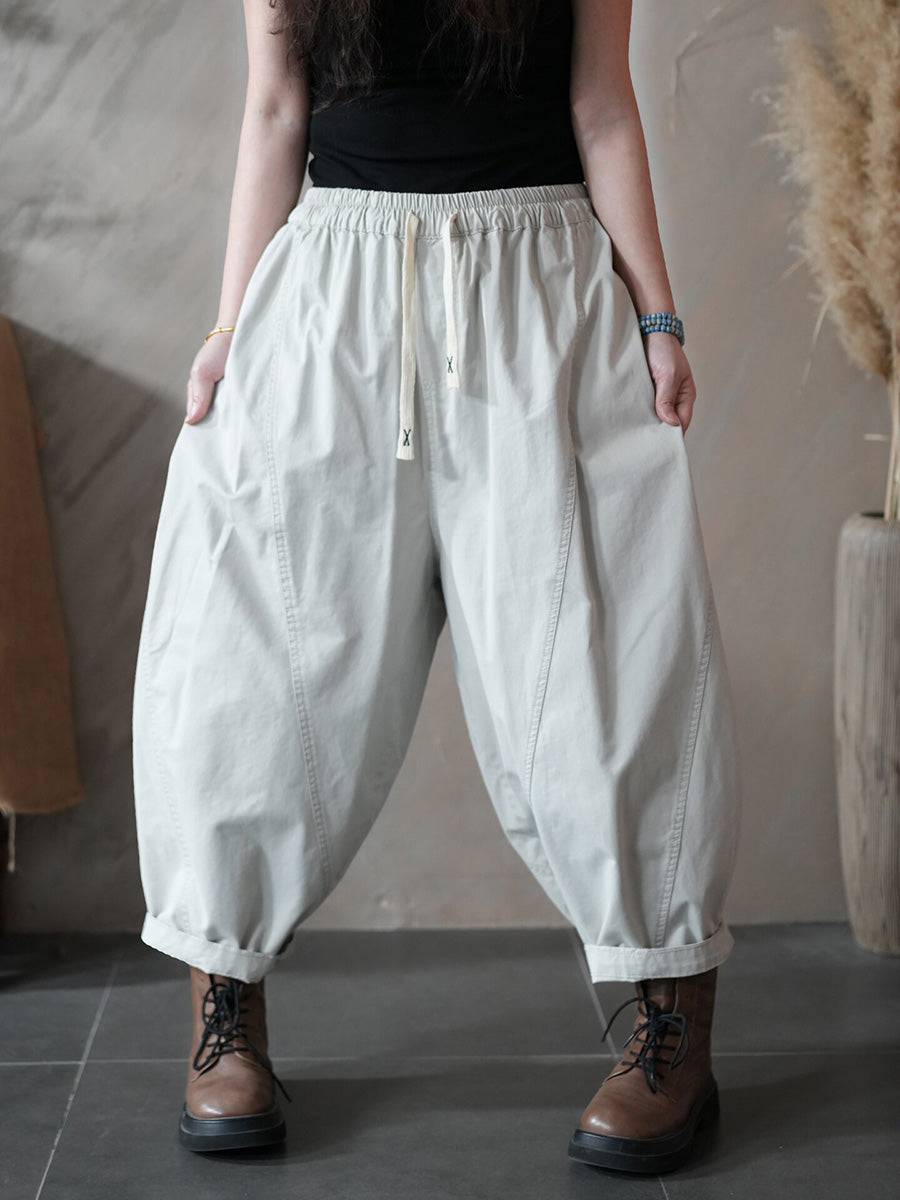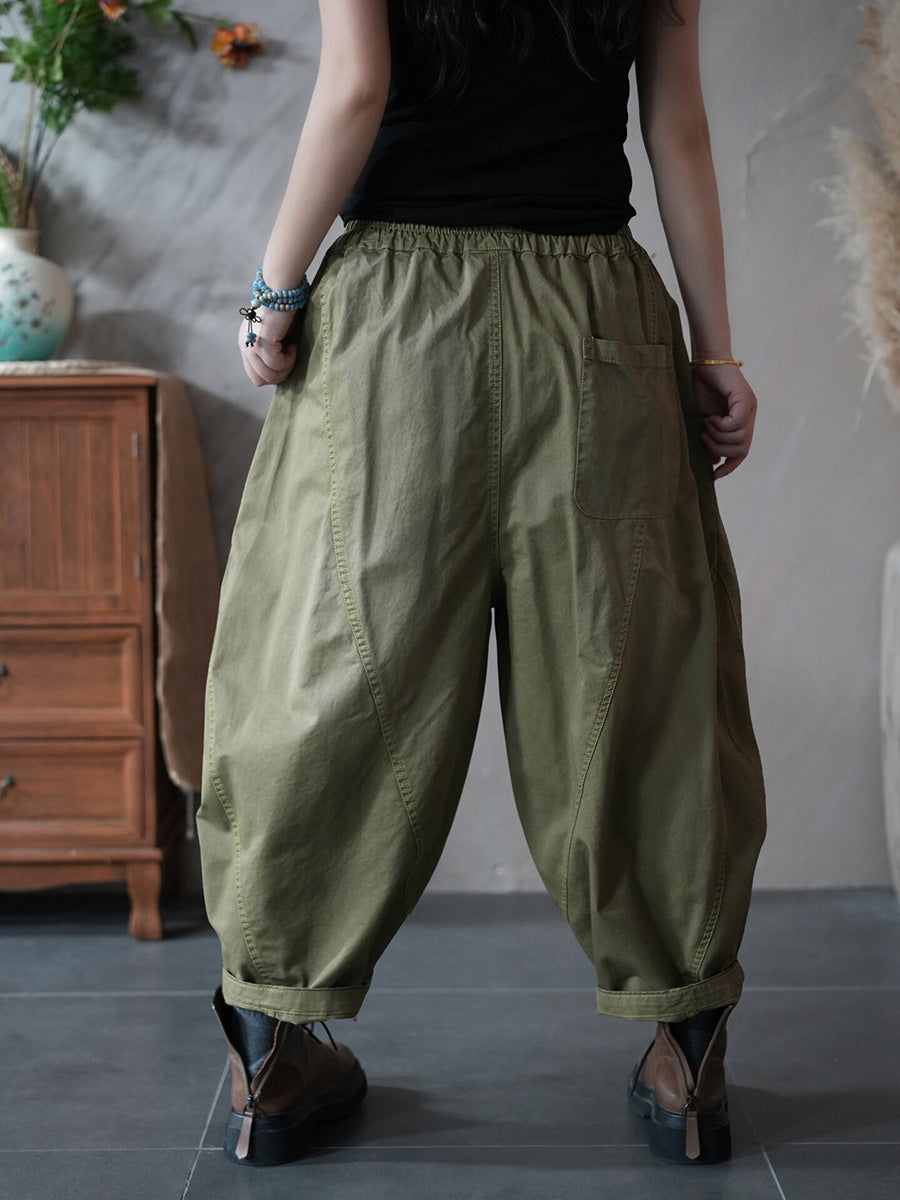 Pantalones harén retro de primavera para mujer, de color puro