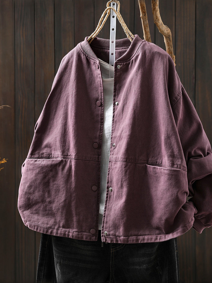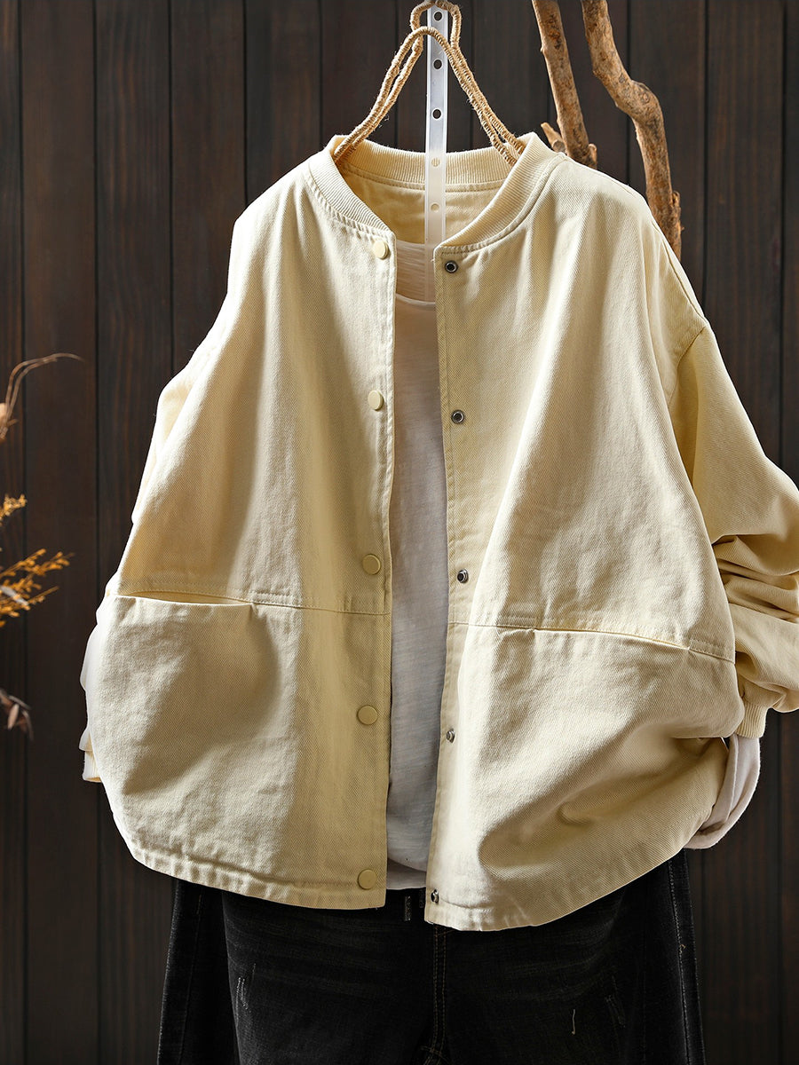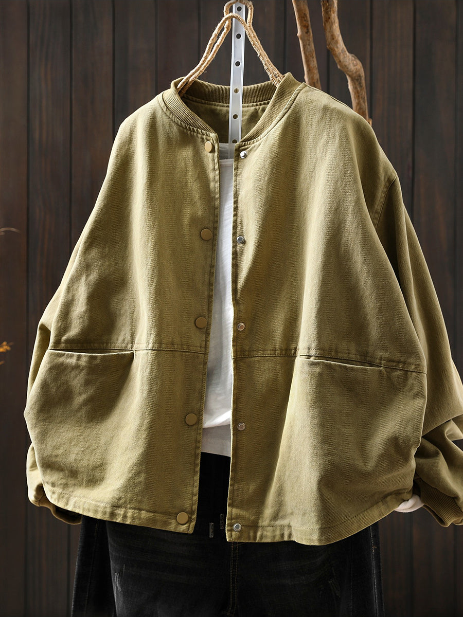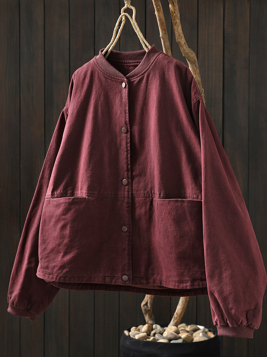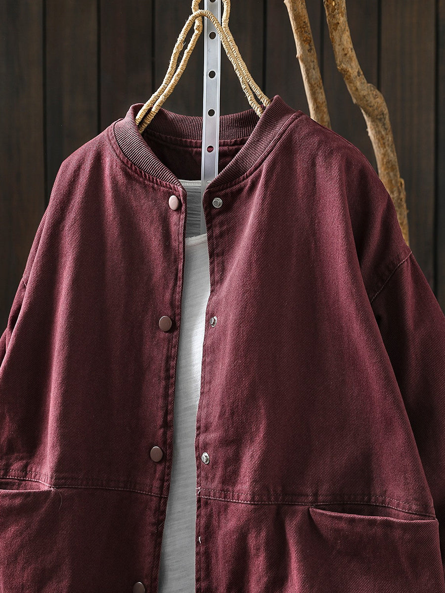 Chaqueta retro de primavera con cuello alto y color puro para mujer
