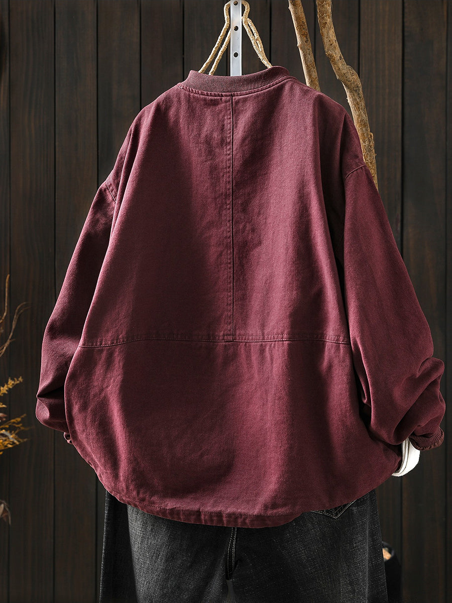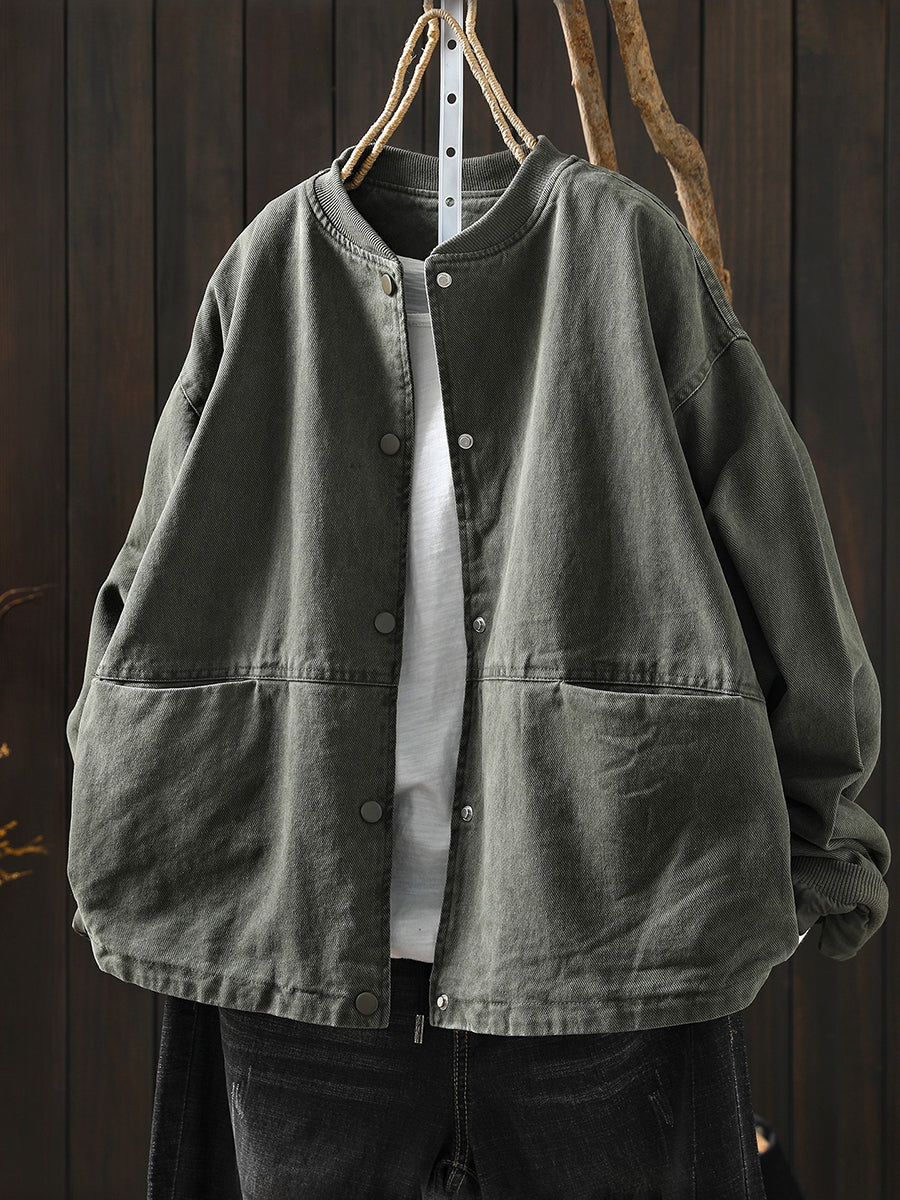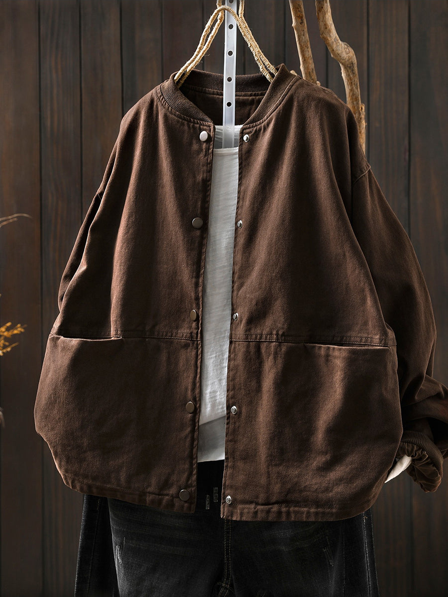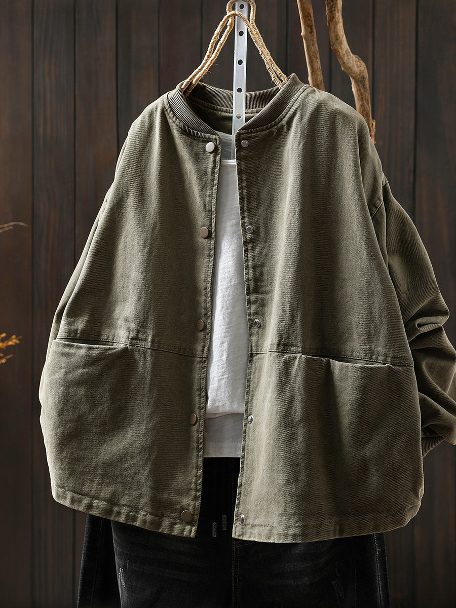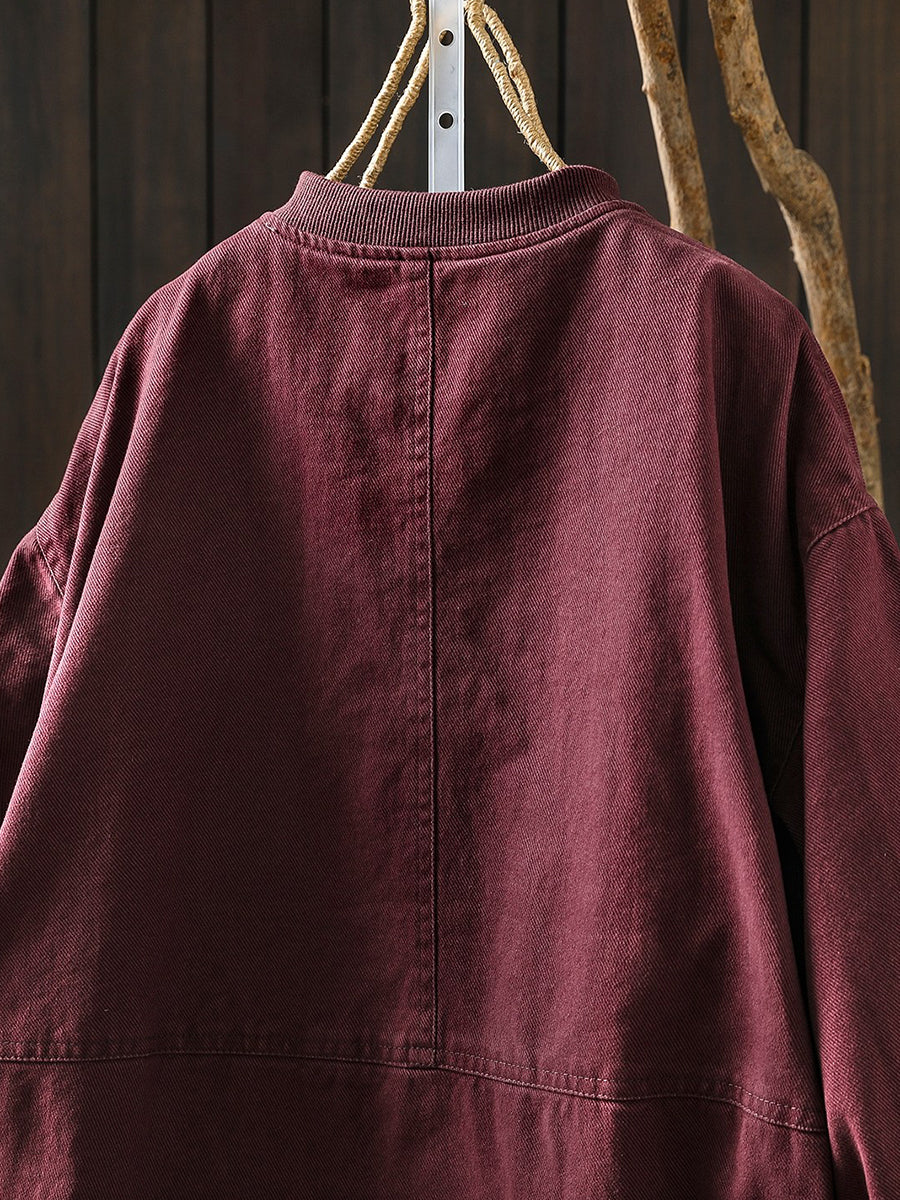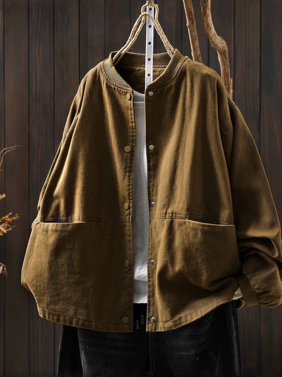 Chaqueta retro de primavera con cuello alto y color puro para mujer