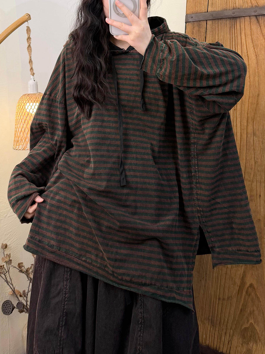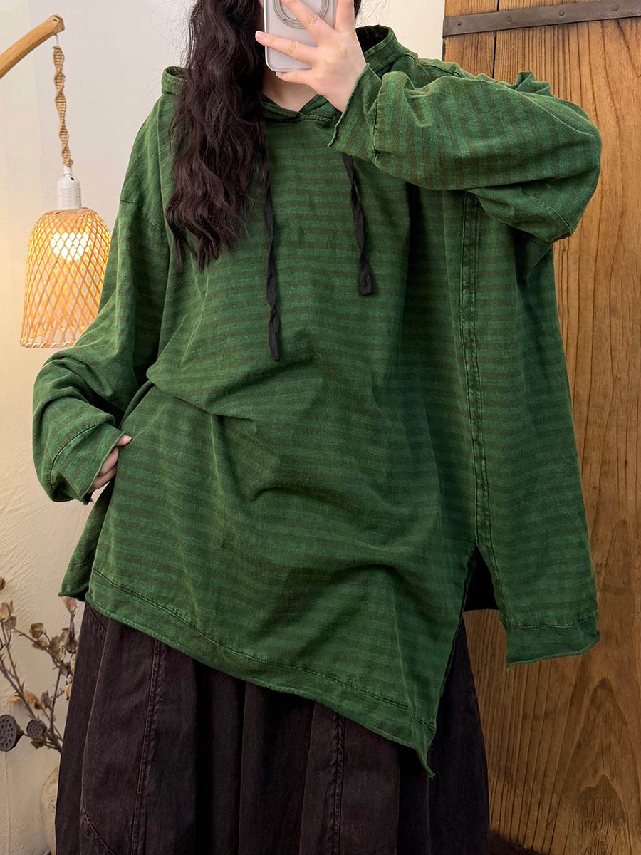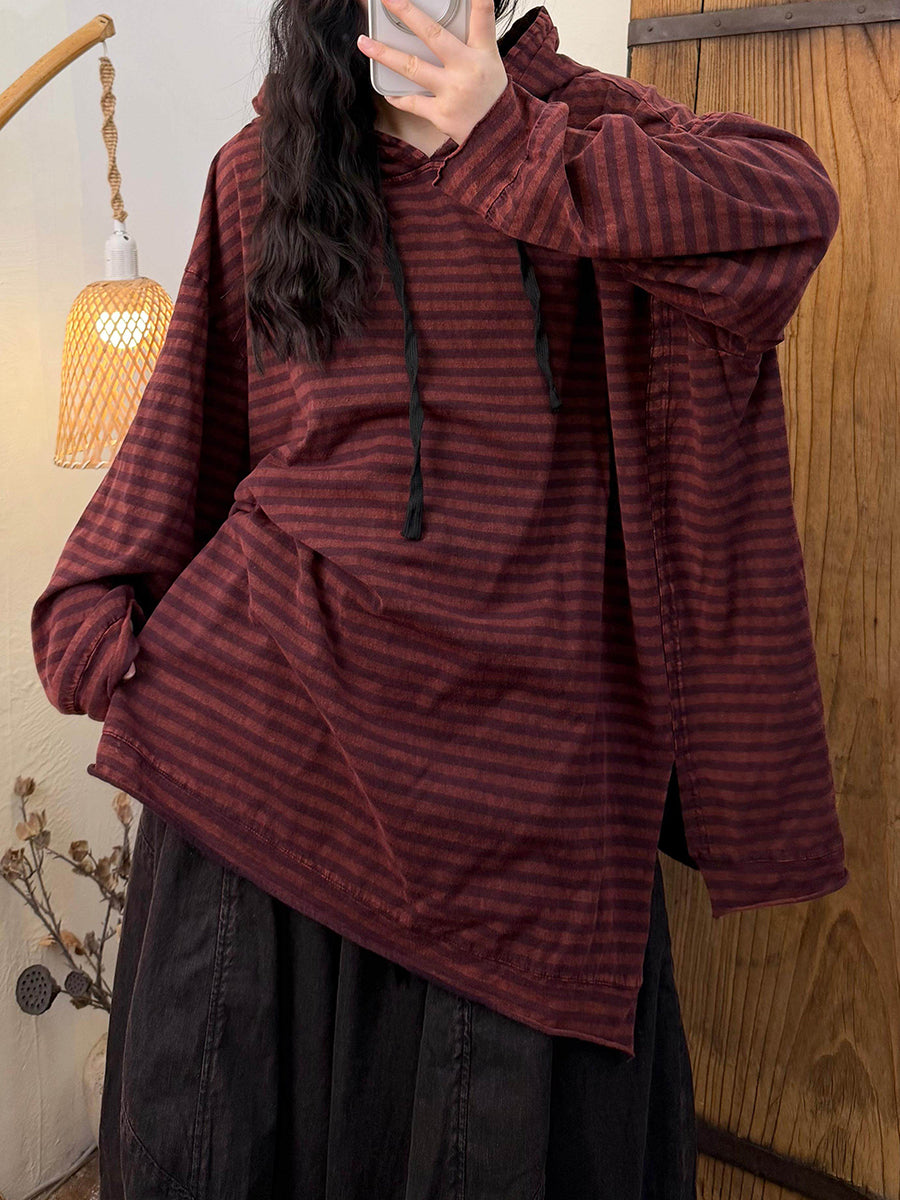 Sudadera con capucha de algodón a rayas retro de primavera para mujer
