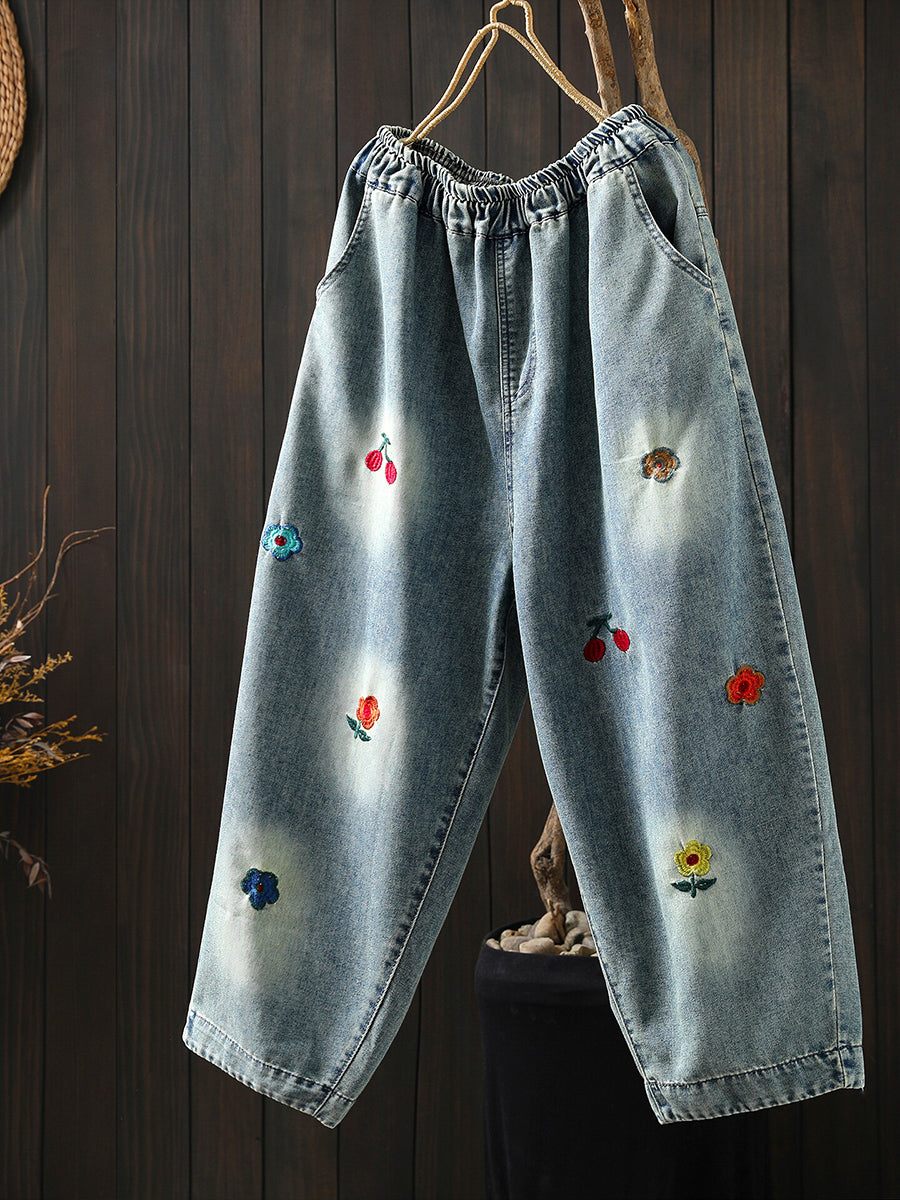 Pantalones harén con bordado de mezclilla vintage de primavera para mujer