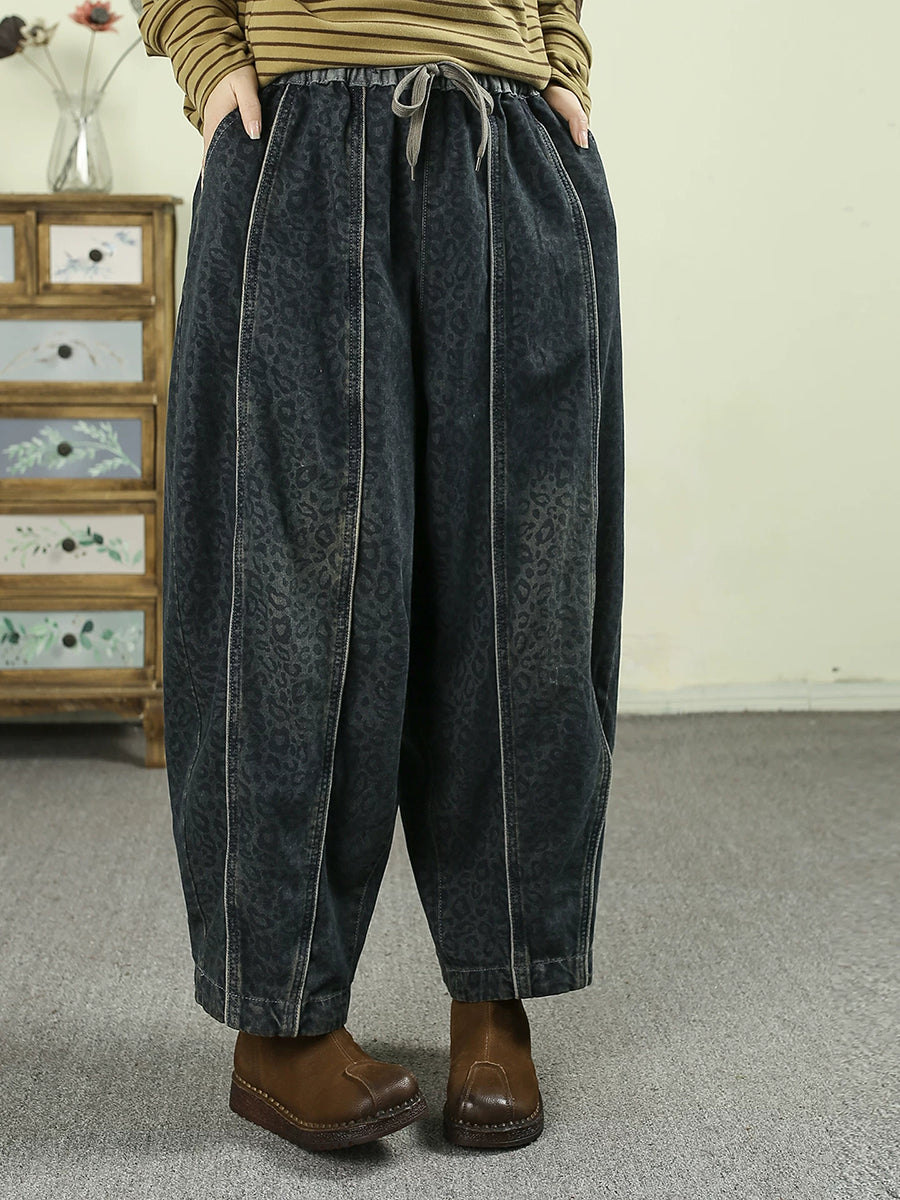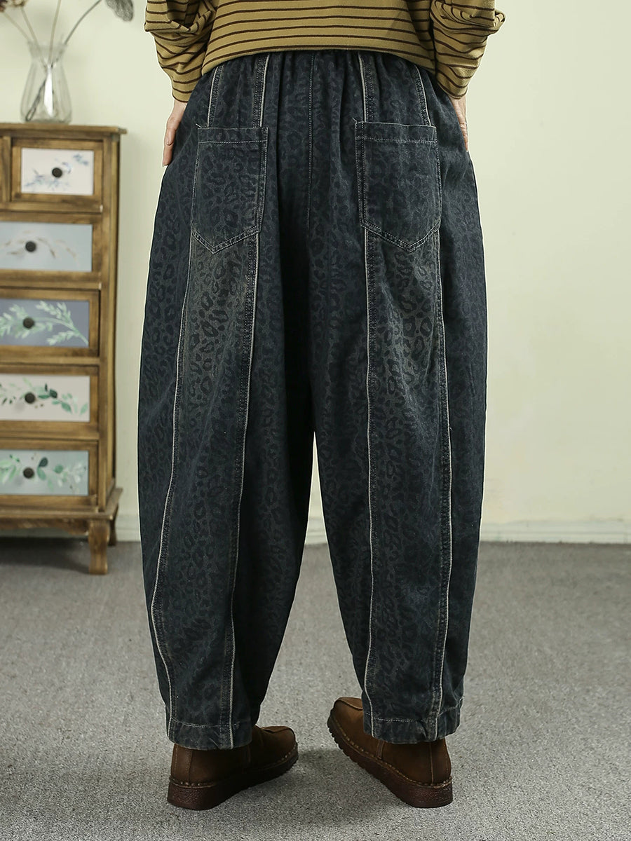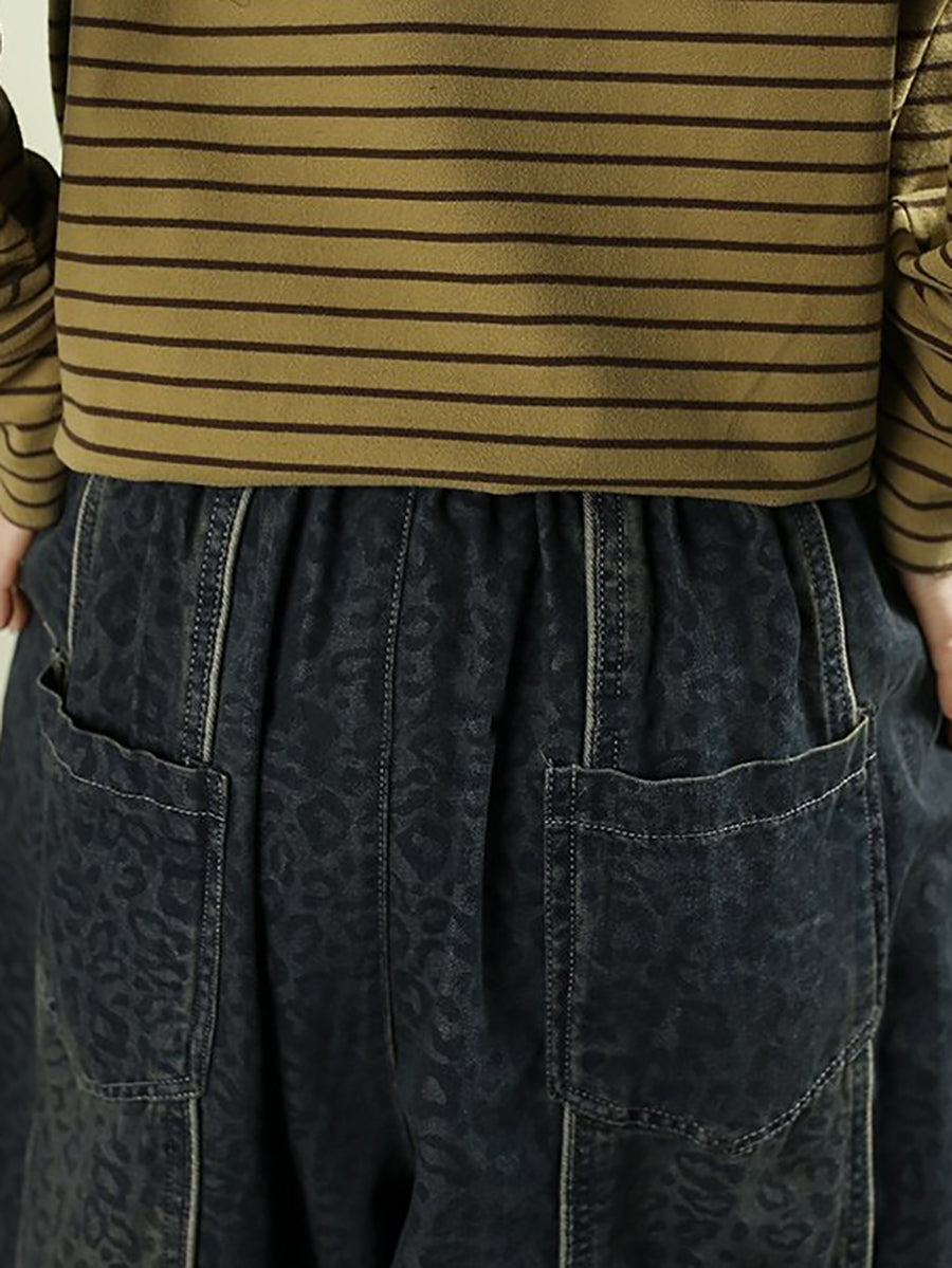 Pantalones harén de mezclilla vintage con estampado de leopardo para mujer