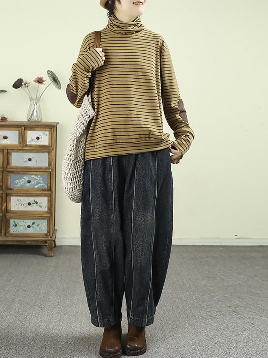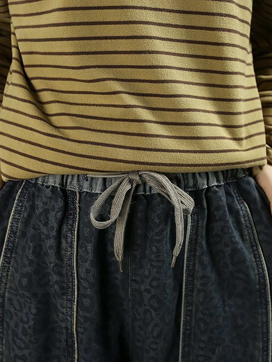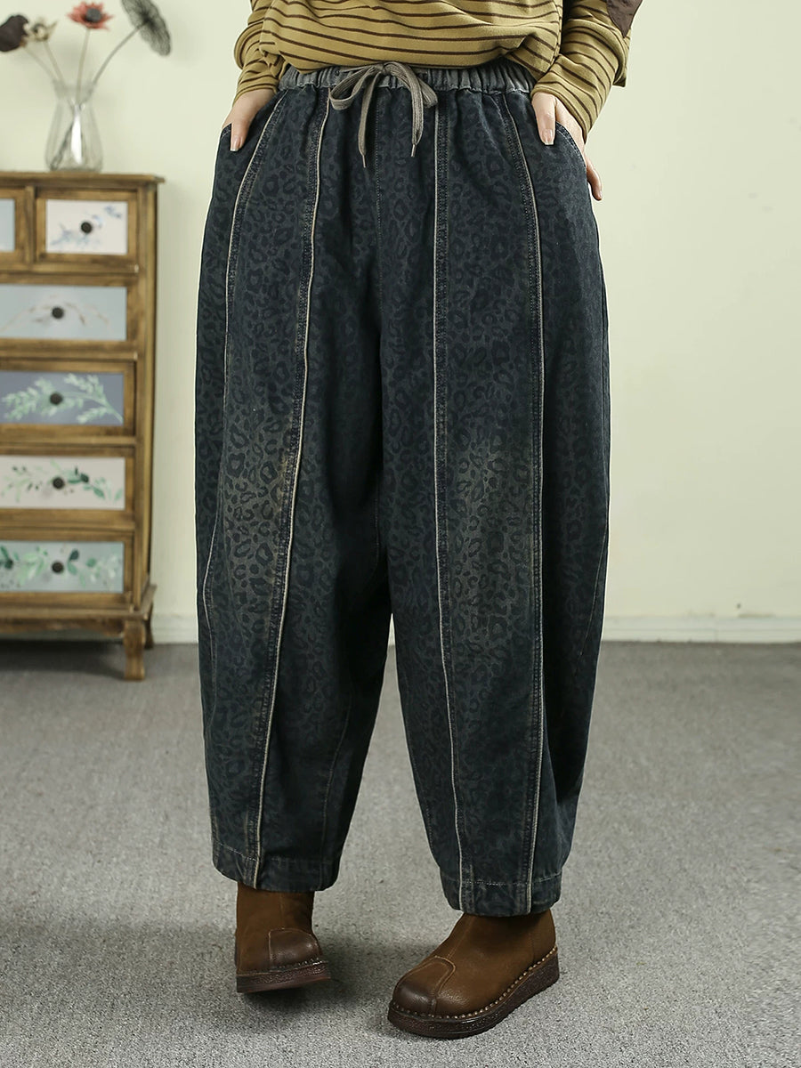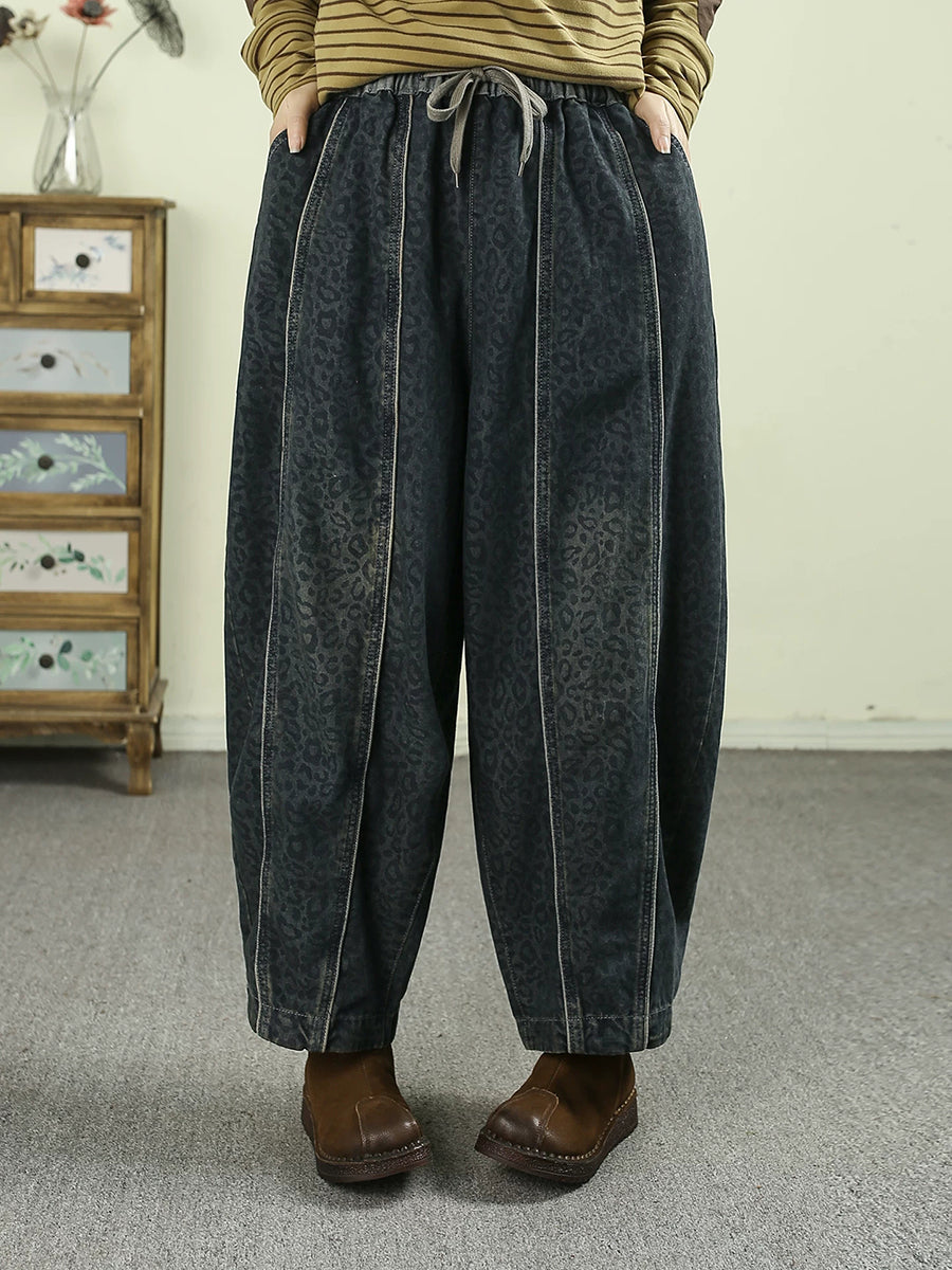Pantalones harén de mezclilla vintage con estampado de leopardo para mujer