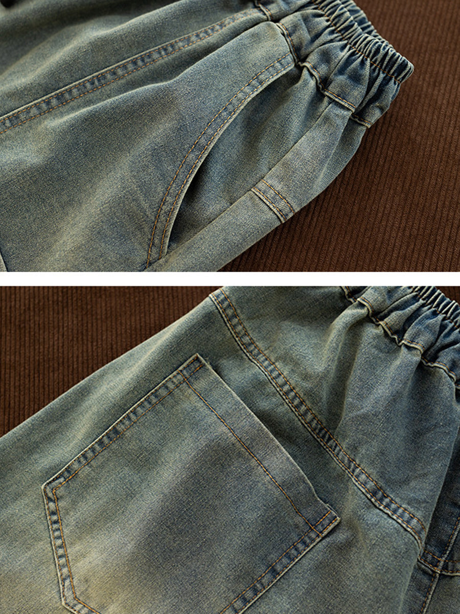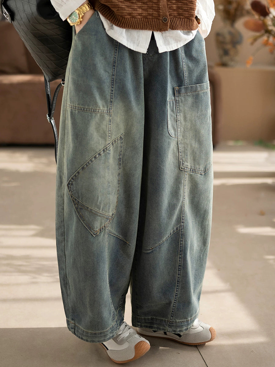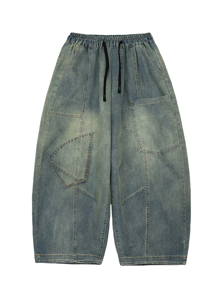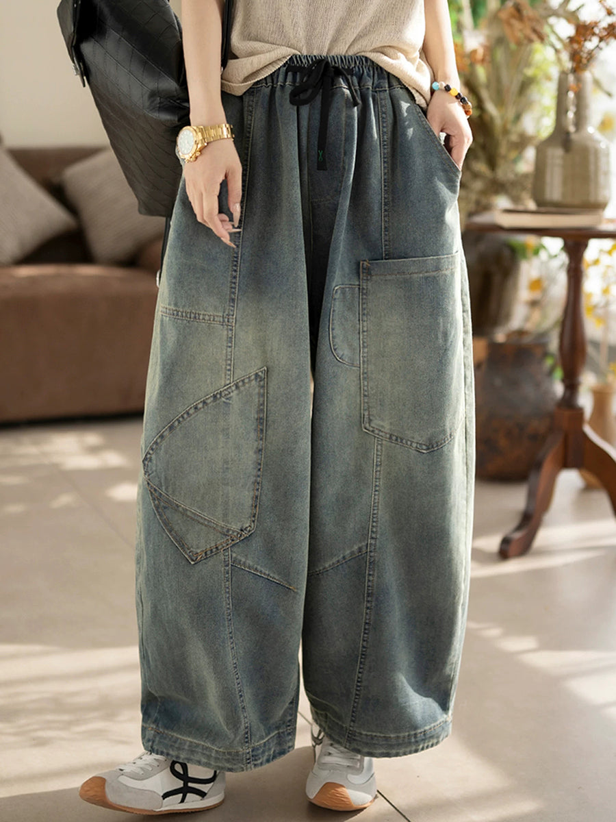 Pantalones harén de mezclilla vintage empalmados para mujer de primavera