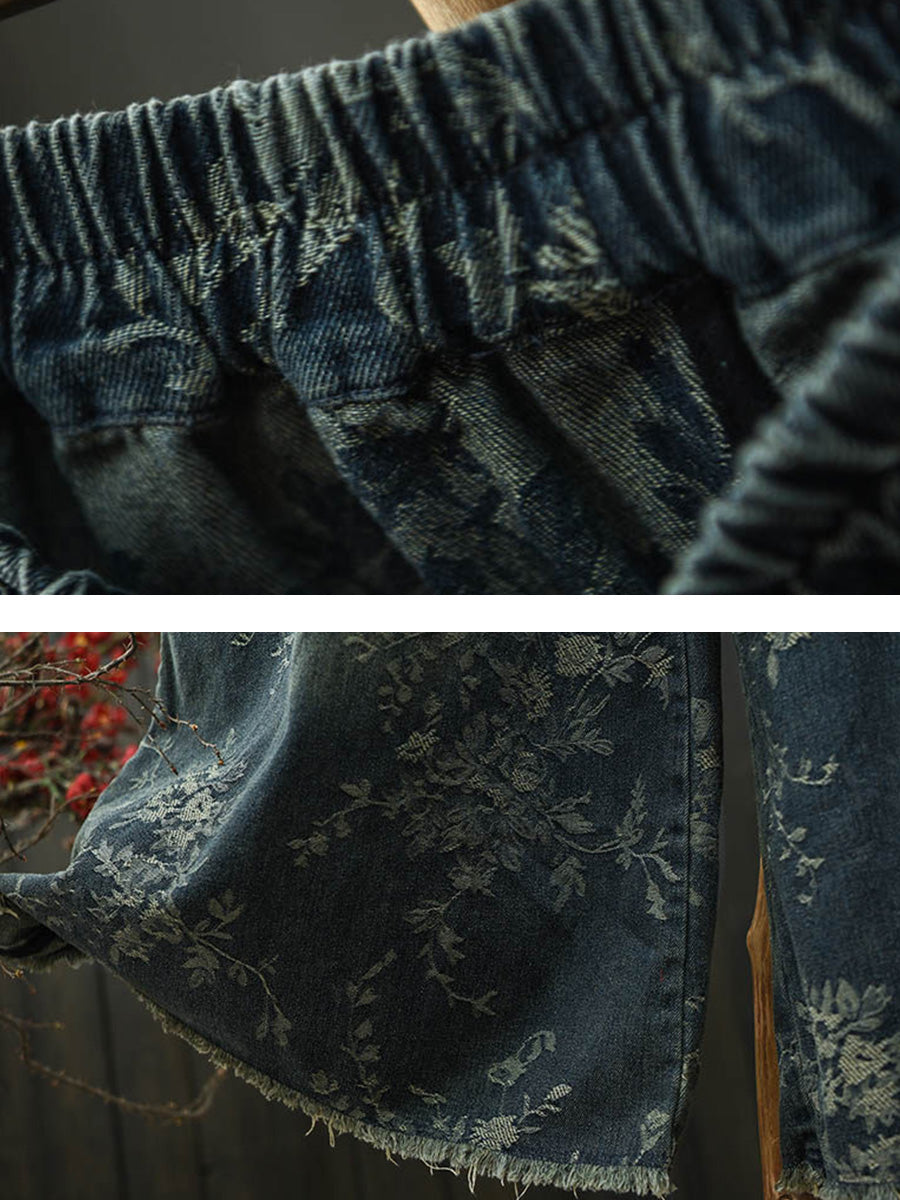 Pantalones anchos de mezclilla con estampado floral vintage de primavera para mujer