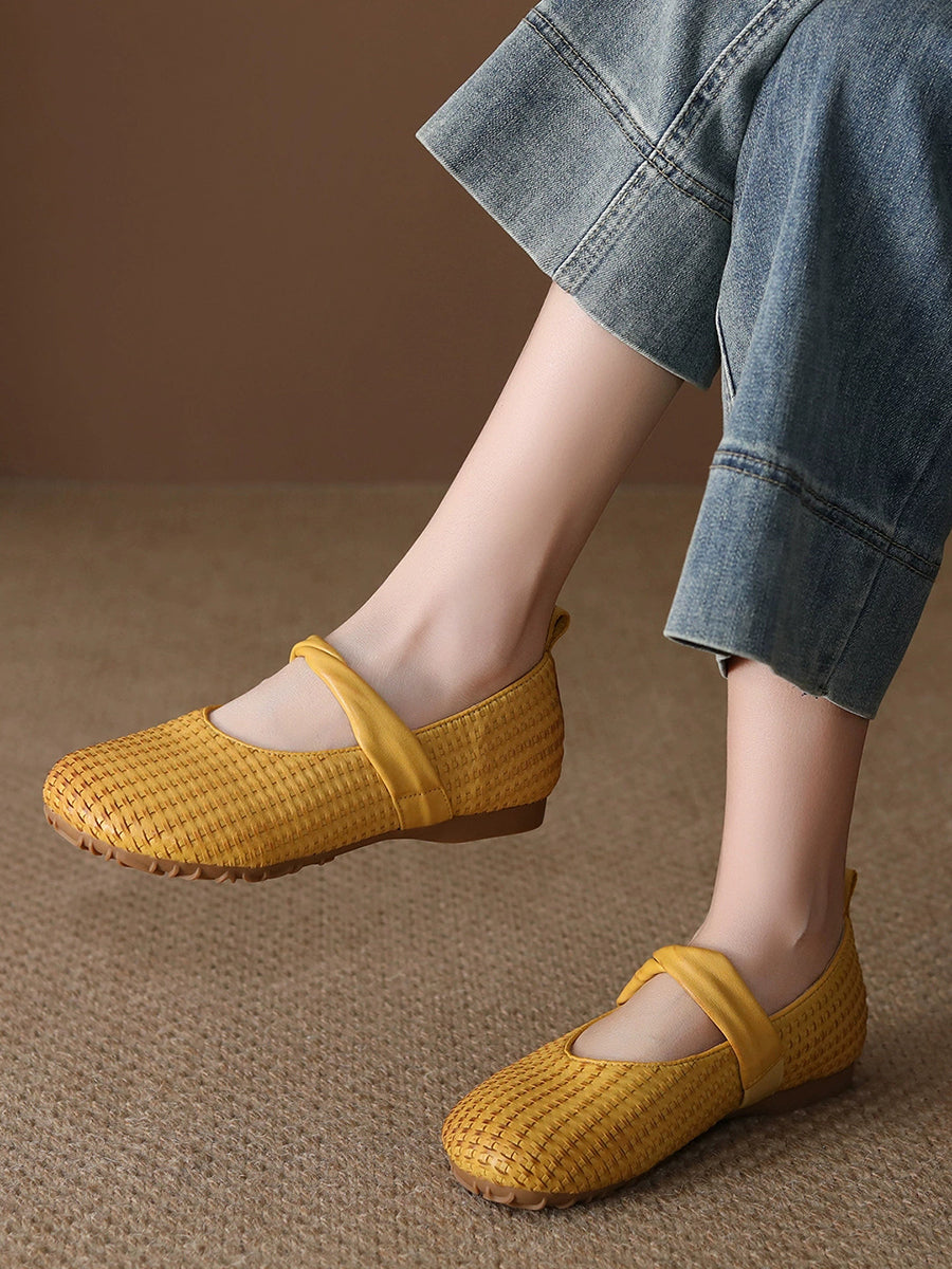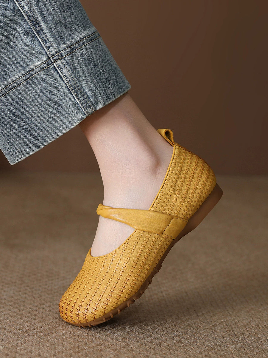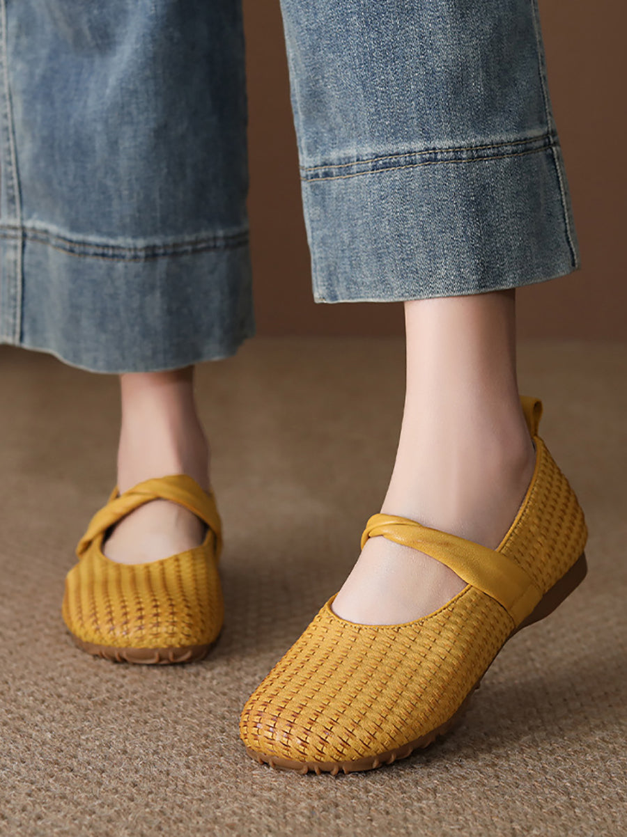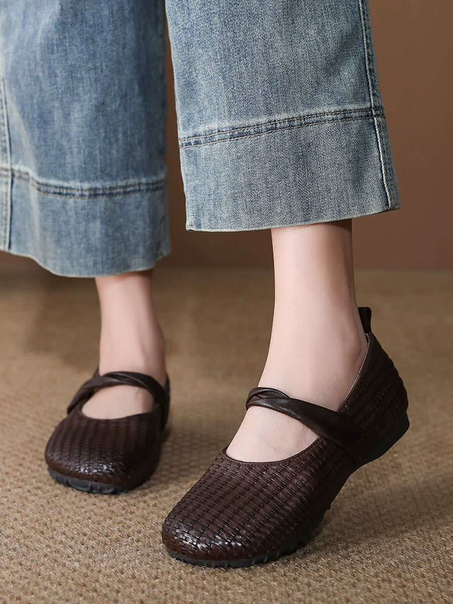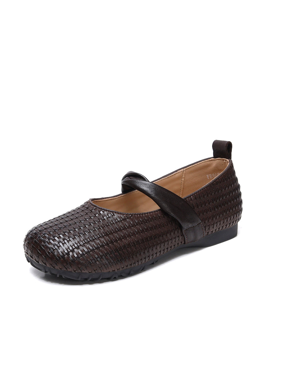 Zapatos planos vintage de piel auténtica para mujer, de primavera