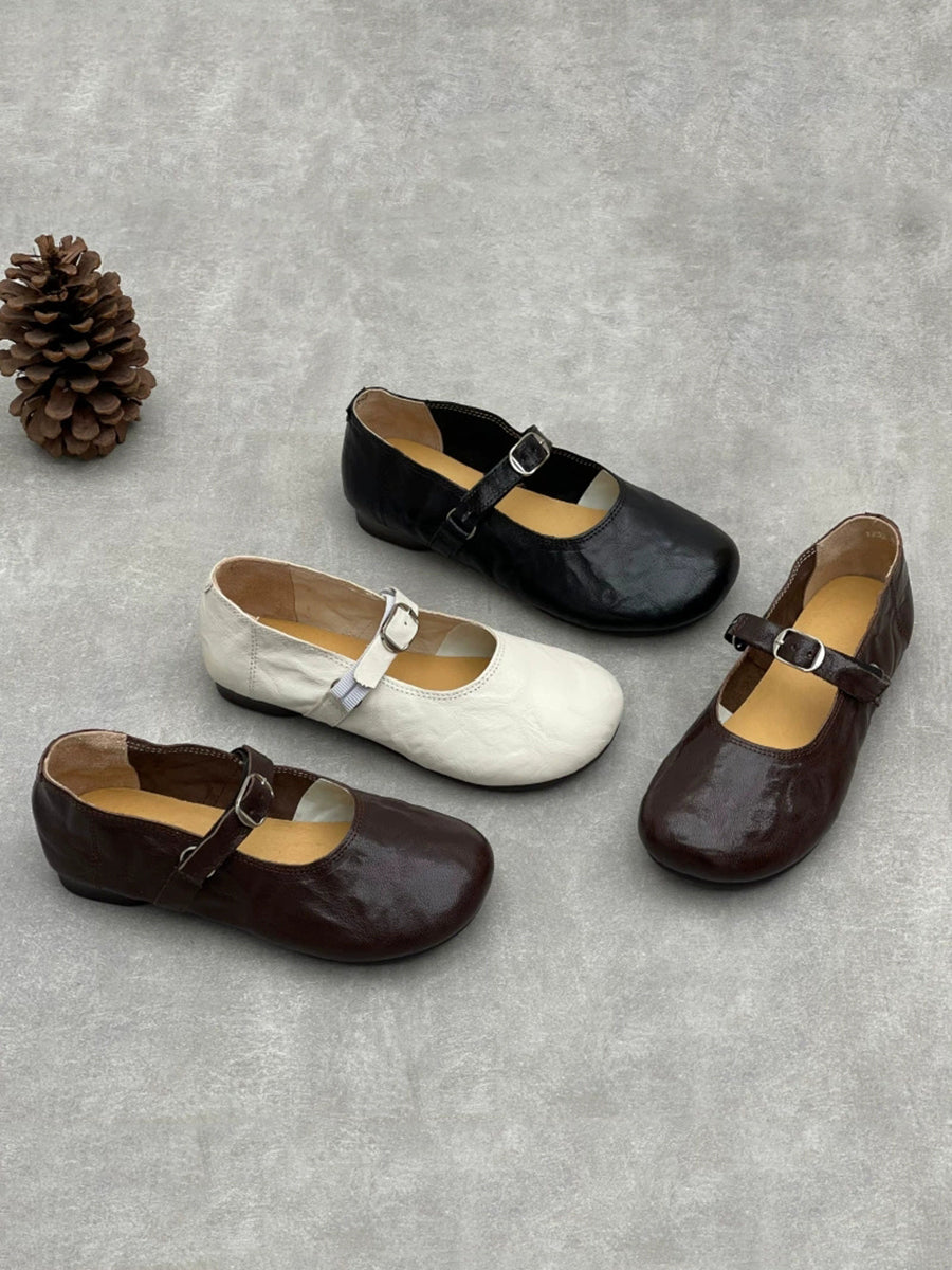 Zapatos de tacón bajo de piel auténtica vintage de primavera para mujer
