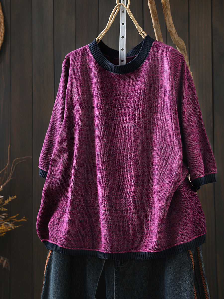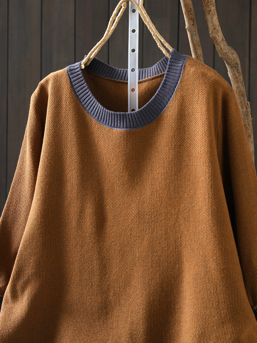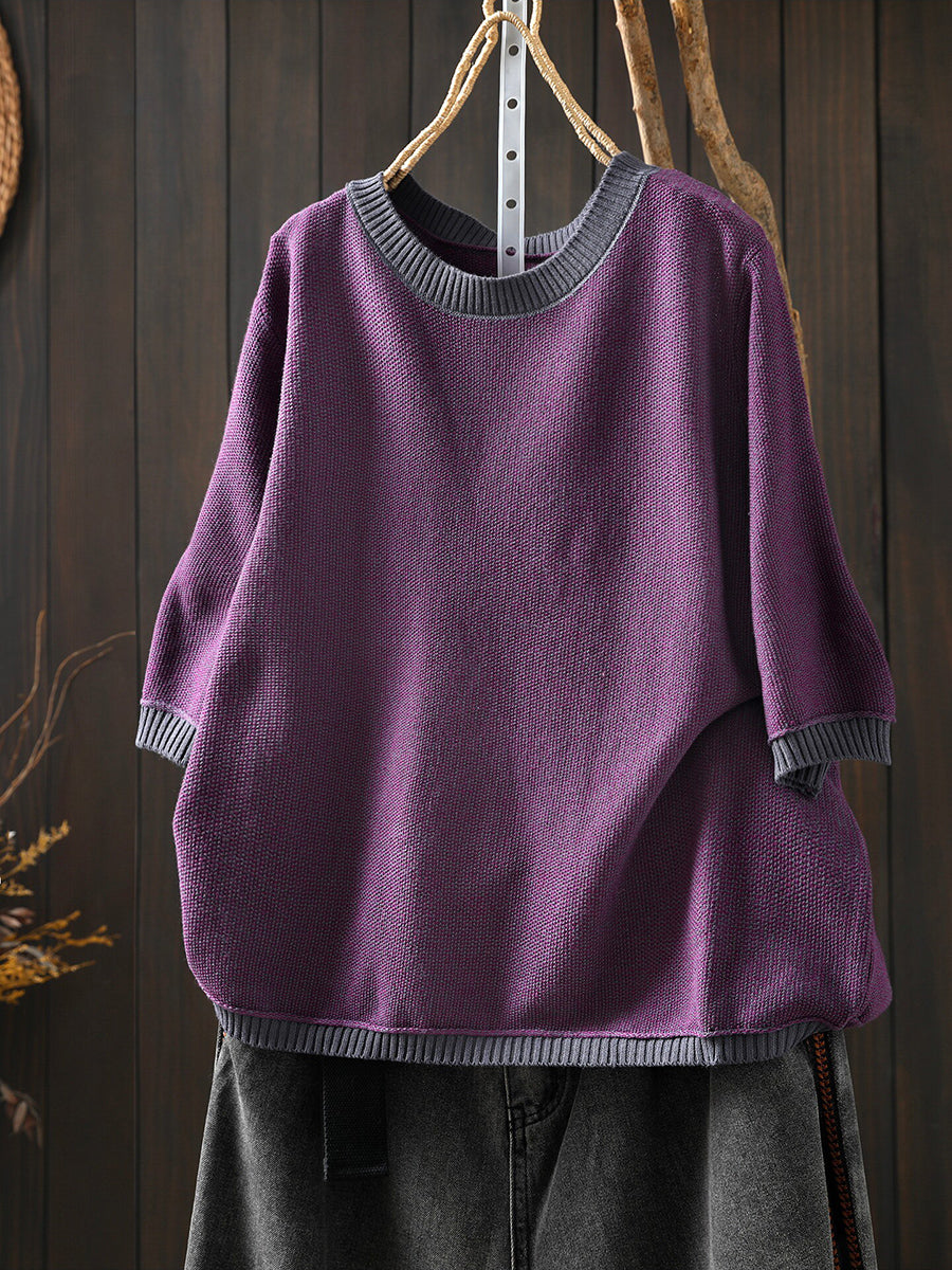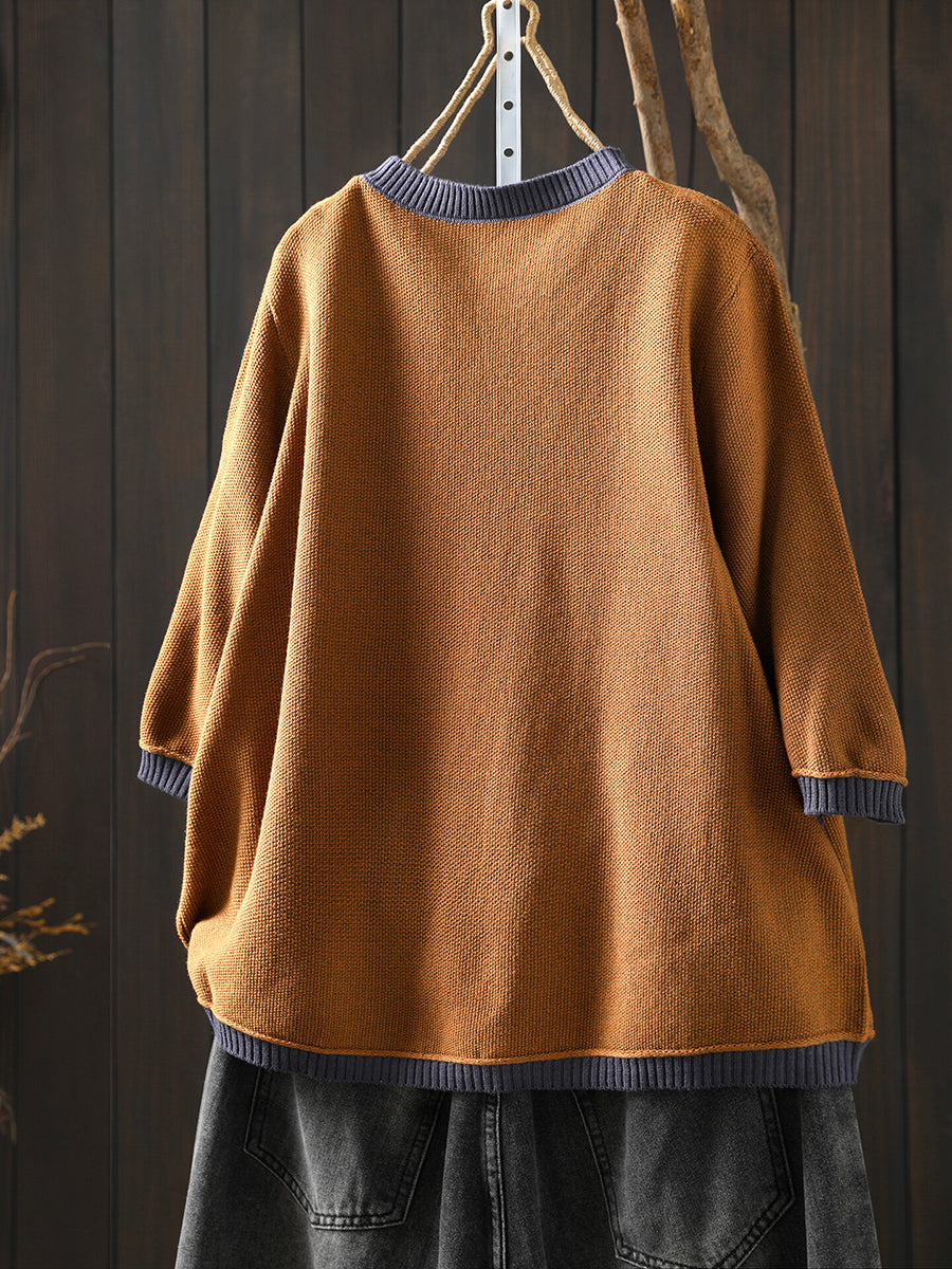Camisa de algodón a cuadros con cuello redondo y diseño artístico de bloques de colores para mujer