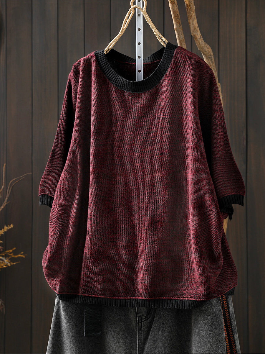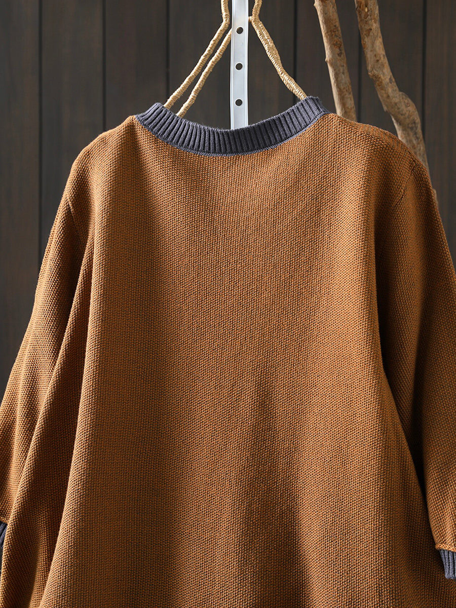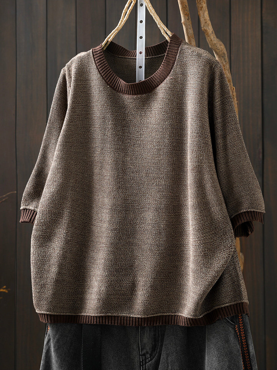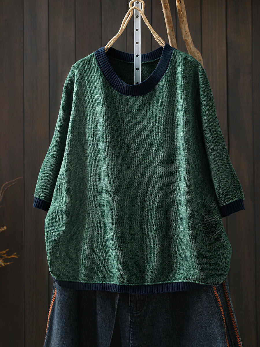 Camisa de algodón a cuadros con cuello redondo y diseño artístico de bloques de colores para mujer