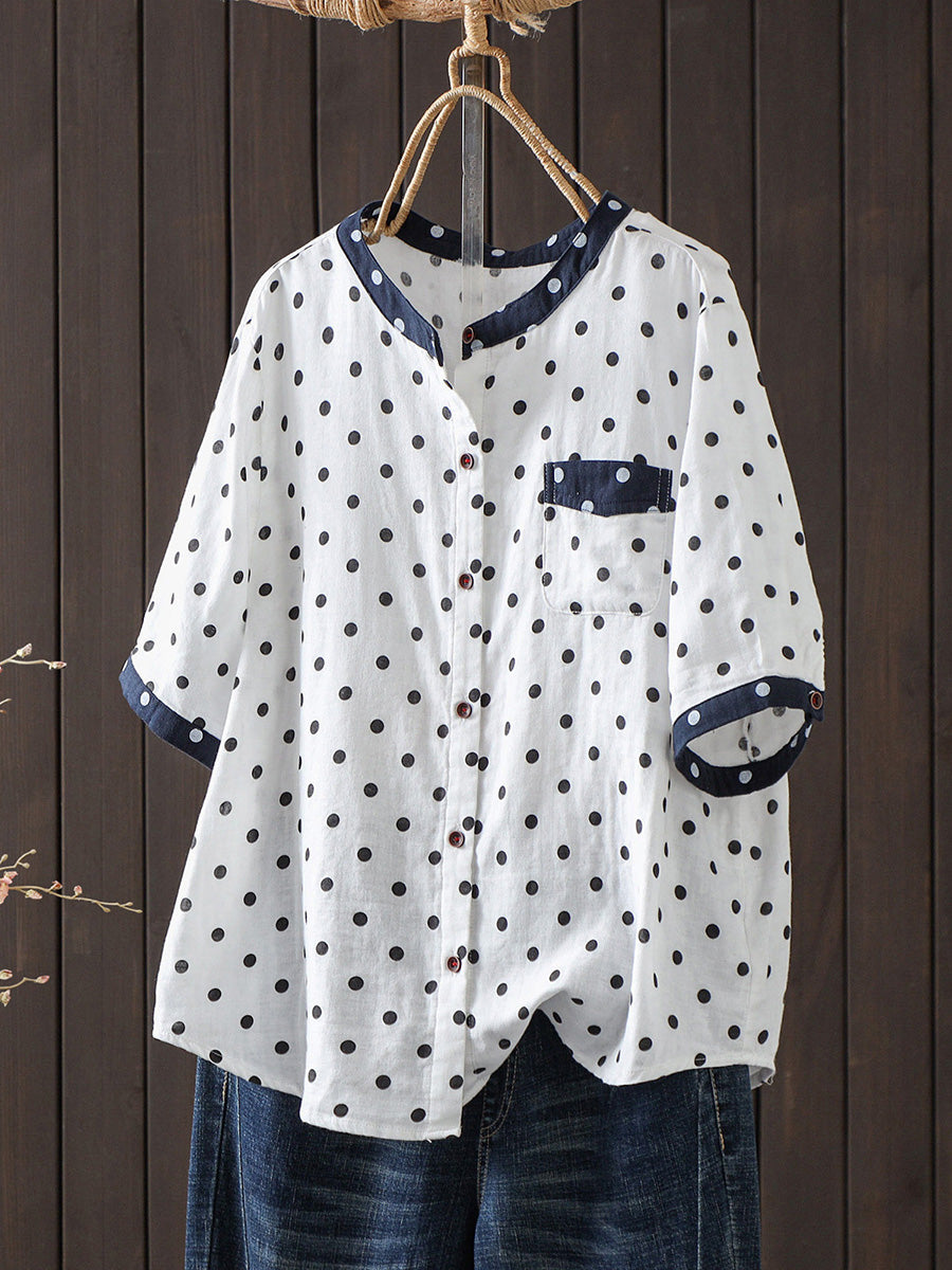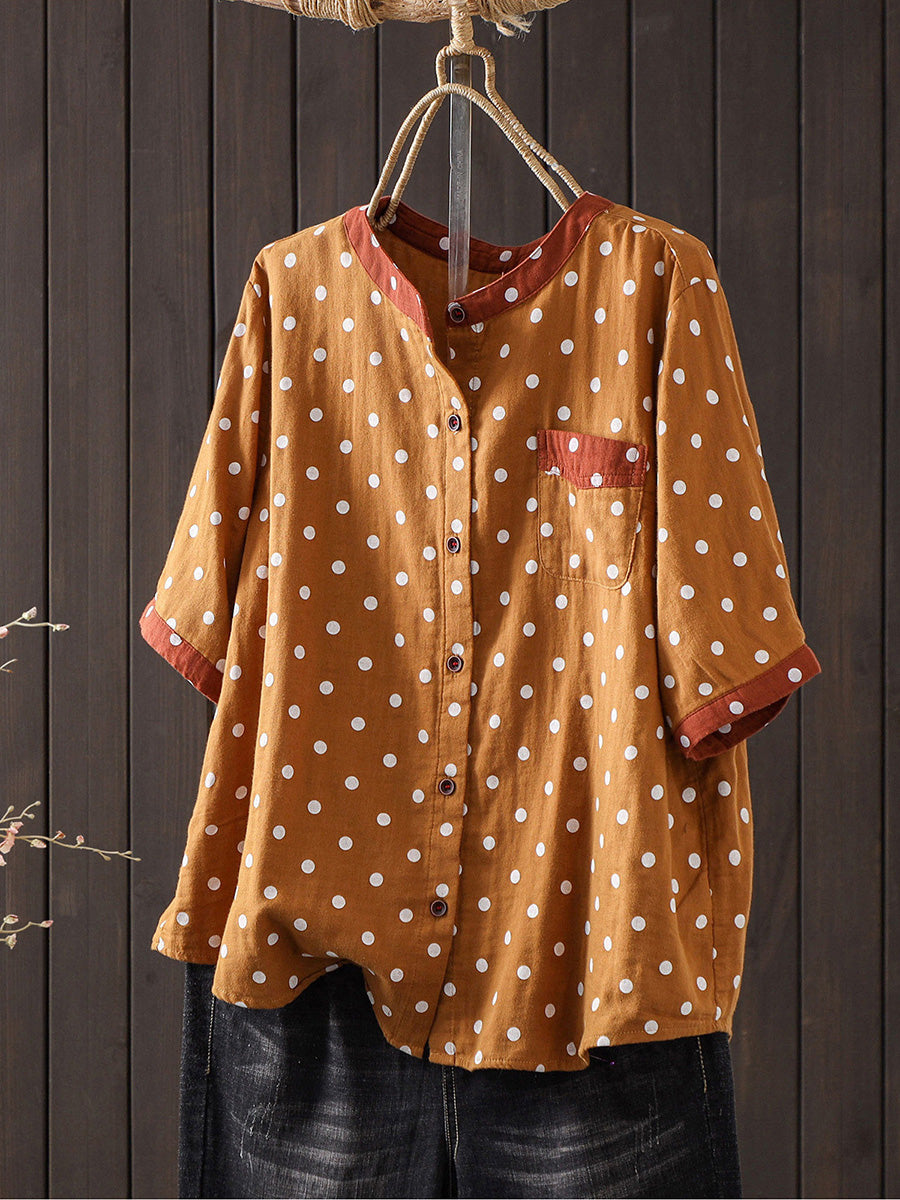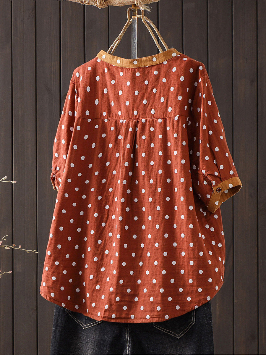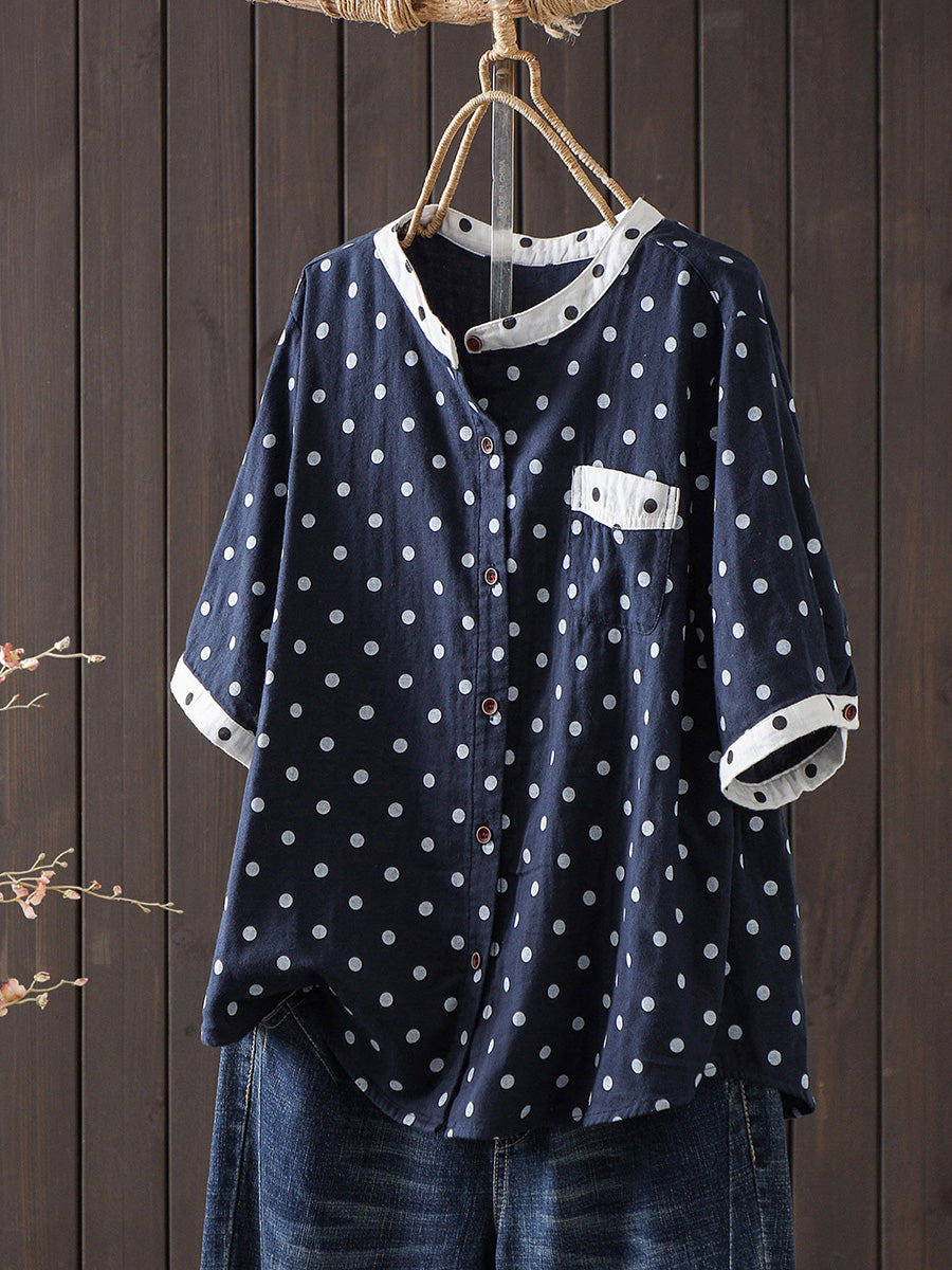 Blusa de algodón con estampado de lunares artísticos para mujer, ideal para el verano.