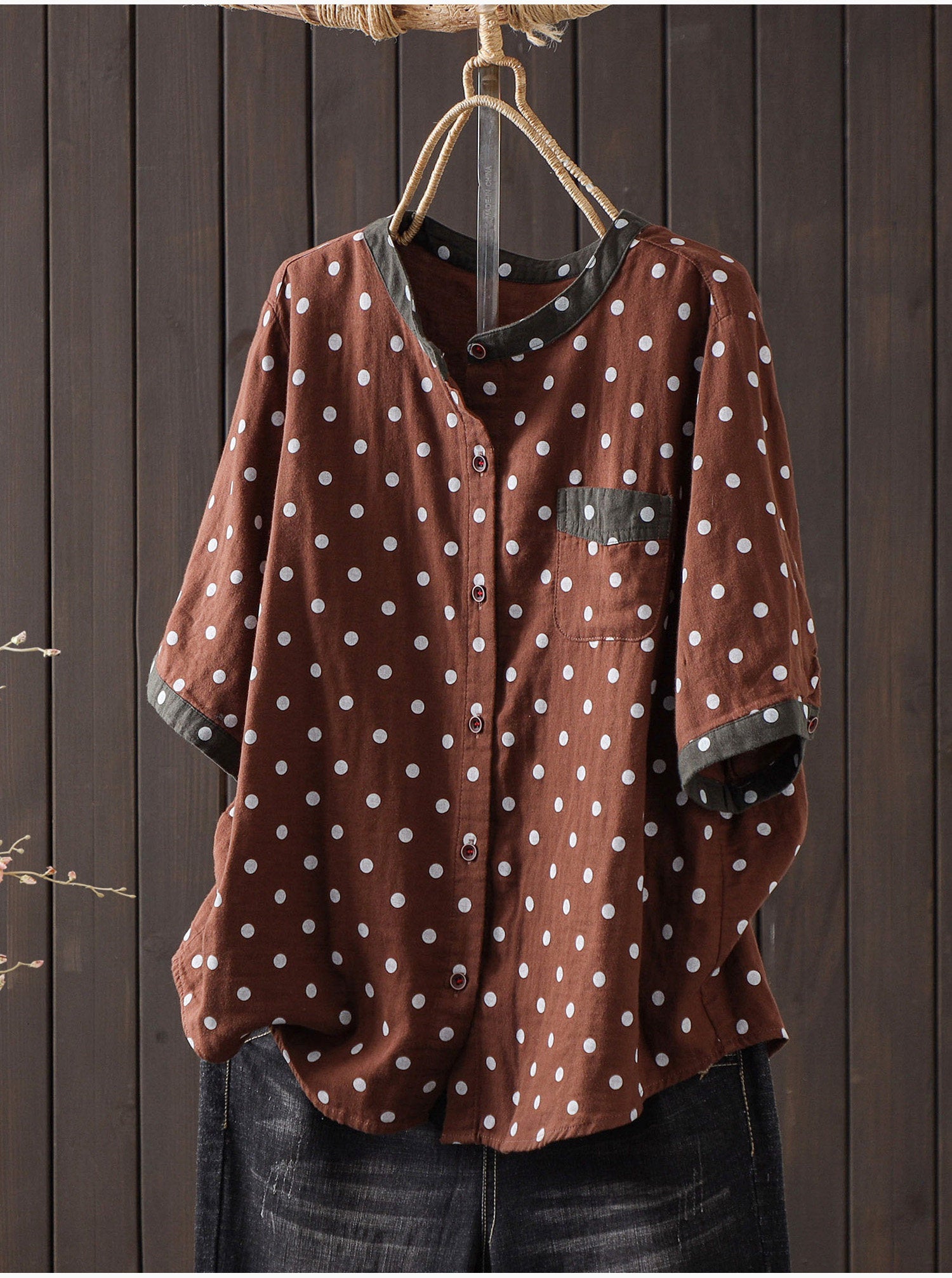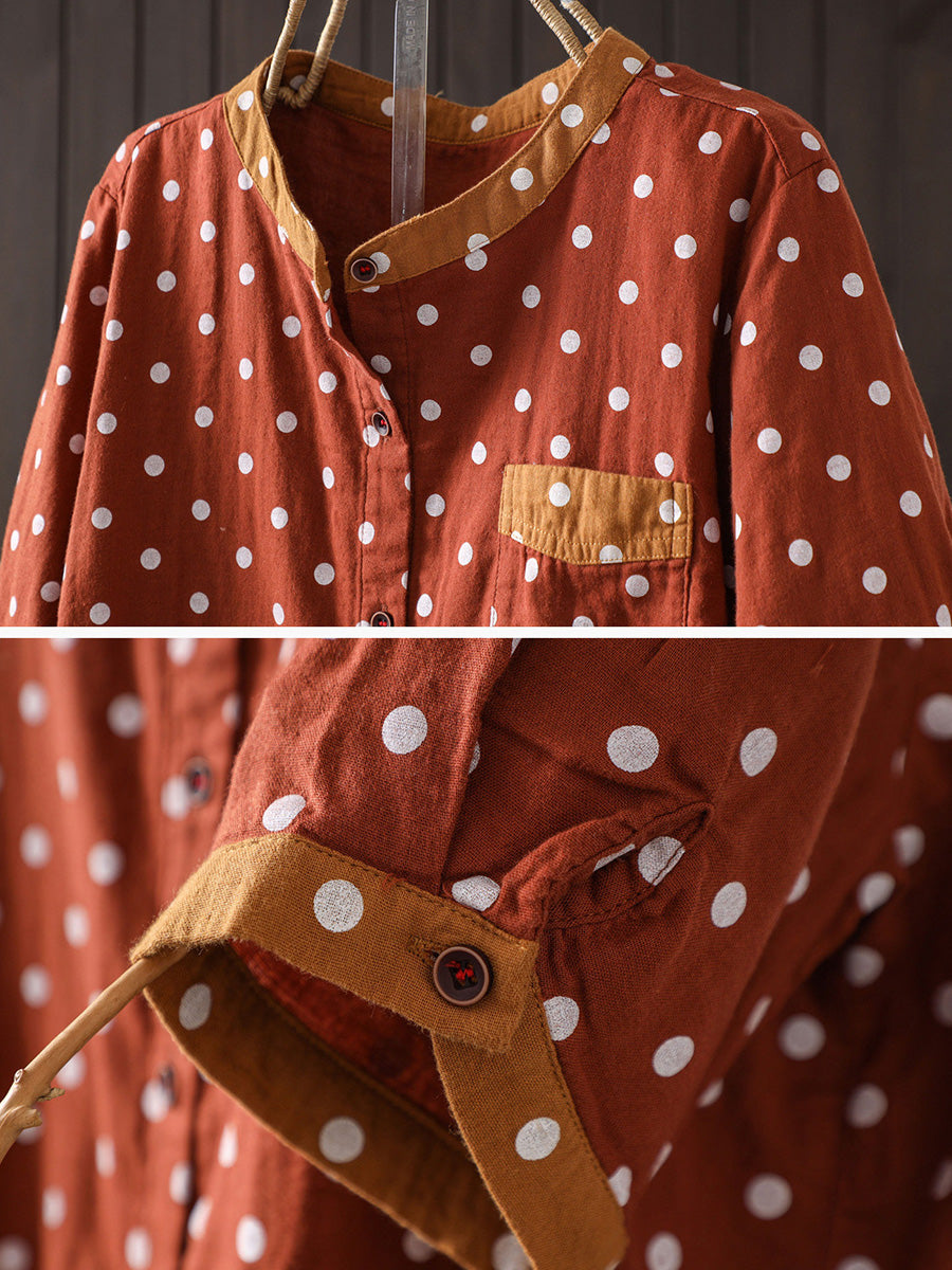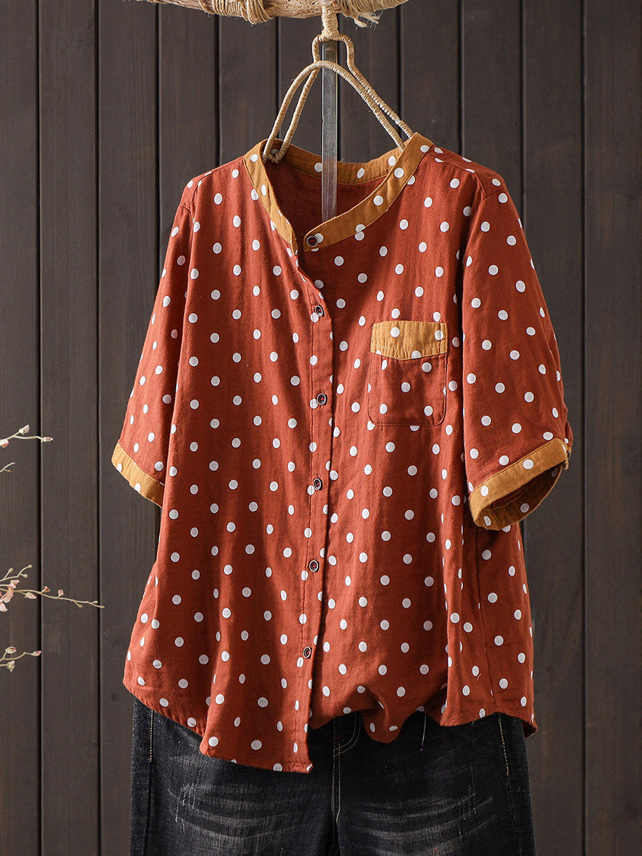 Blusa de algodón con estampado de lunares artísticos para mujer, ideal para el verano.