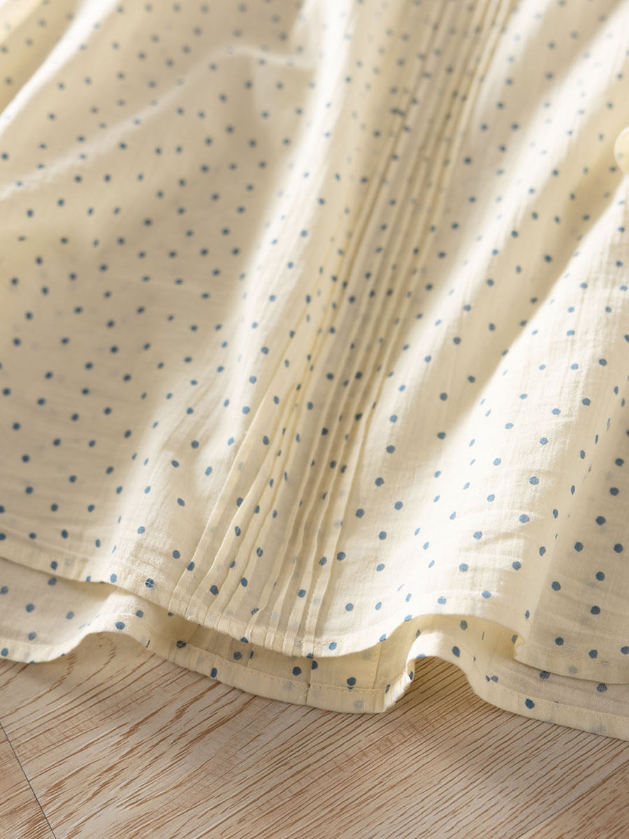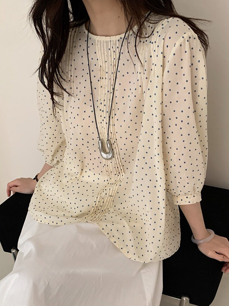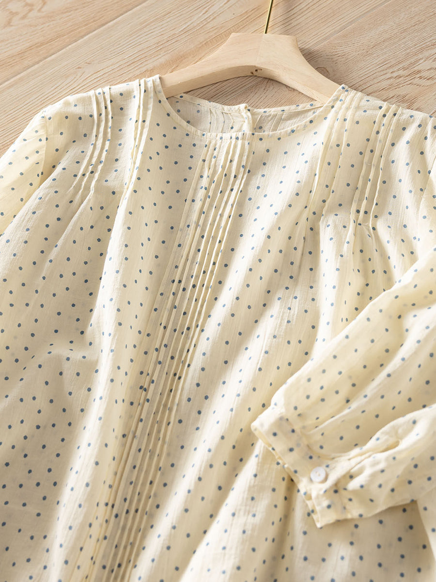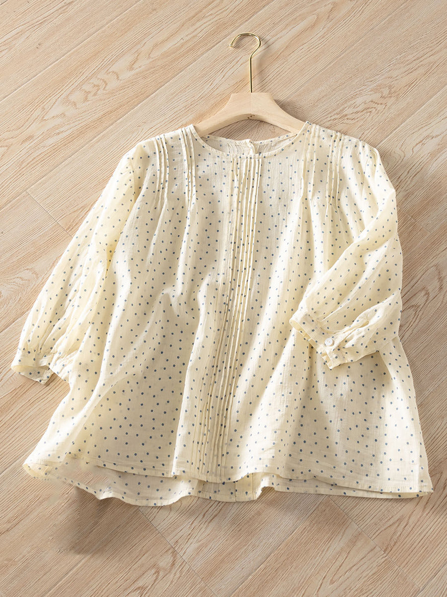Blusa de algodón fruncida con lunares y estampado artístico para mujer, ideal para el verano.