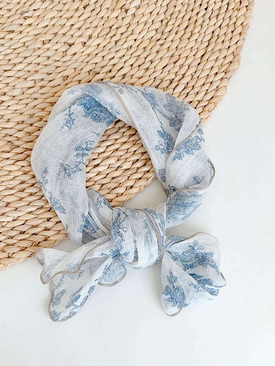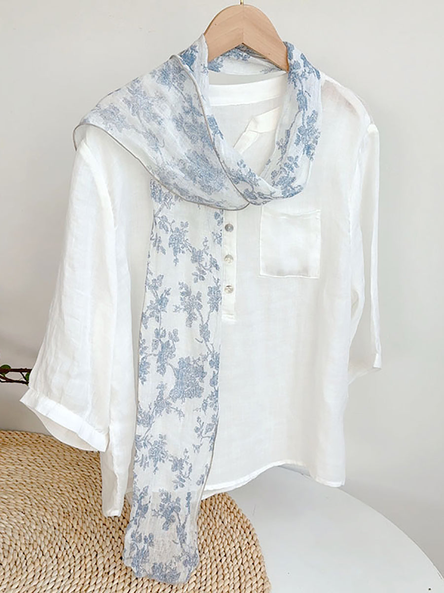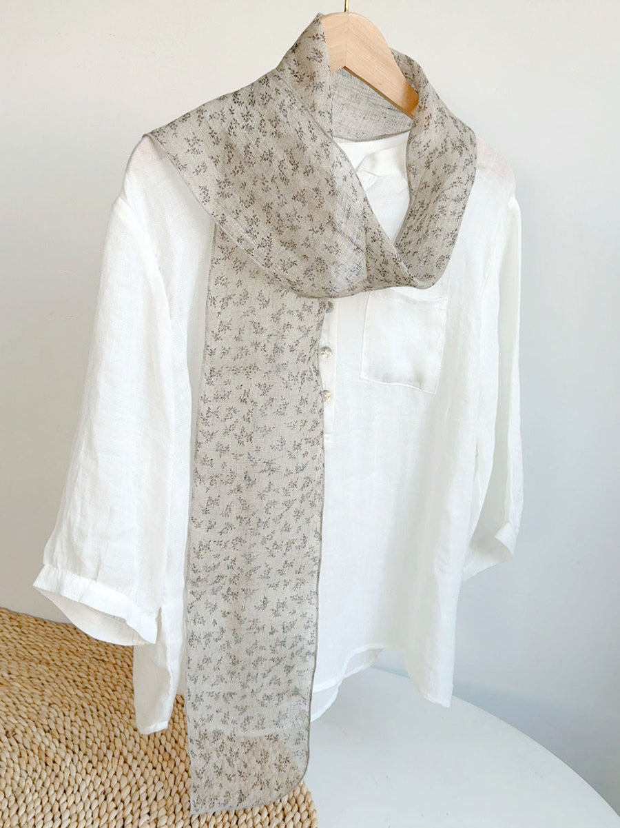 Bufanda fina de lino con estampado floral artístico para mujer, ideal para el verano.