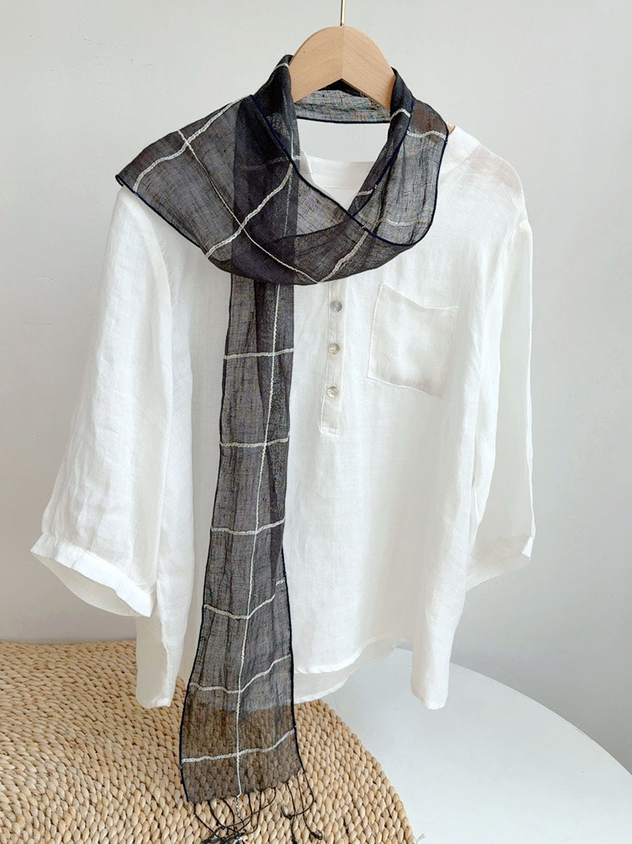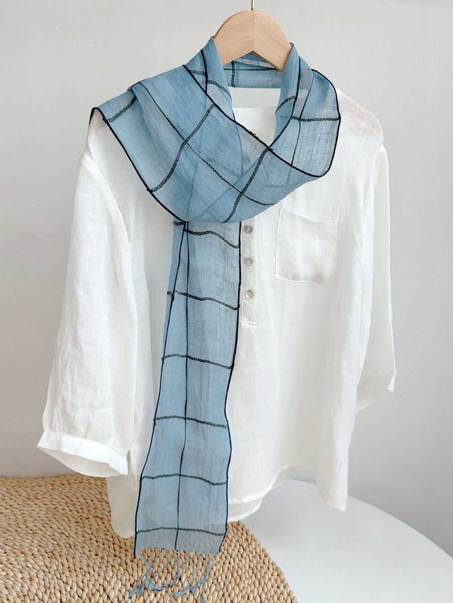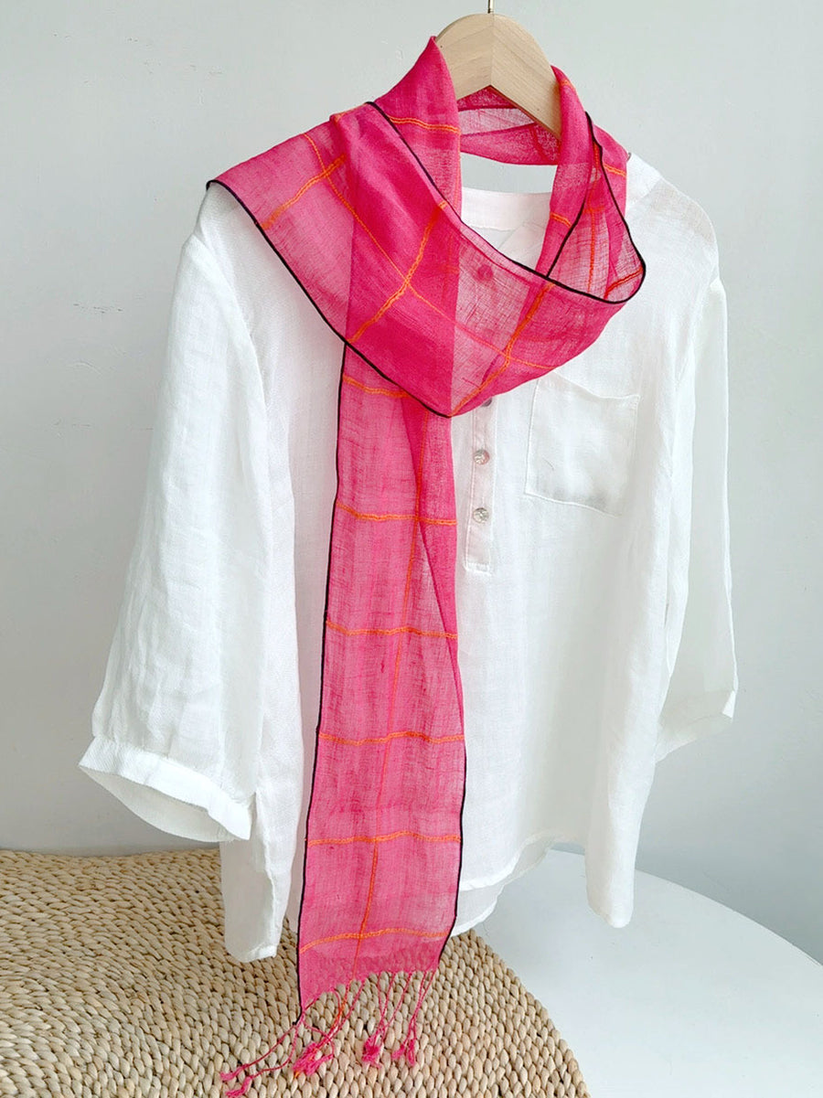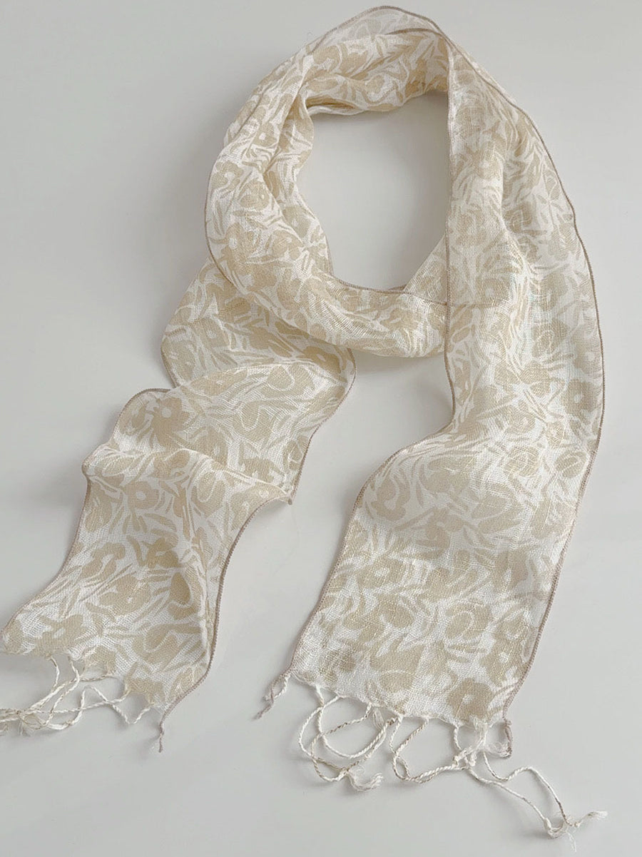 Bufanda fina de lino con estampado floral artístico para mujer, ideal para el verano.