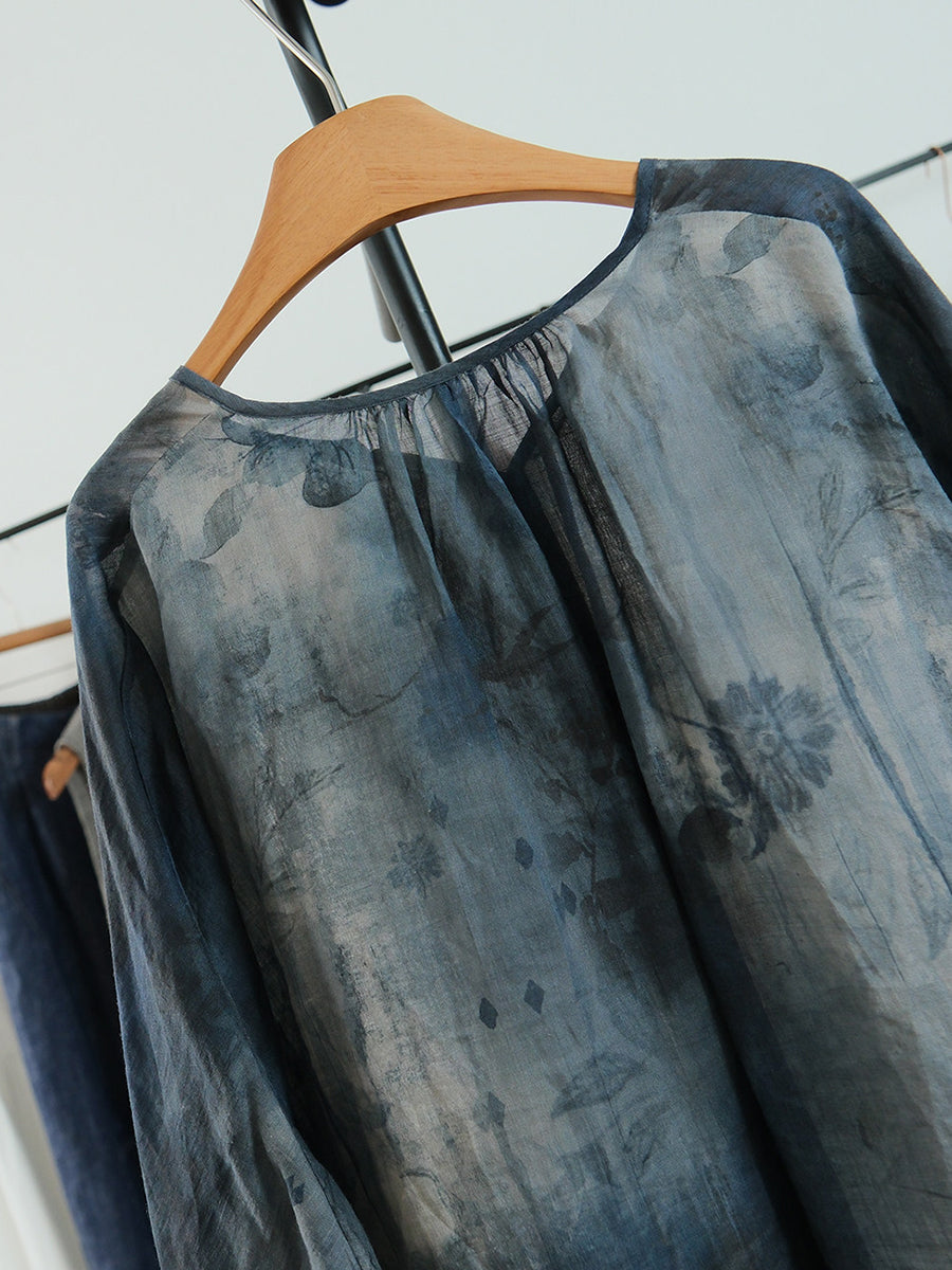Blusa de verano para mujer con cuello en V y estampado floral artístico.
