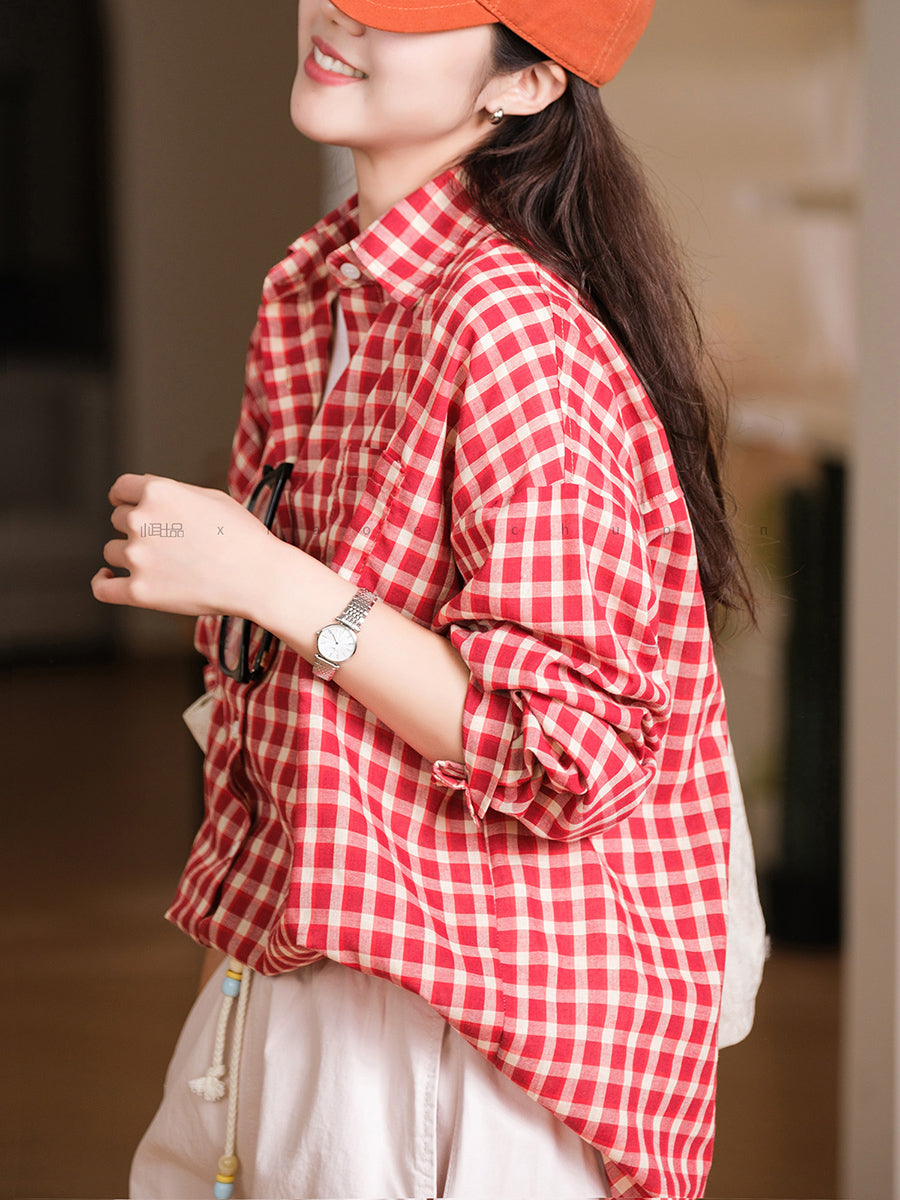 Blusa de verano con cuello vuelto y cuadros artísticos para mujer