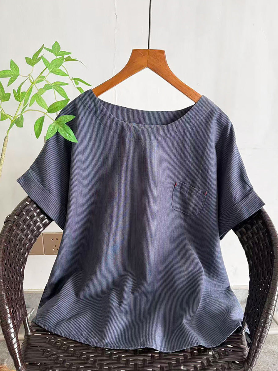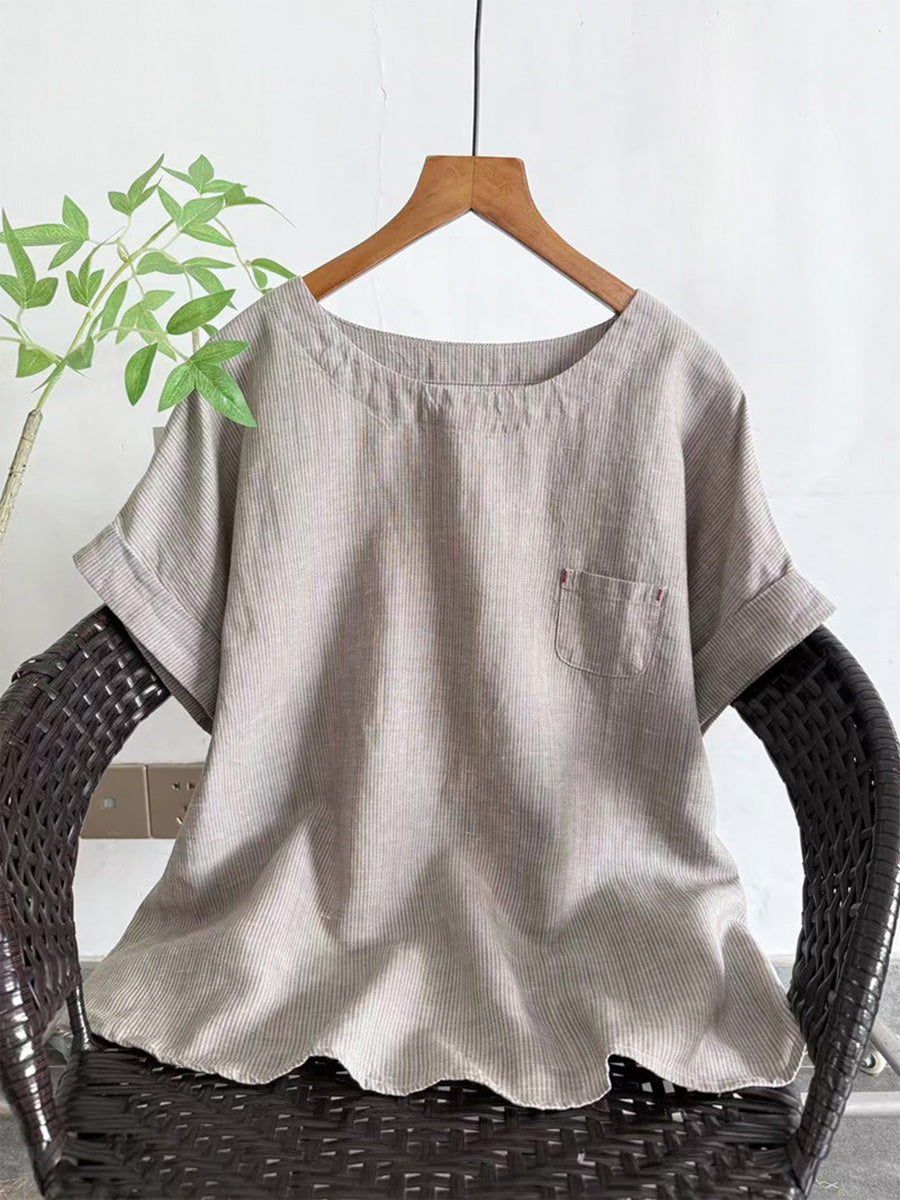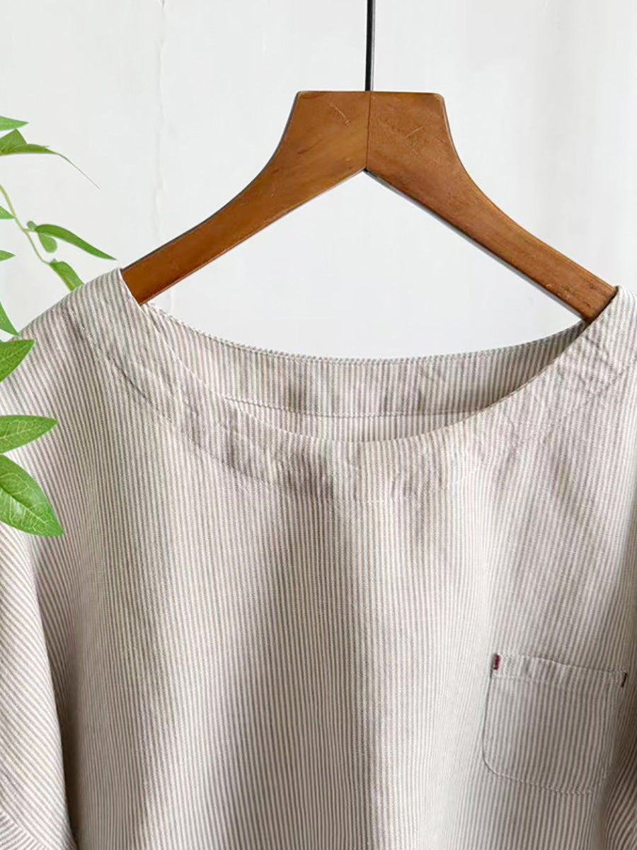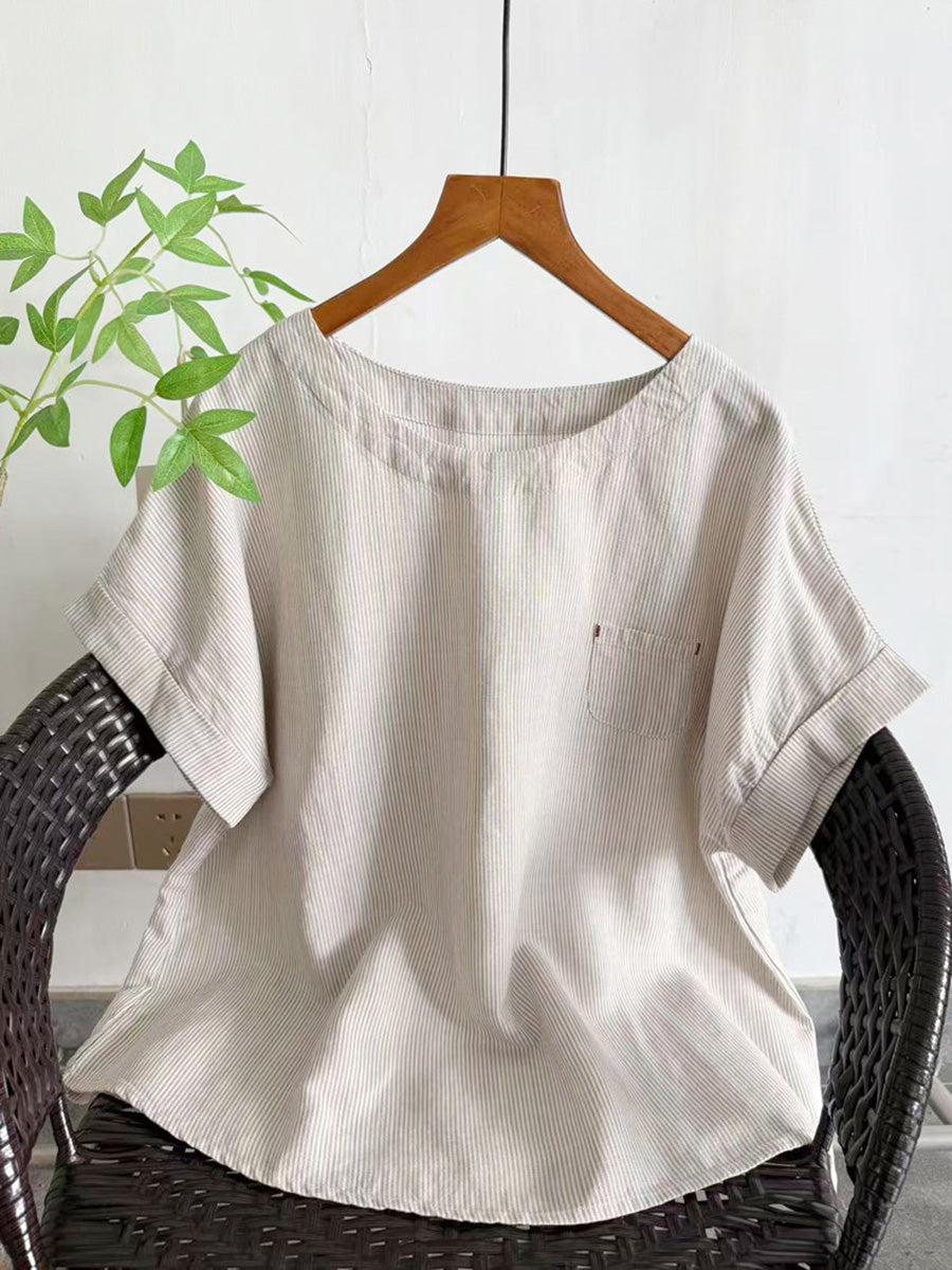 Blusa de mujer de verano a rayas con cuello redondo.