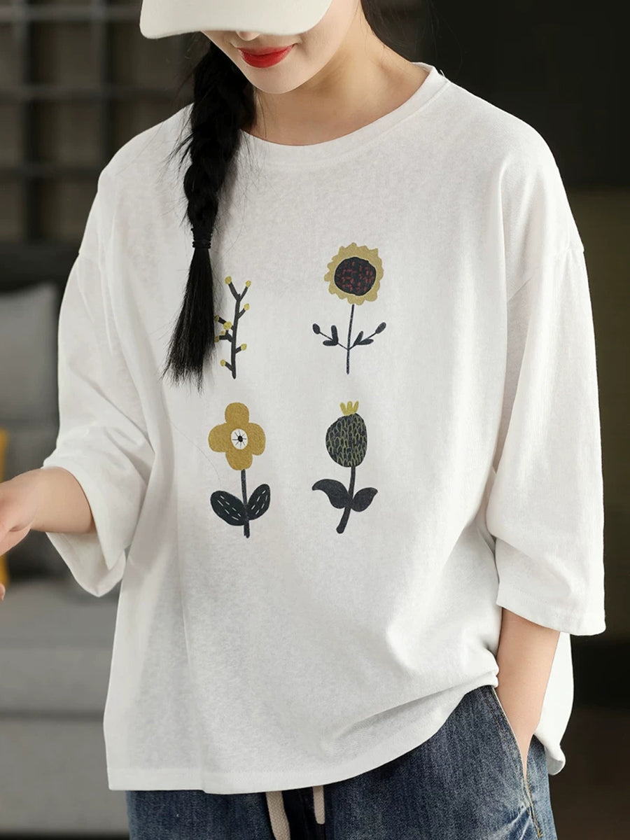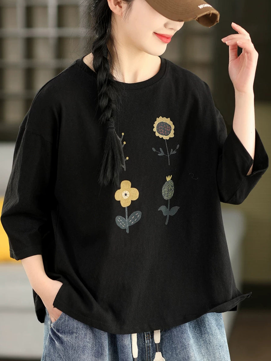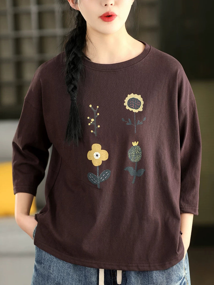 Blusa informal de verano con cuello redondo y estampado floral para mujer.