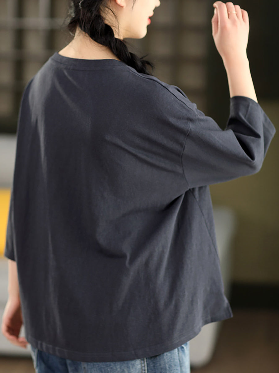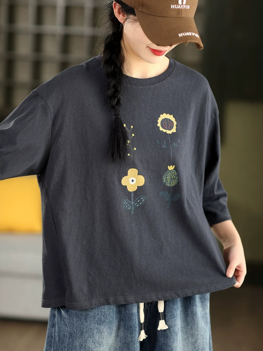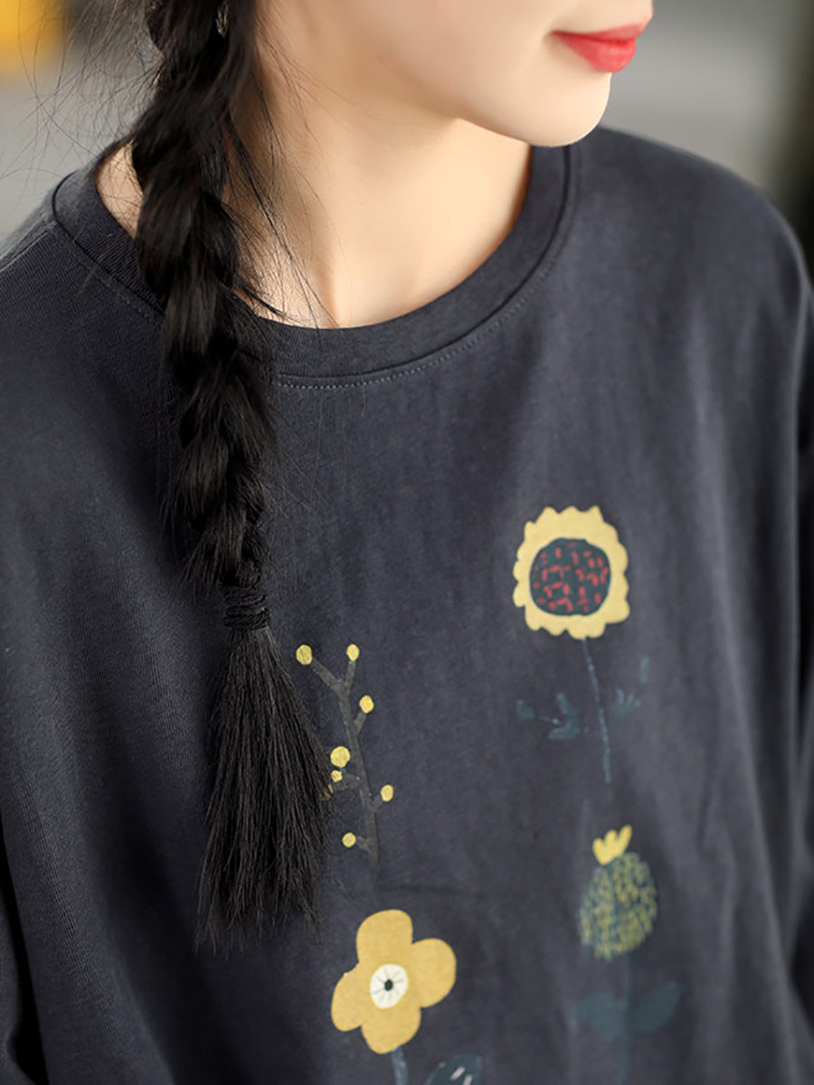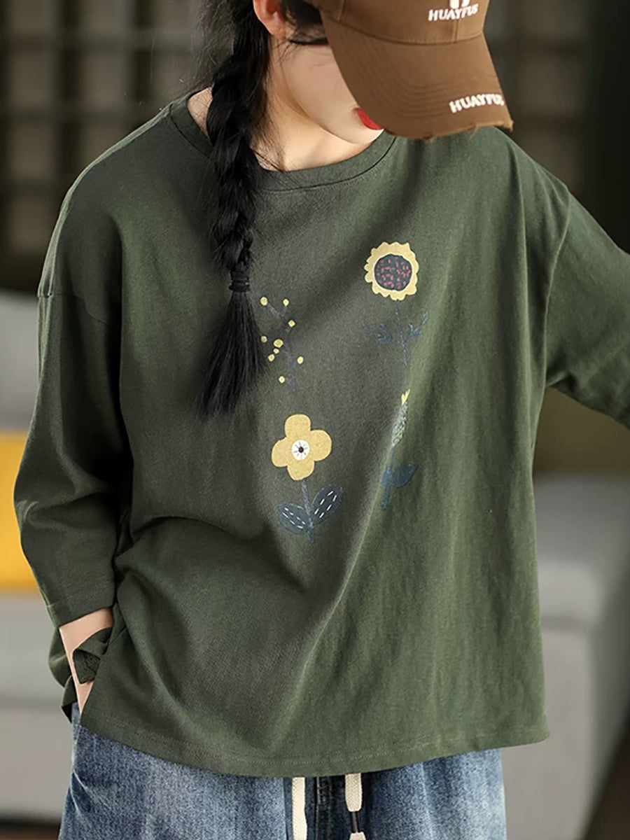 Blusa informal de verano con cuello redondo y estampado floral para mujer.