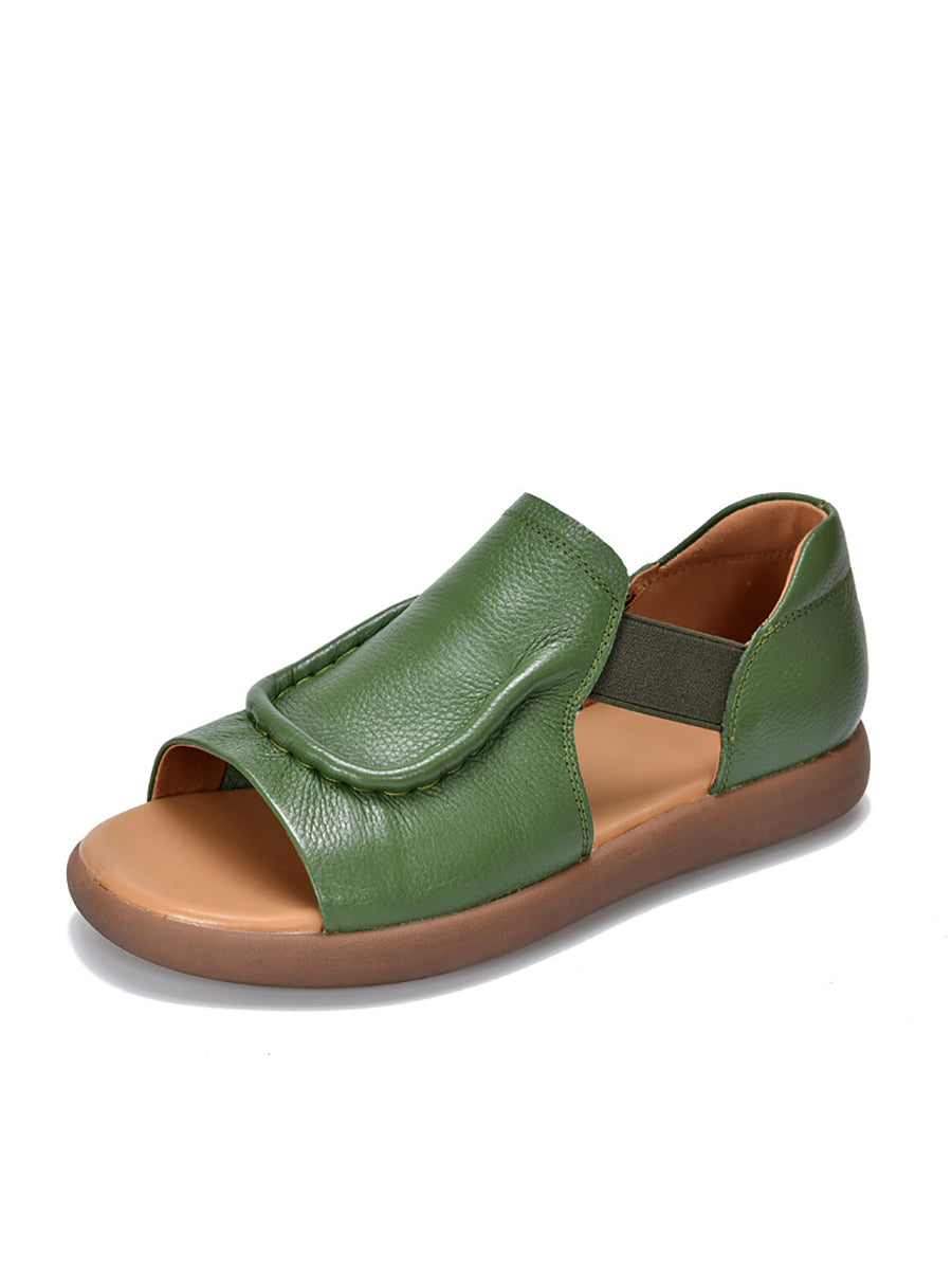 Sandalias planas informales de verano de piel auténtica para mujer