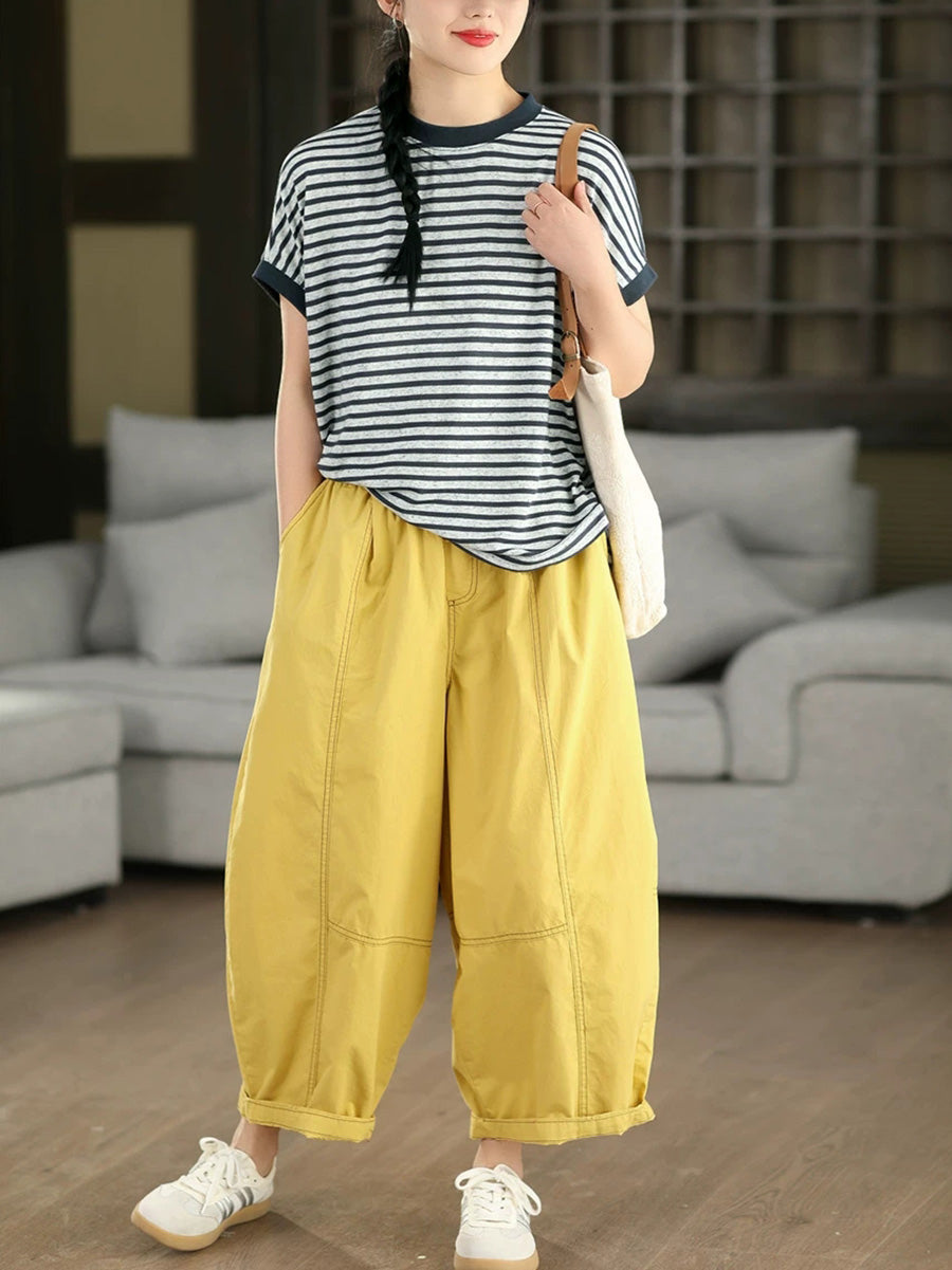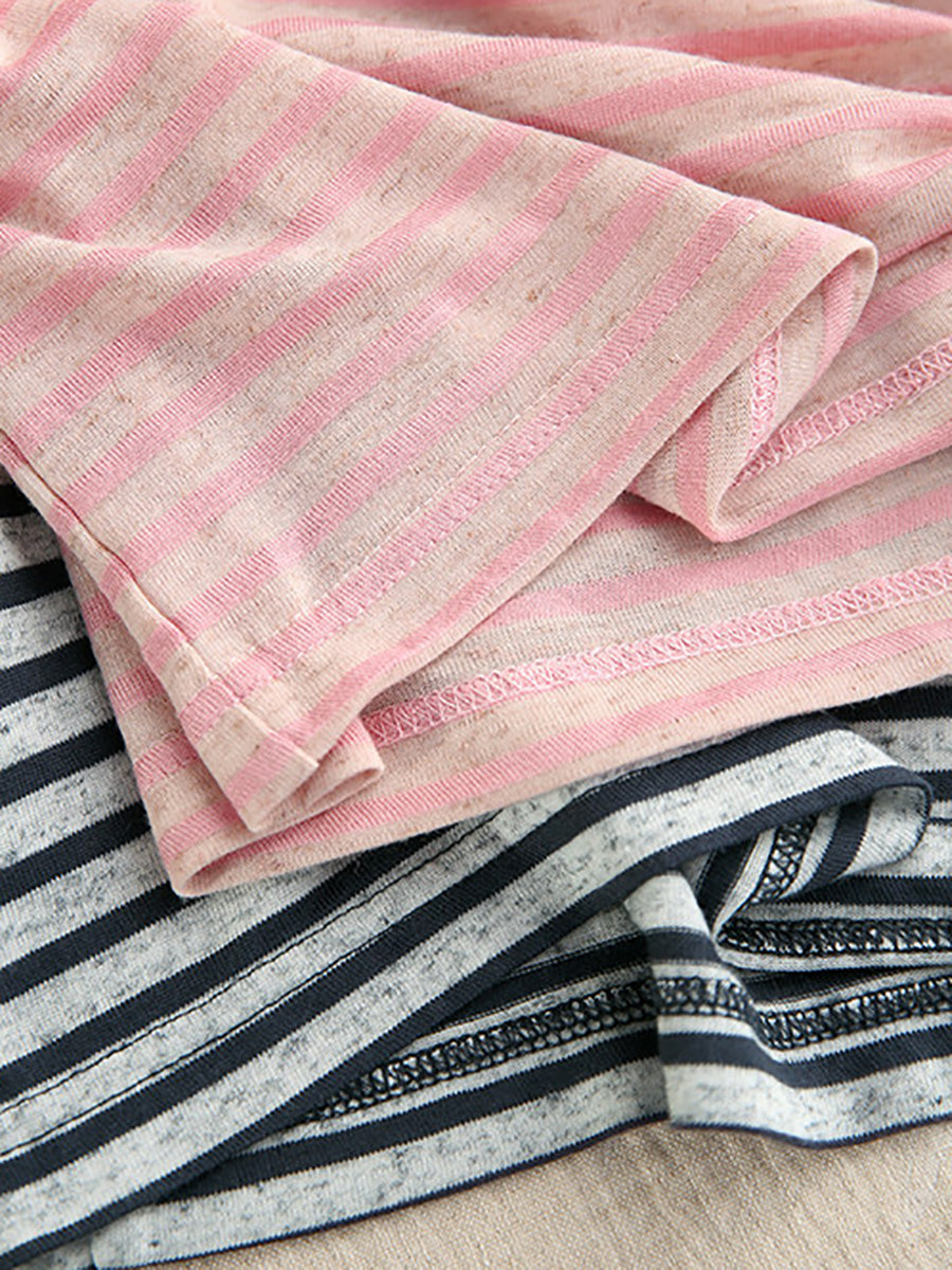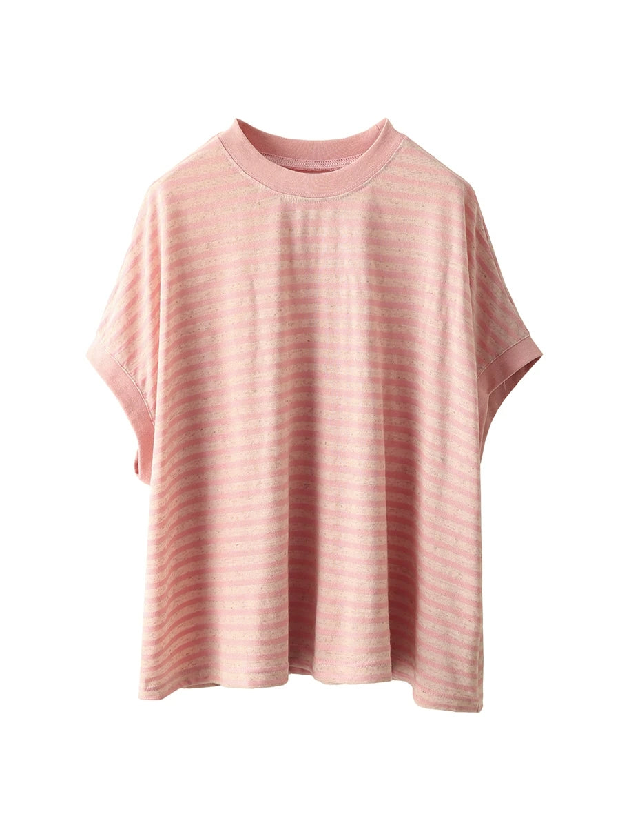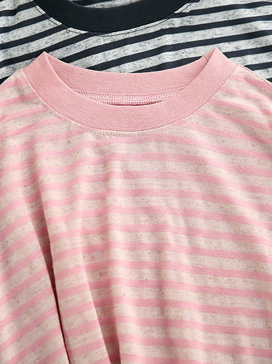 Camisa de mujer informal de verano con cuello redondo y rayas