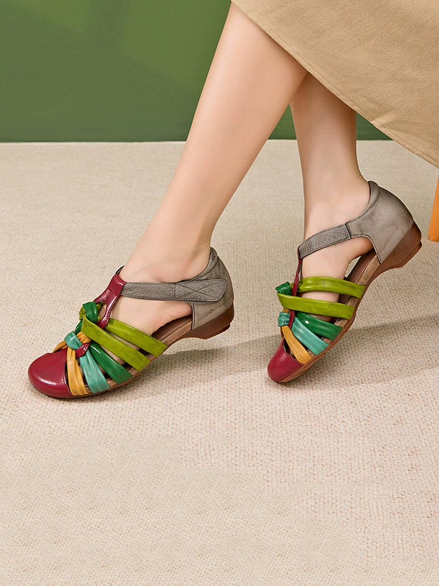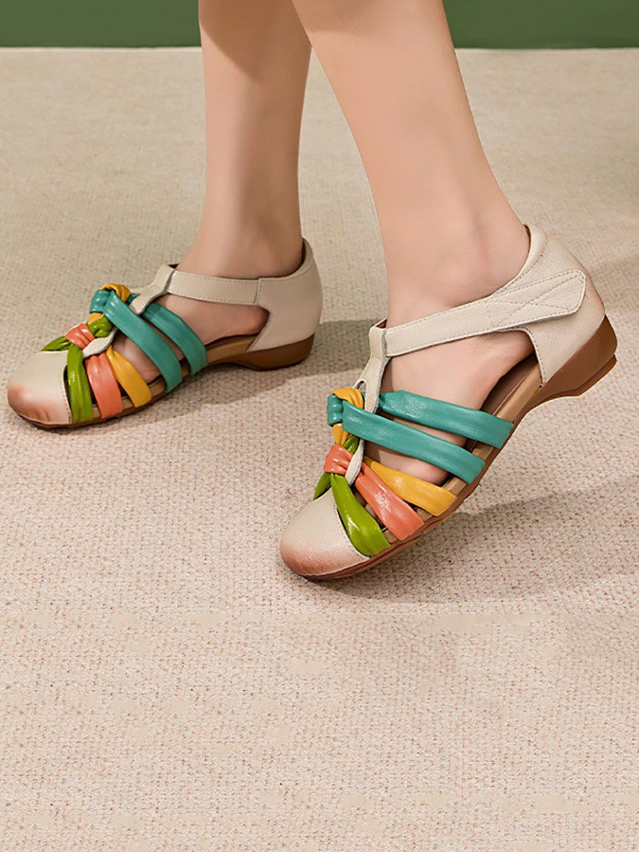 Sandalias de verano para mujer de piel auténtica con bloques de color.