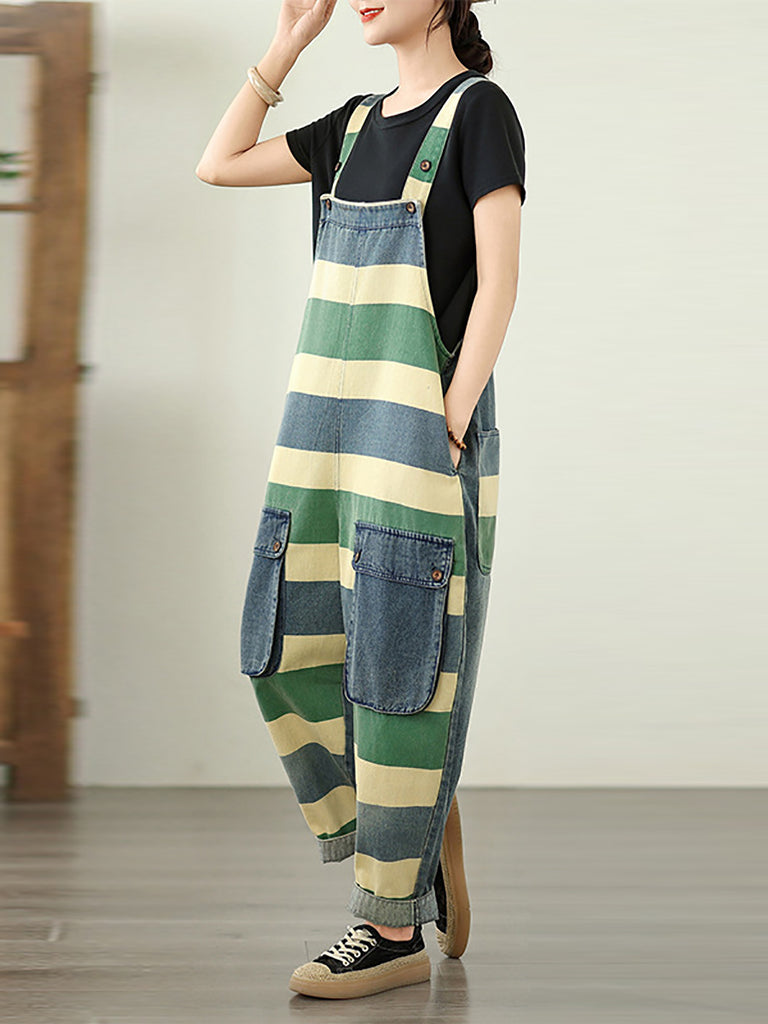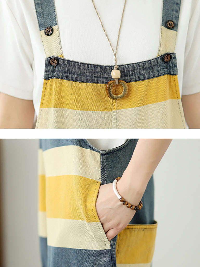 Monos holgados de mezclilla con rayas y bloques de color de verano para mujer