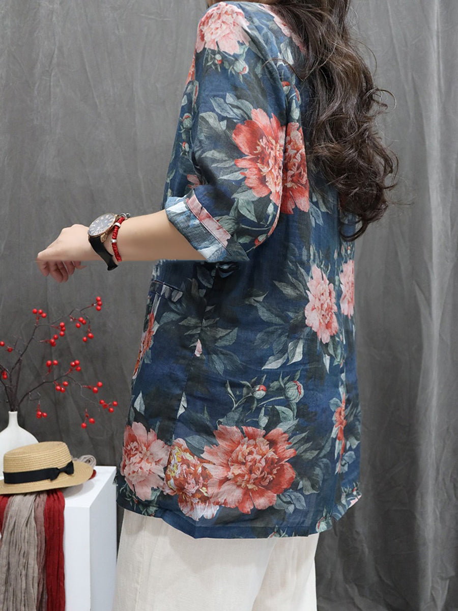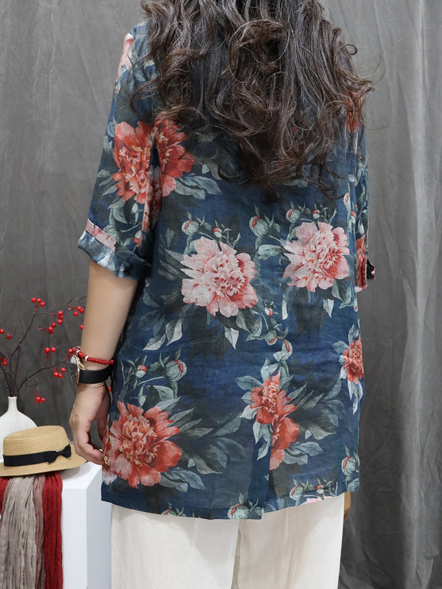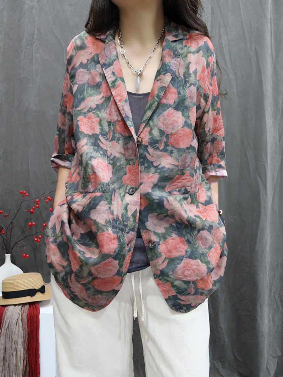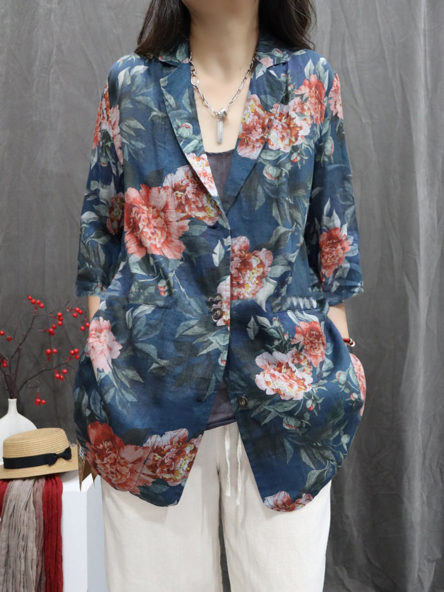 Abrigo de cuello vuelto 100 % ramio con flores de verano para mujer
