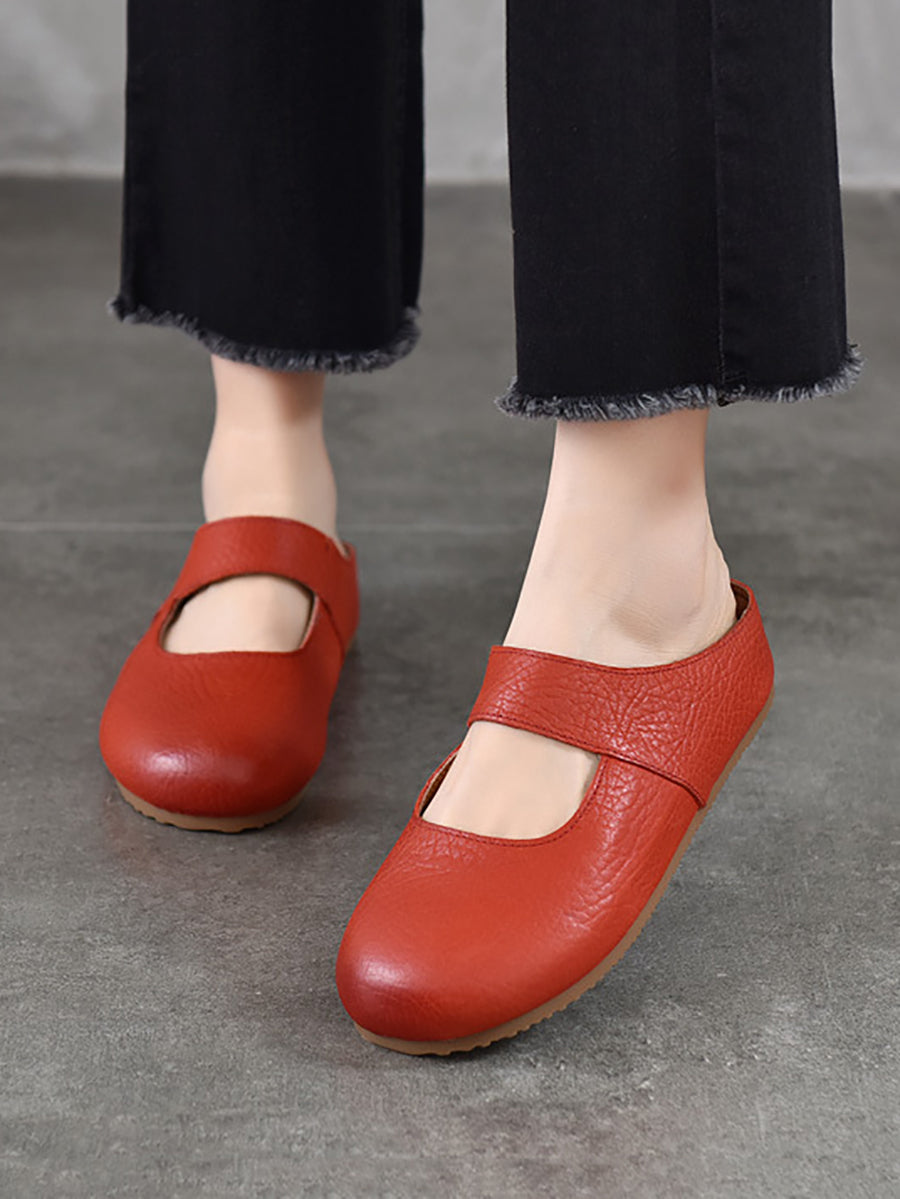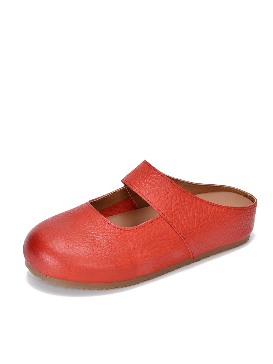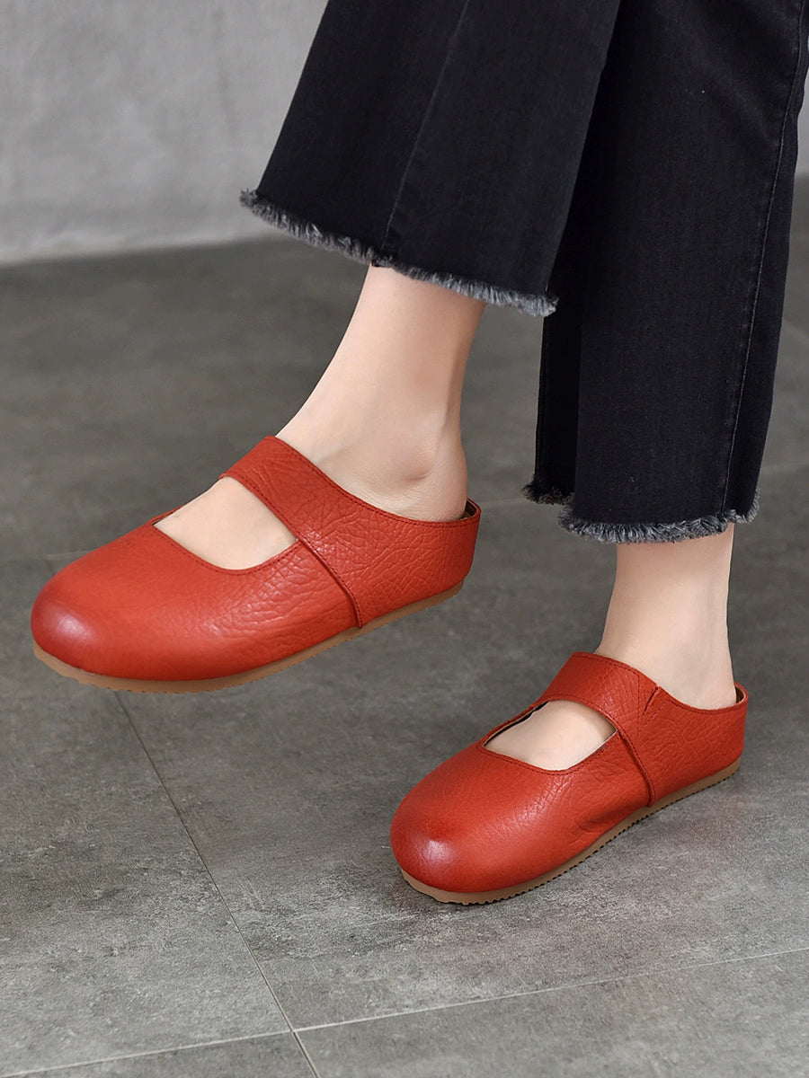 Pantuflas planas de piel auténtica para mujer, ideales para el verano.