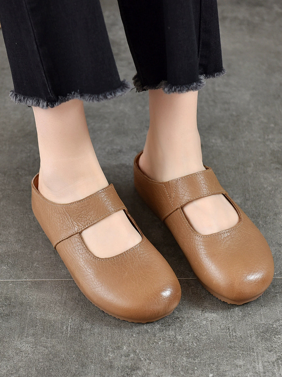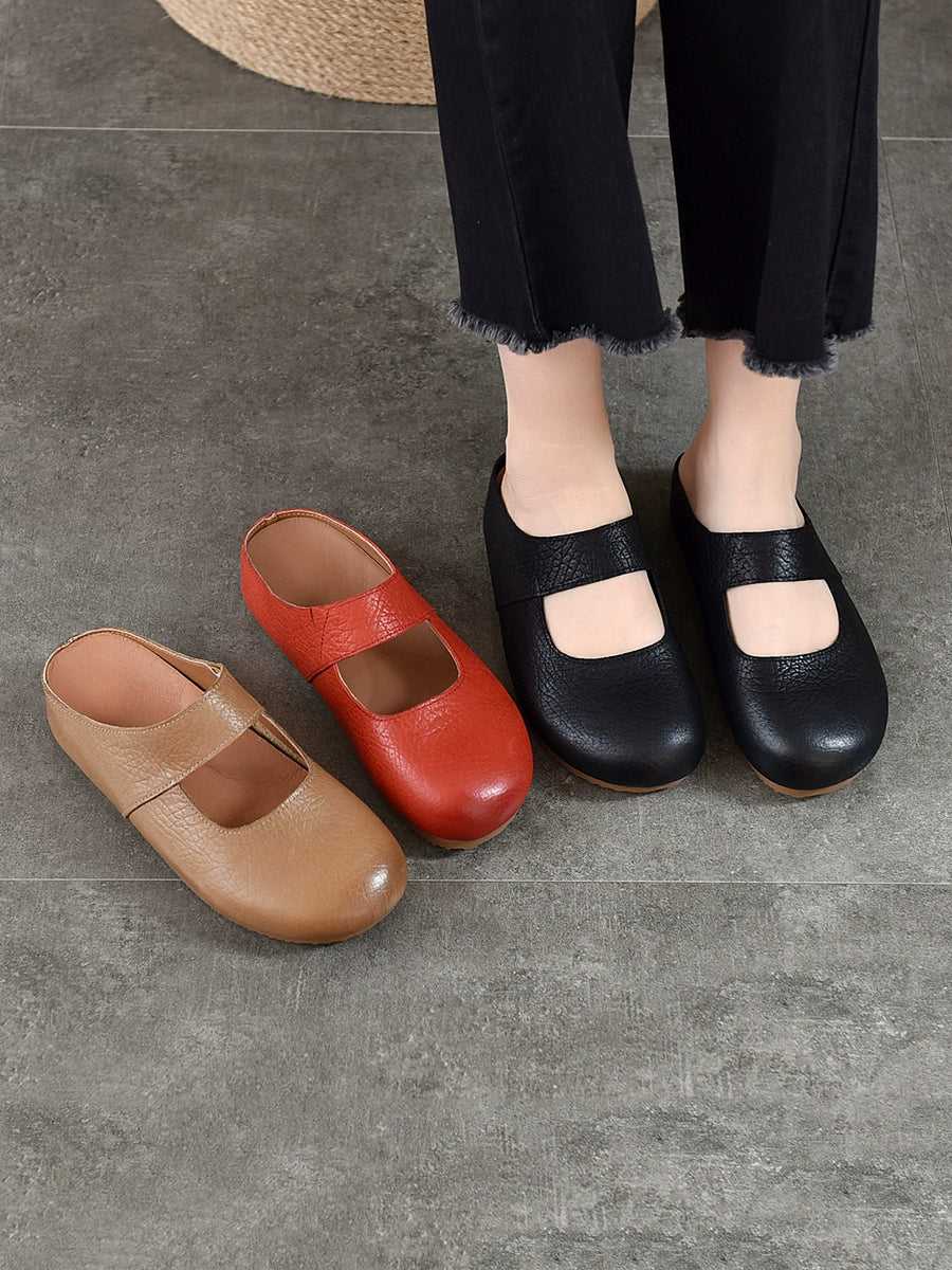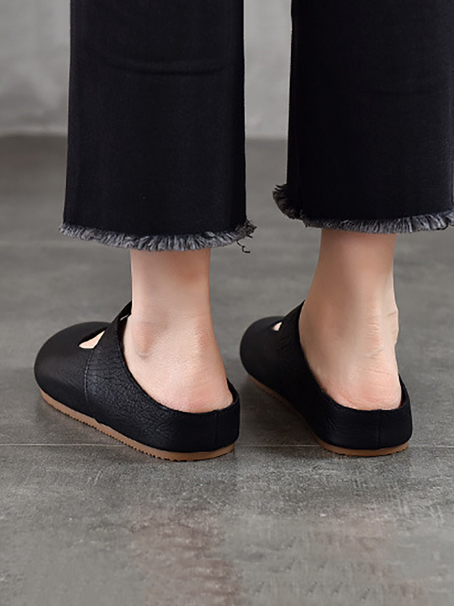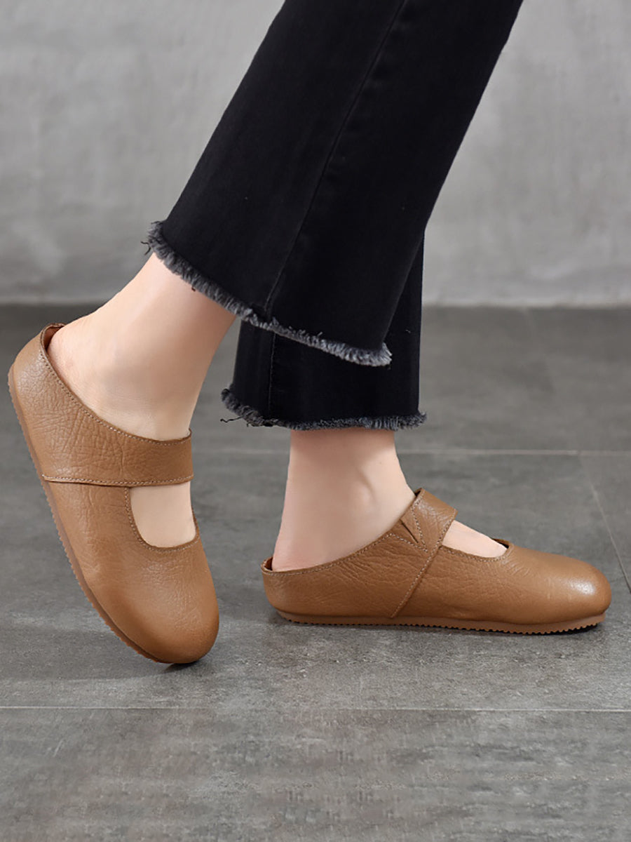 Pantuflas planas de piel auténtica para mujer, ideales para el verano.