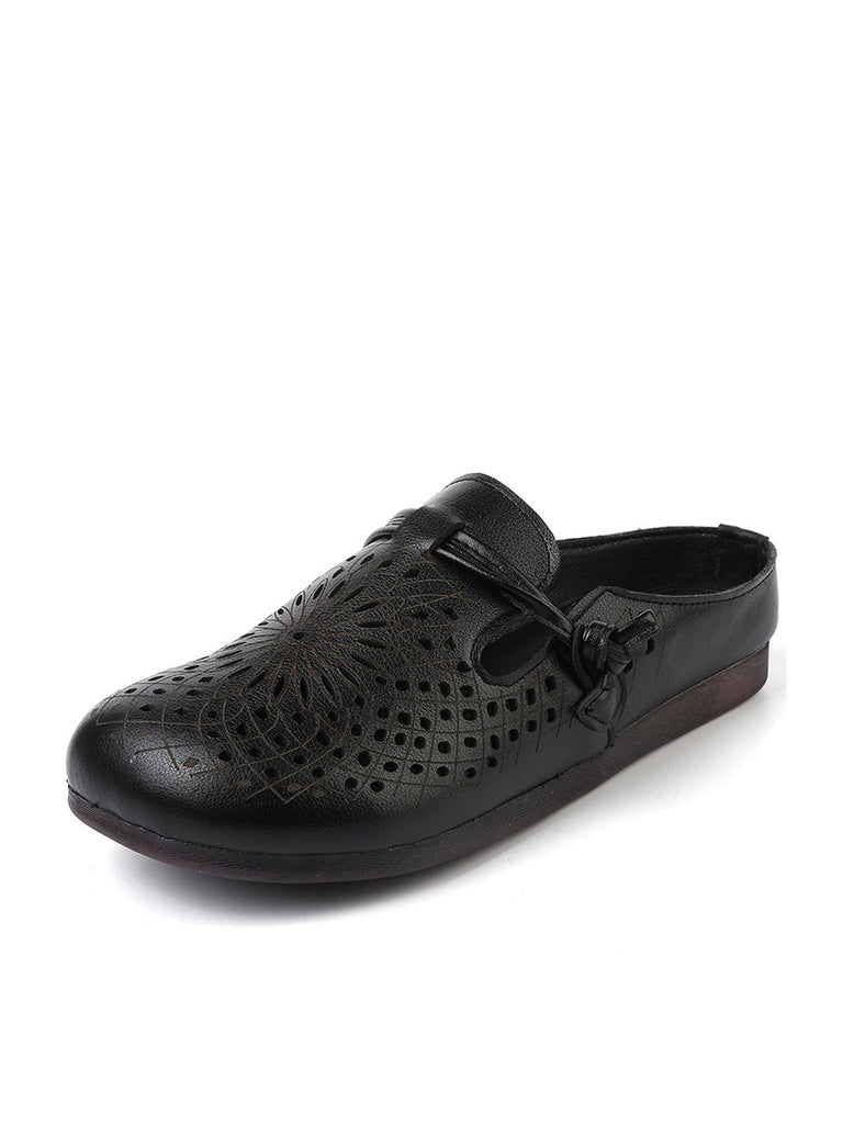 Zapatos de verano de piel auténtica con agujeros para mujer