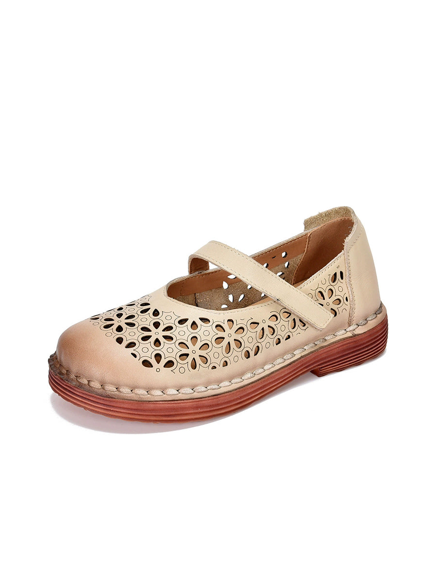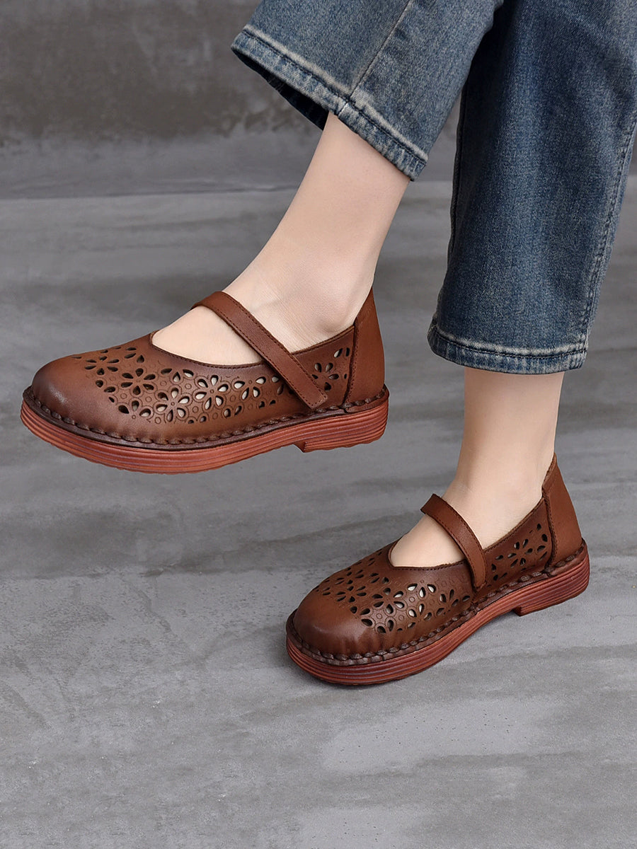Zapatos de verano de piel auténtica con agujeros para mujer