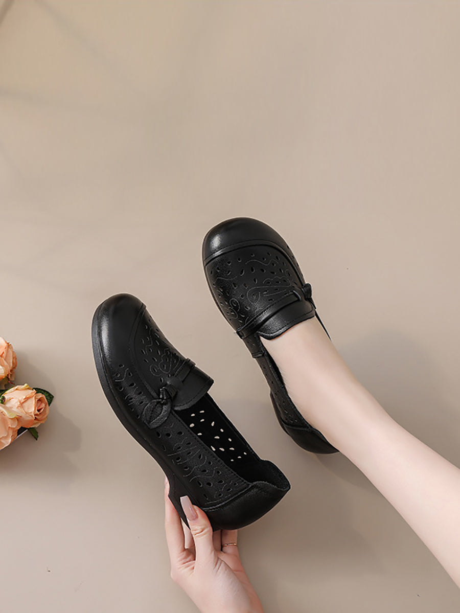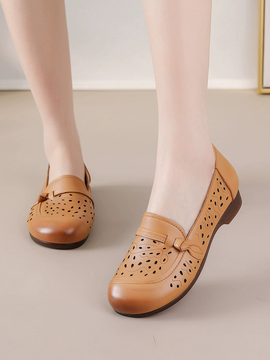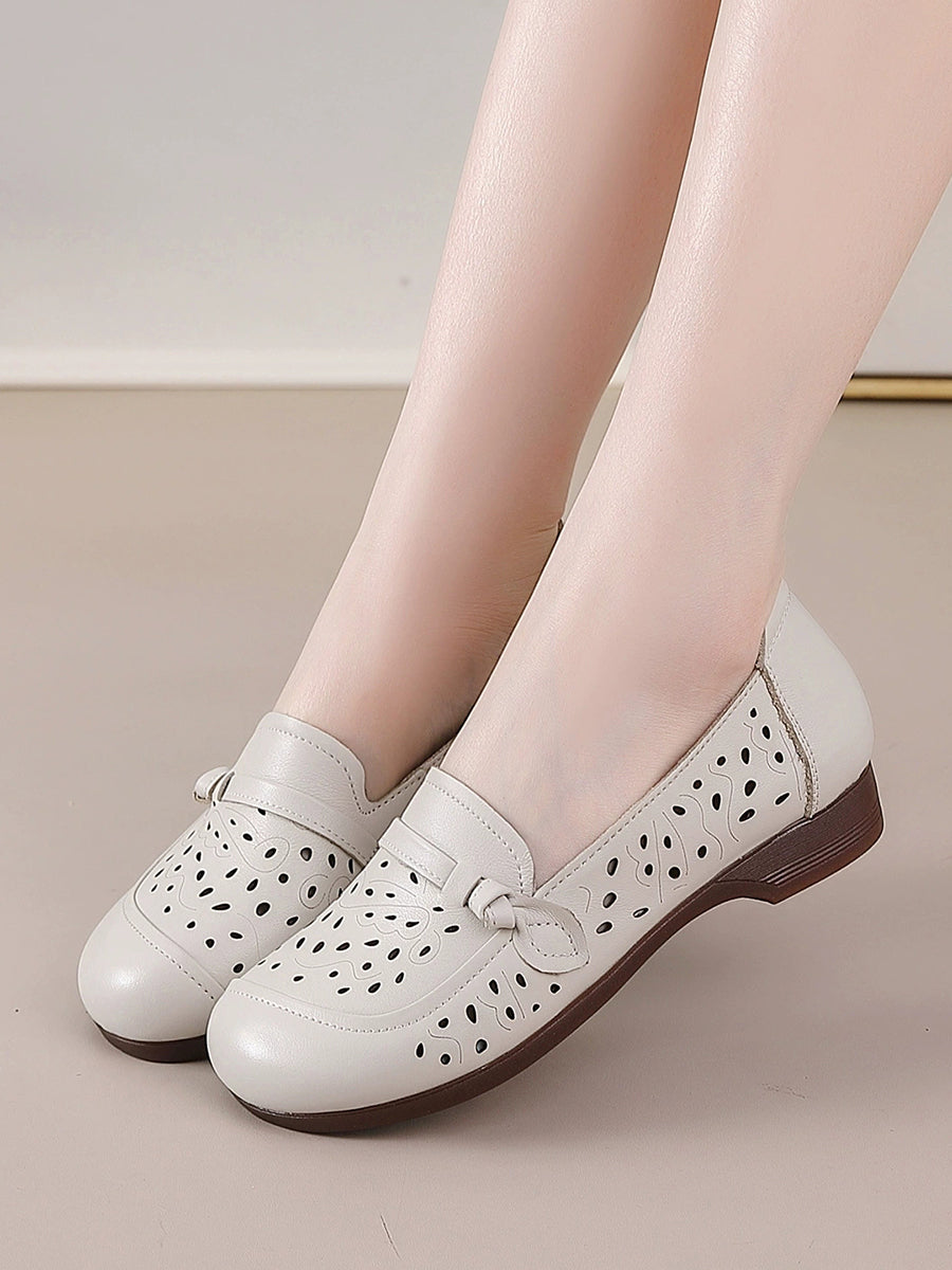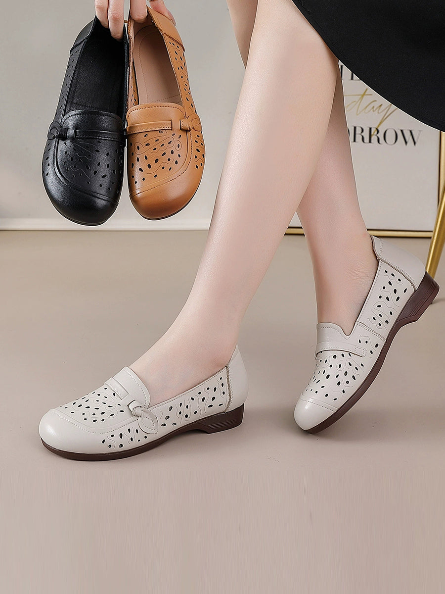 Zapatos de tacón bajo de piel auténtica de verano para mujer