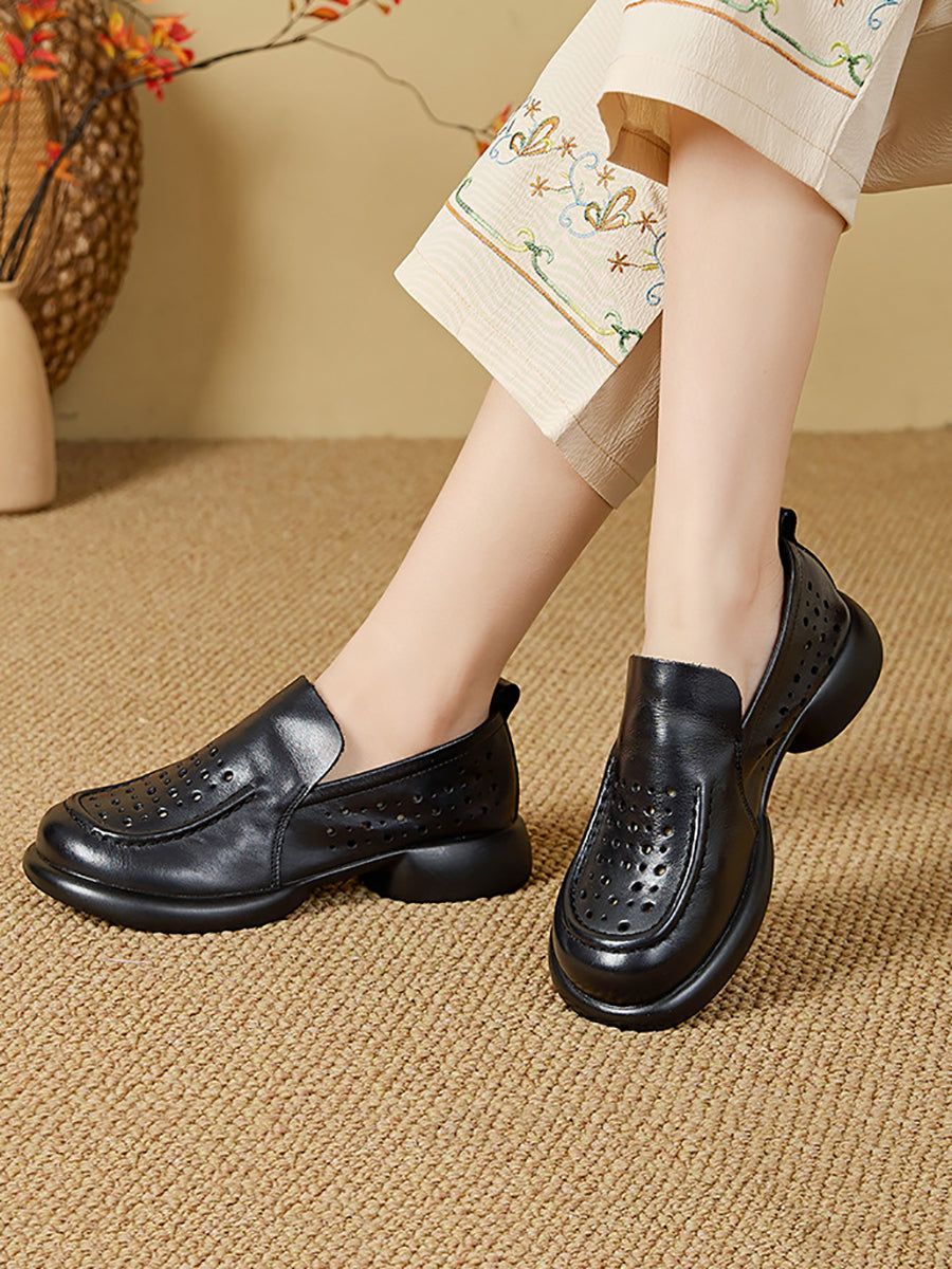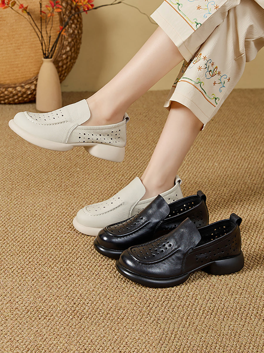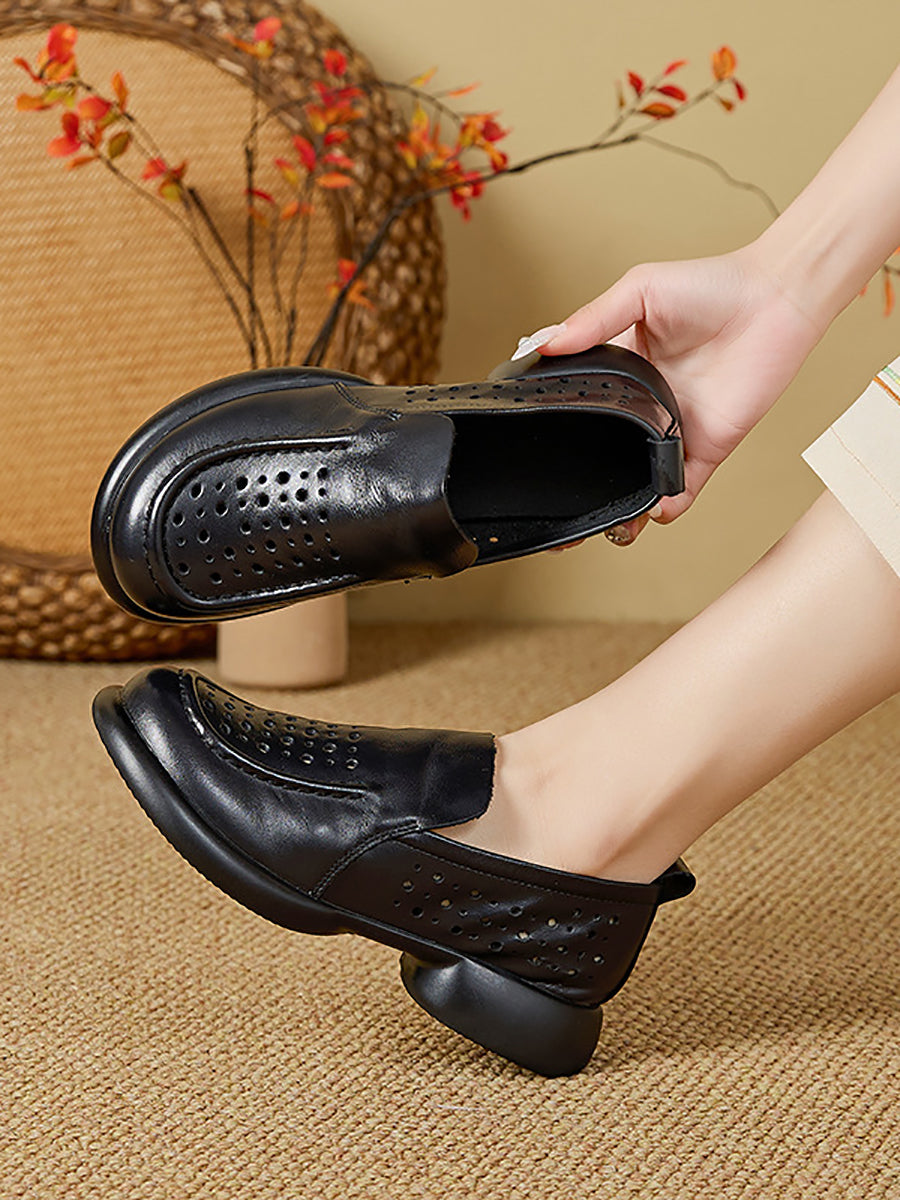 Zapatos de verano de piel auténtica para mujer con tacón bajo.