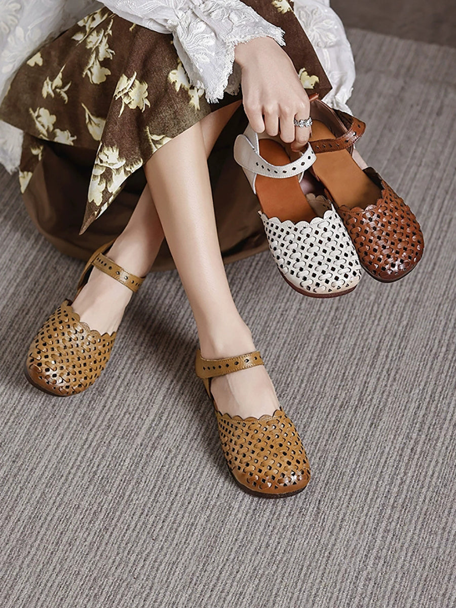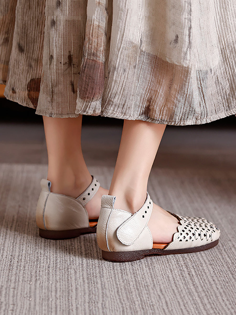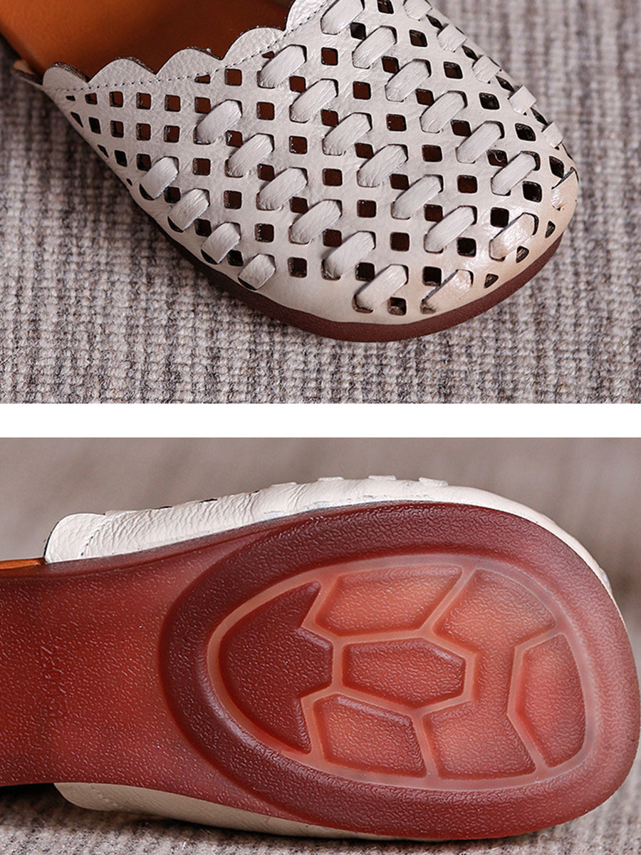 Sandalias de verano para mujer de piel auténtica tejida