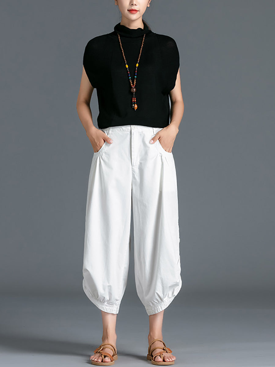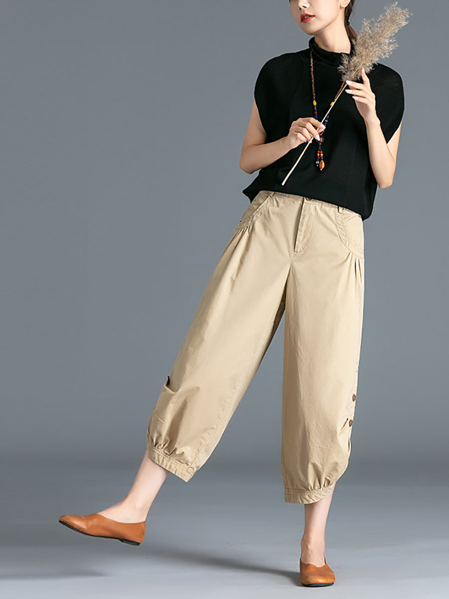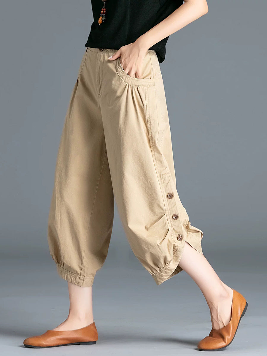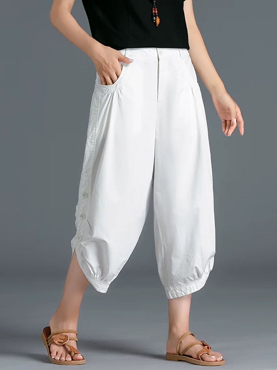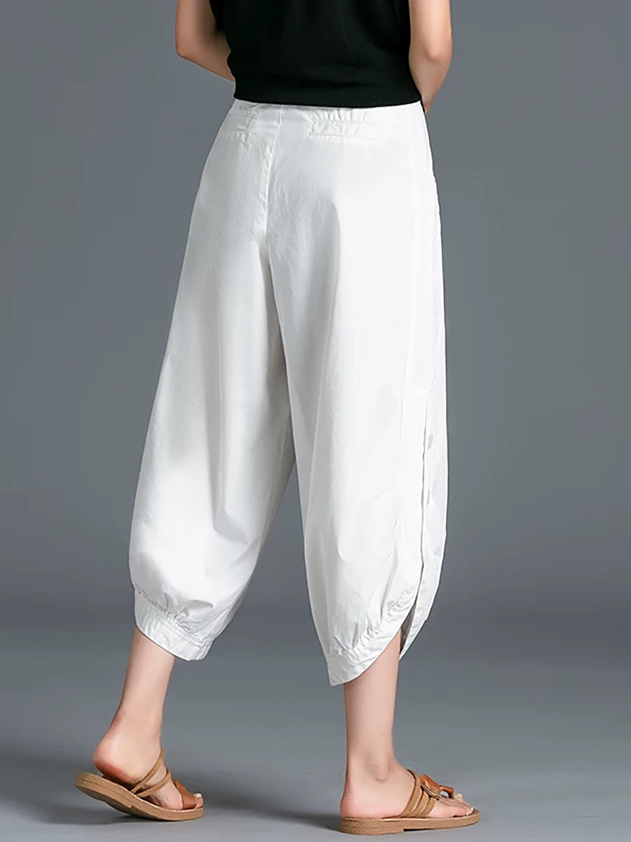 Pantalones capri de verano para mujer, 100 % algodón, color puro