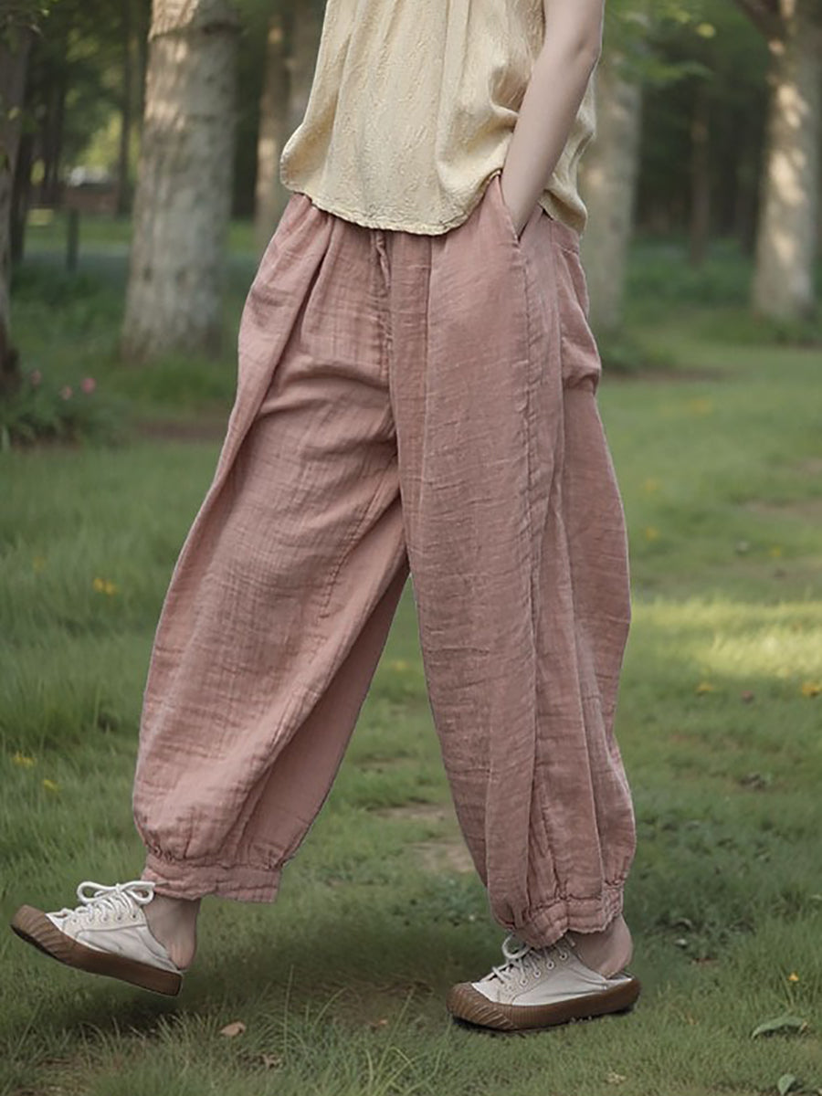 Pantalones harén de verano para mujer, 100 % algodón, color puro