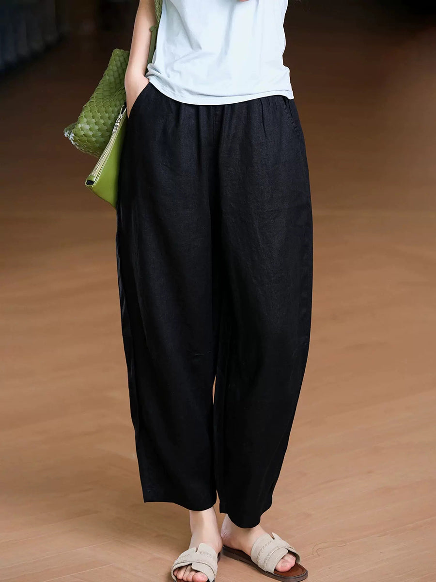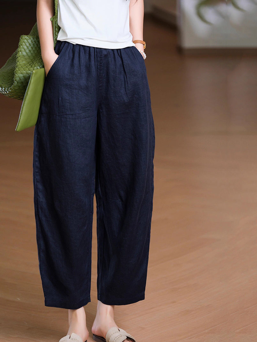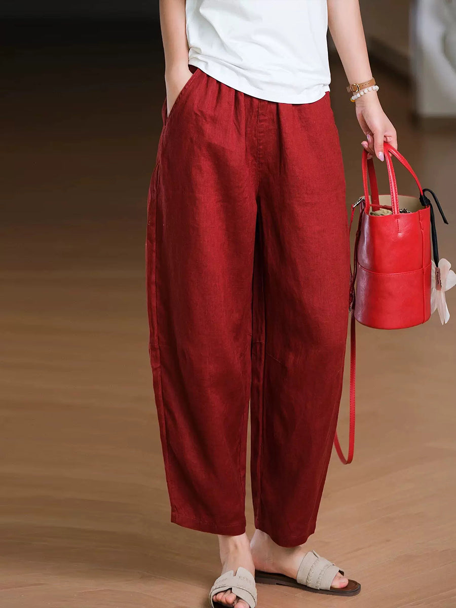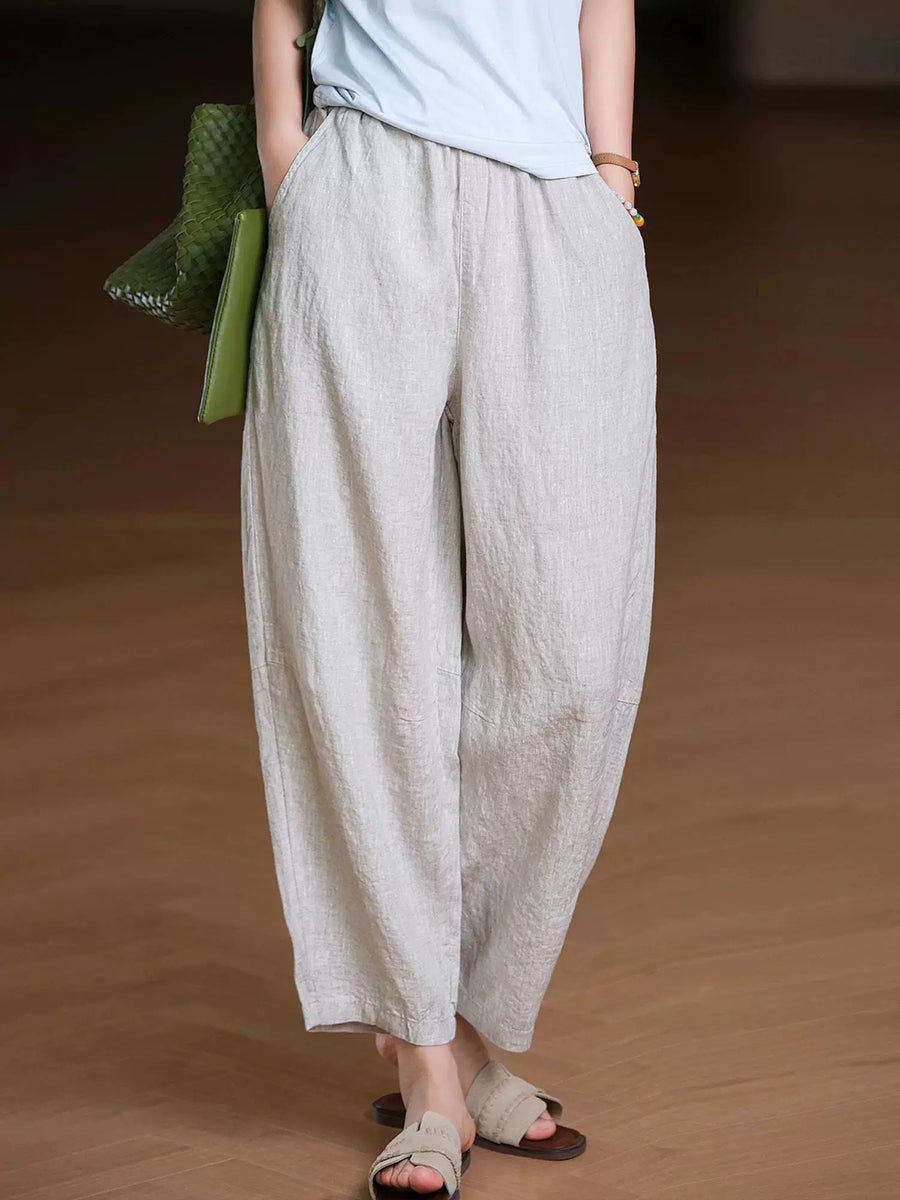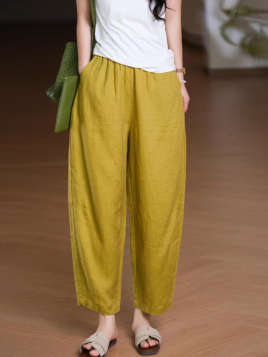 Pantalones harem de lino 100% color liso para mujer, ideales para el verano.