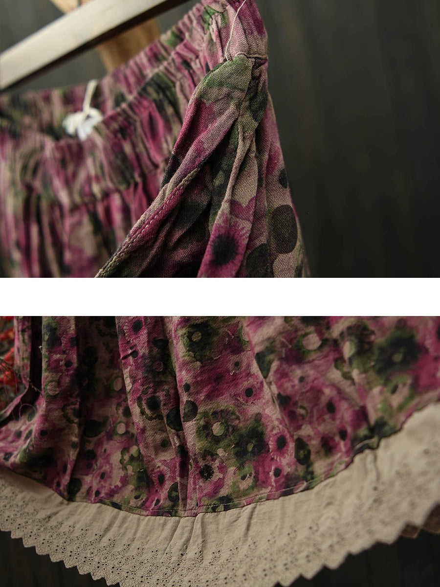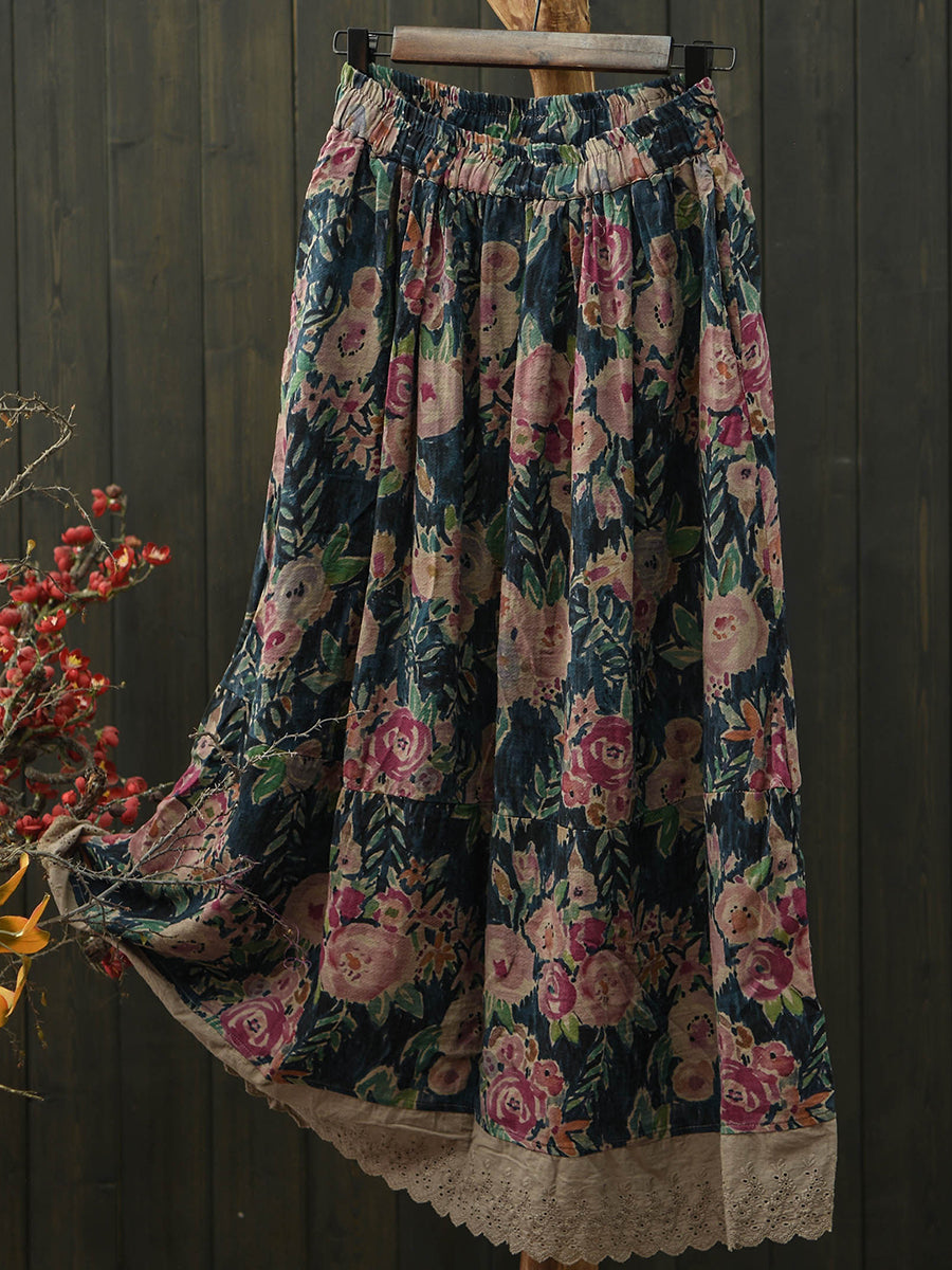 Falda de algodón retro con estampado floral para mujer, ideal para el verano.