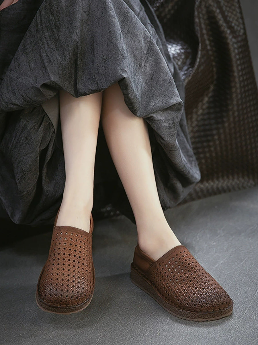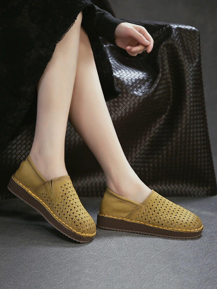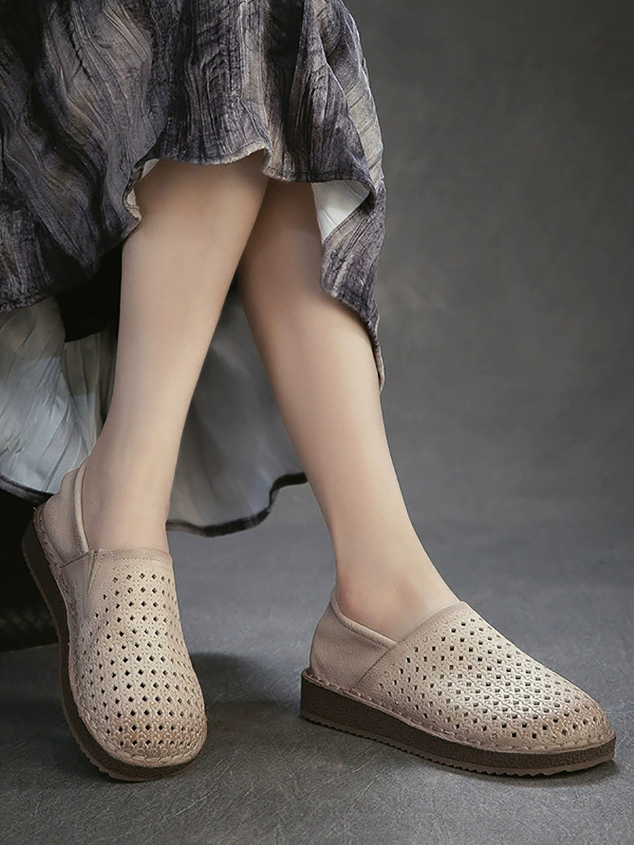 Zapatos planos calados de cuero suave de verano para mujer